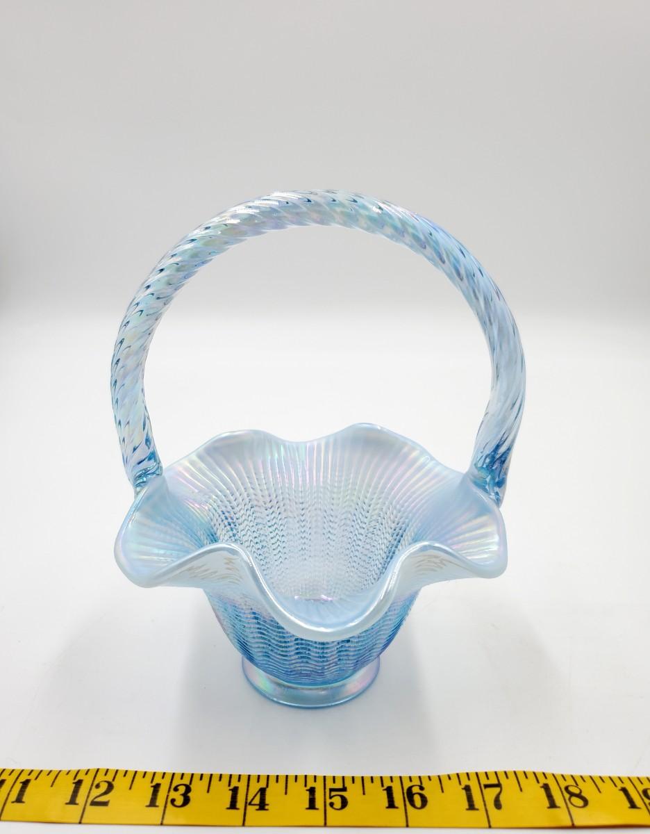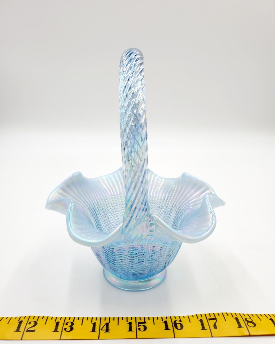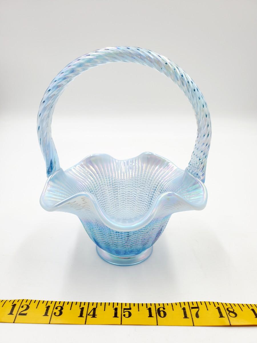 FENTON BLUE IRIDESCENT BEADED HERRINGBONE BASKET