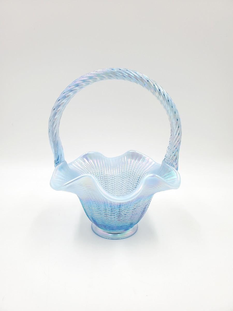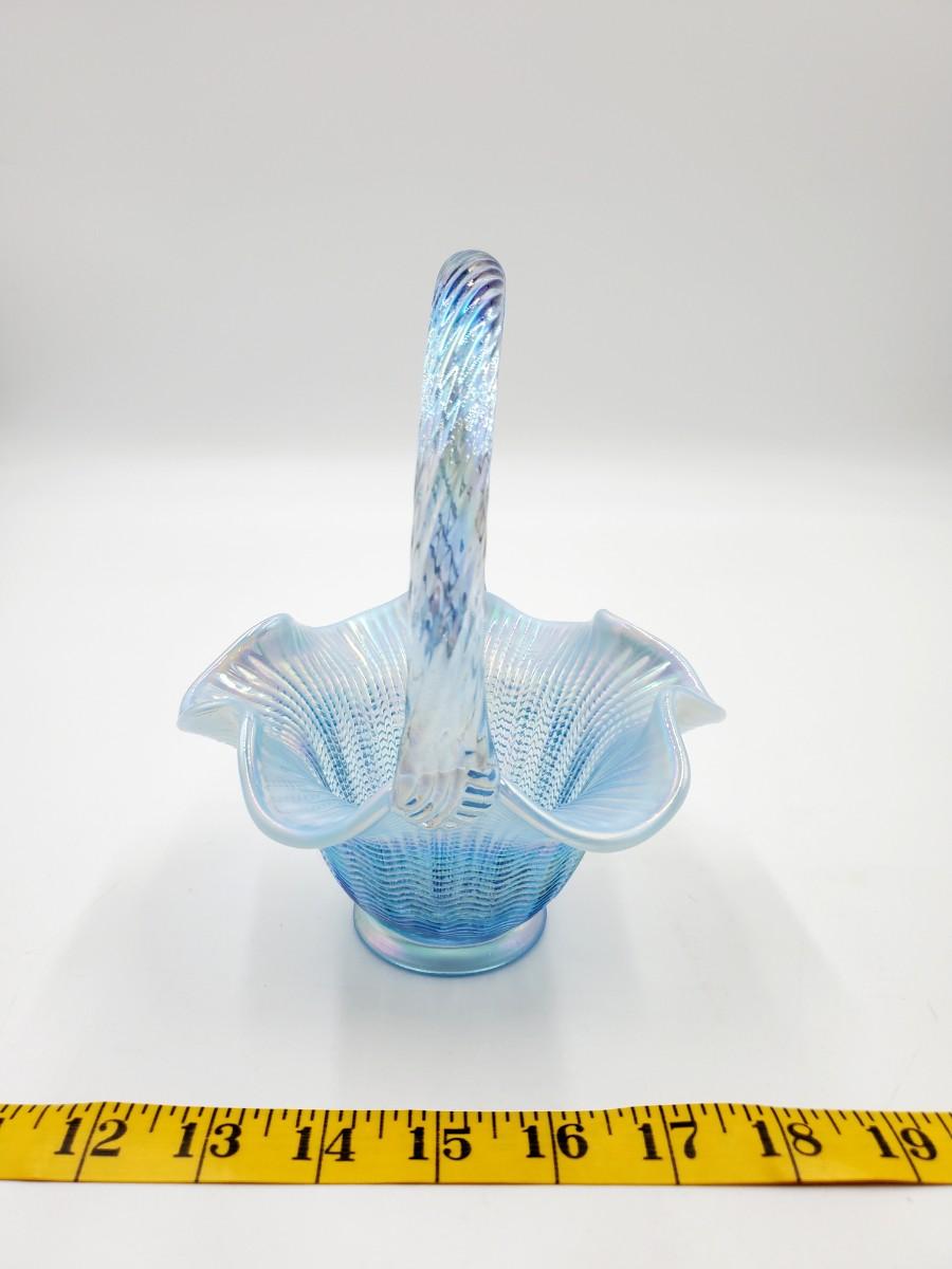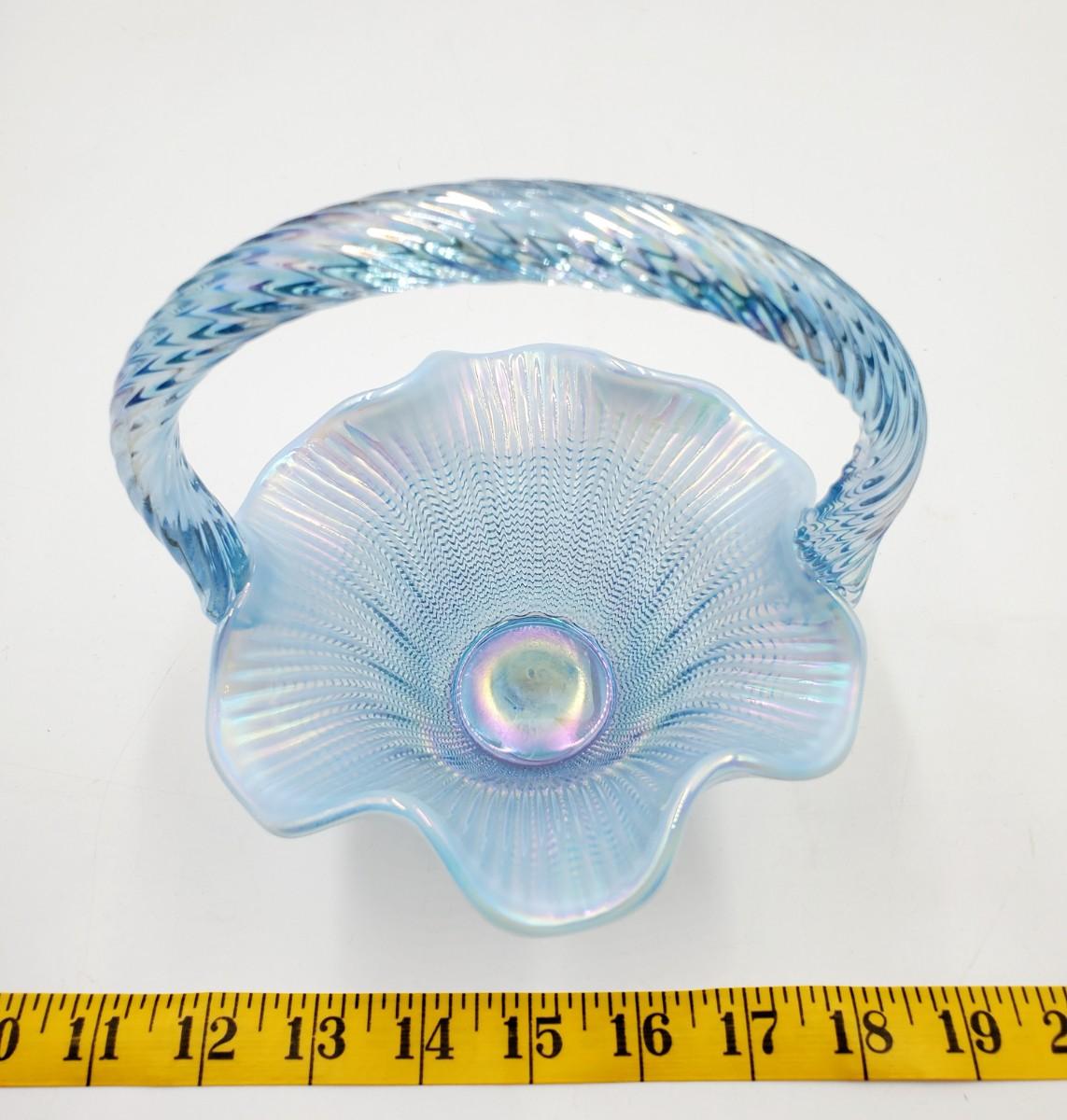 FENTON BLUE IRIDESCENT BEADED HERRINGBONE BASKET