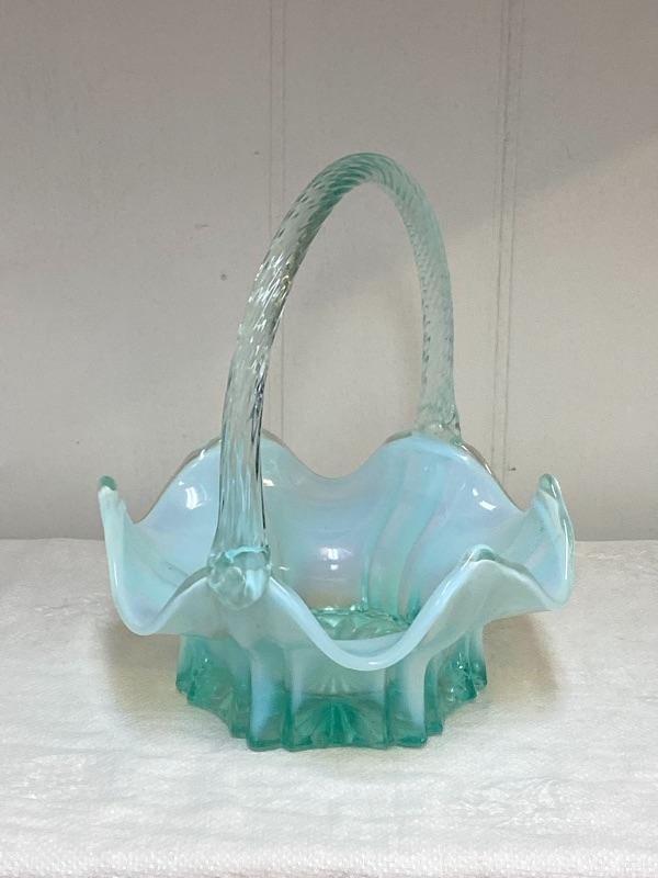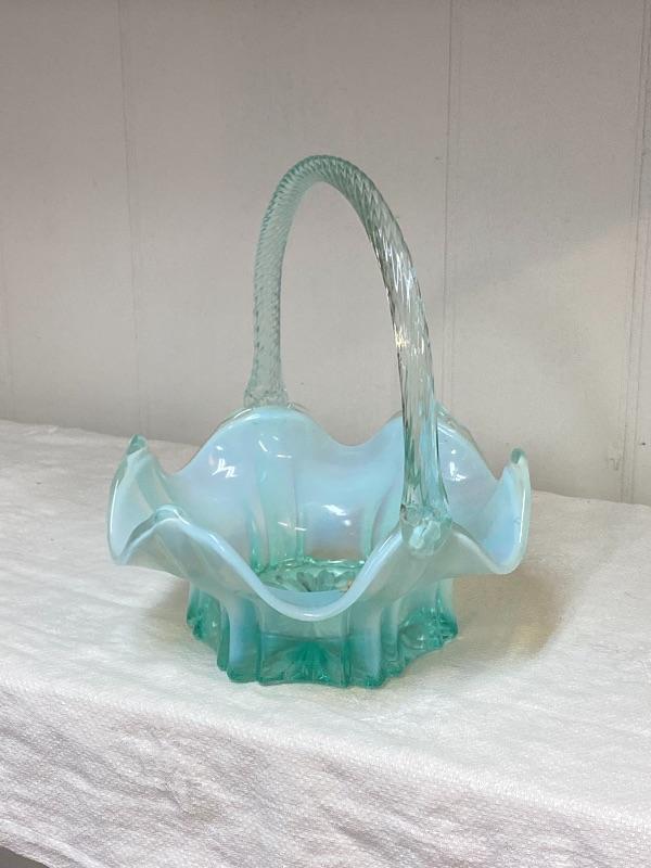 Fenton Blue Opalescent Basket