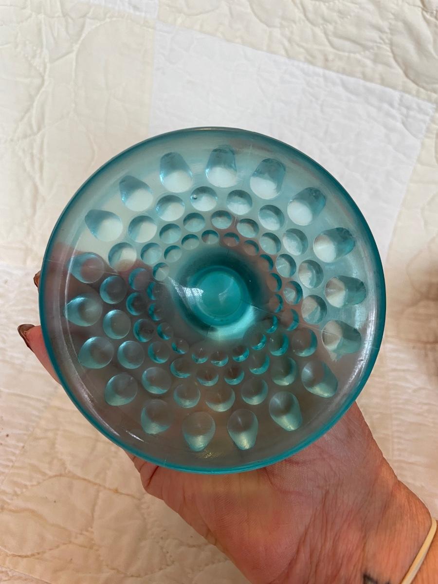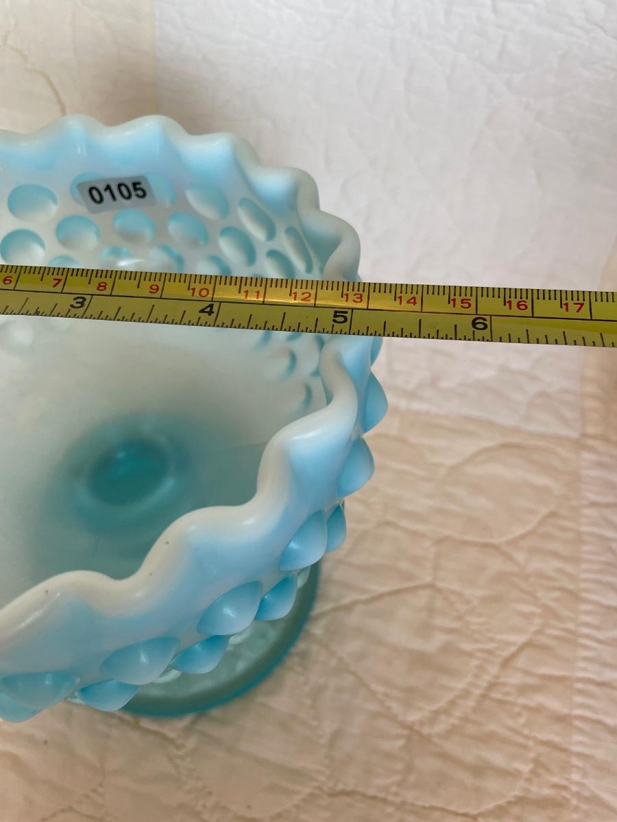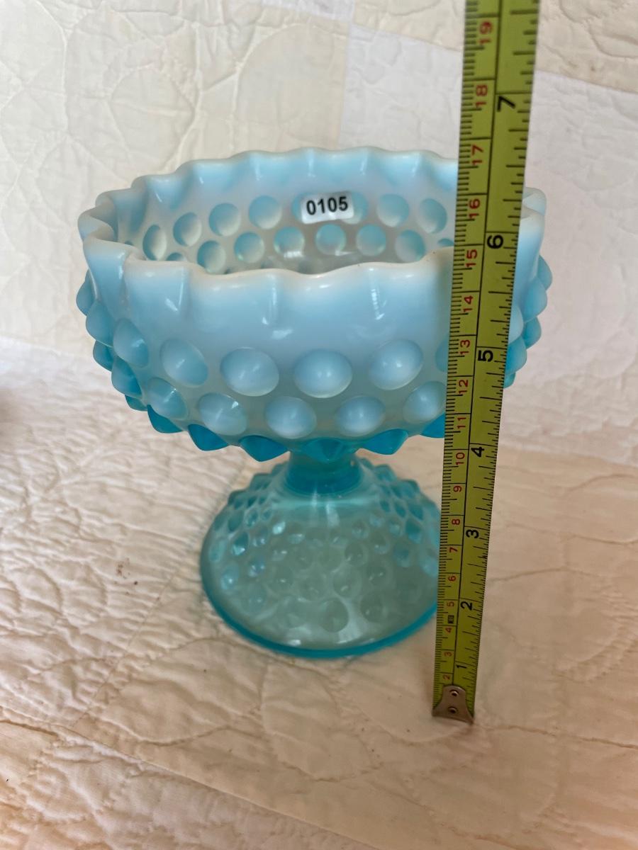 Fenton blue opalescent compote pedestal dish