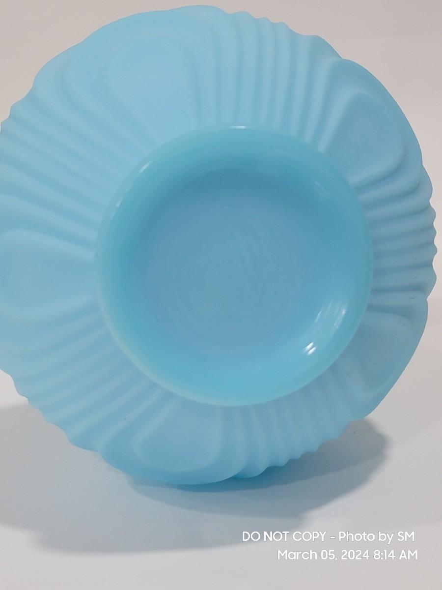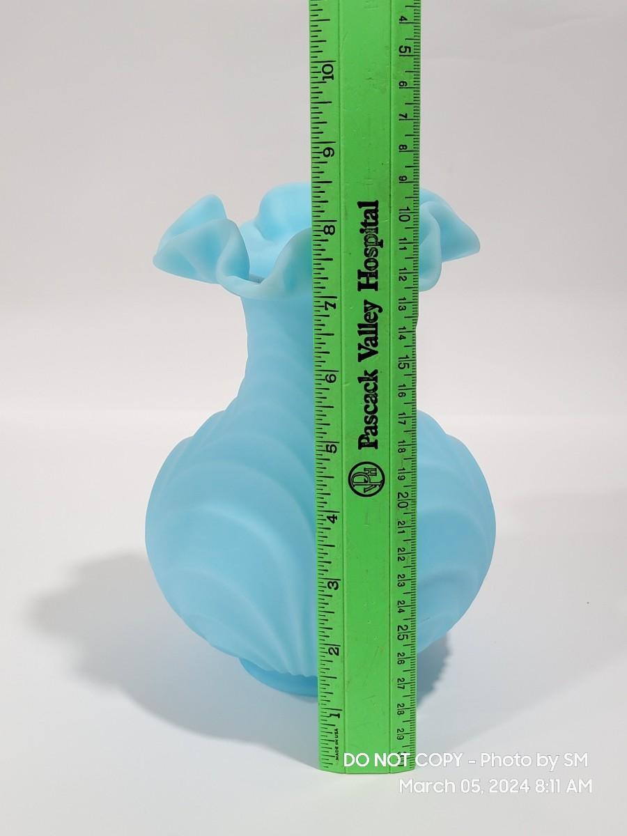 This fantastic piece of Fenton is not an everyday find. It is in almost mint condition, has some yellowing crud on top - will need a cleaning. It was covered in decades of dust and look at her now. Has a fantastic Mid Century / Retro vibe.