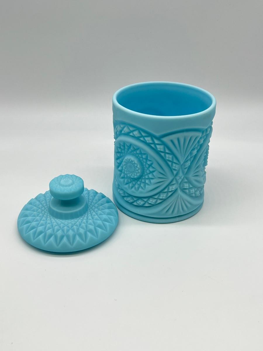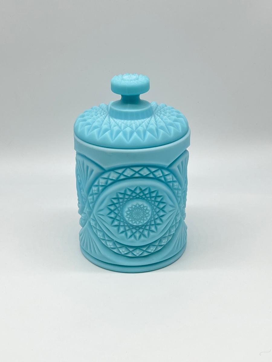 IMPERIAL GLASS ~ Blue Satin Lidded Biscuit Jar