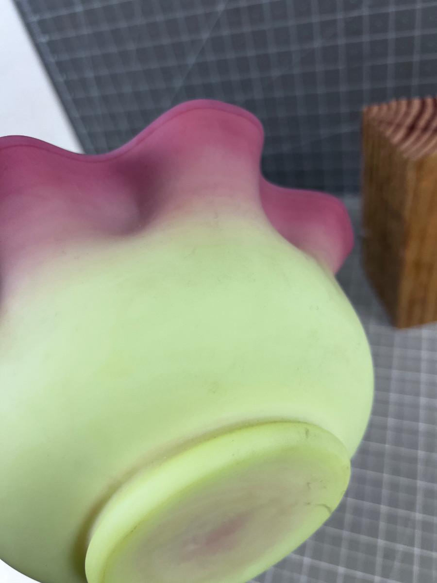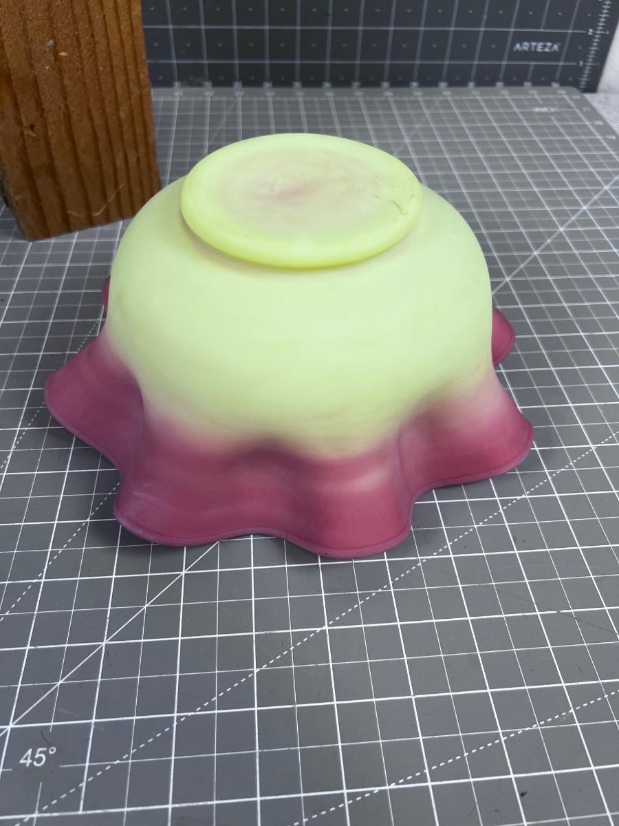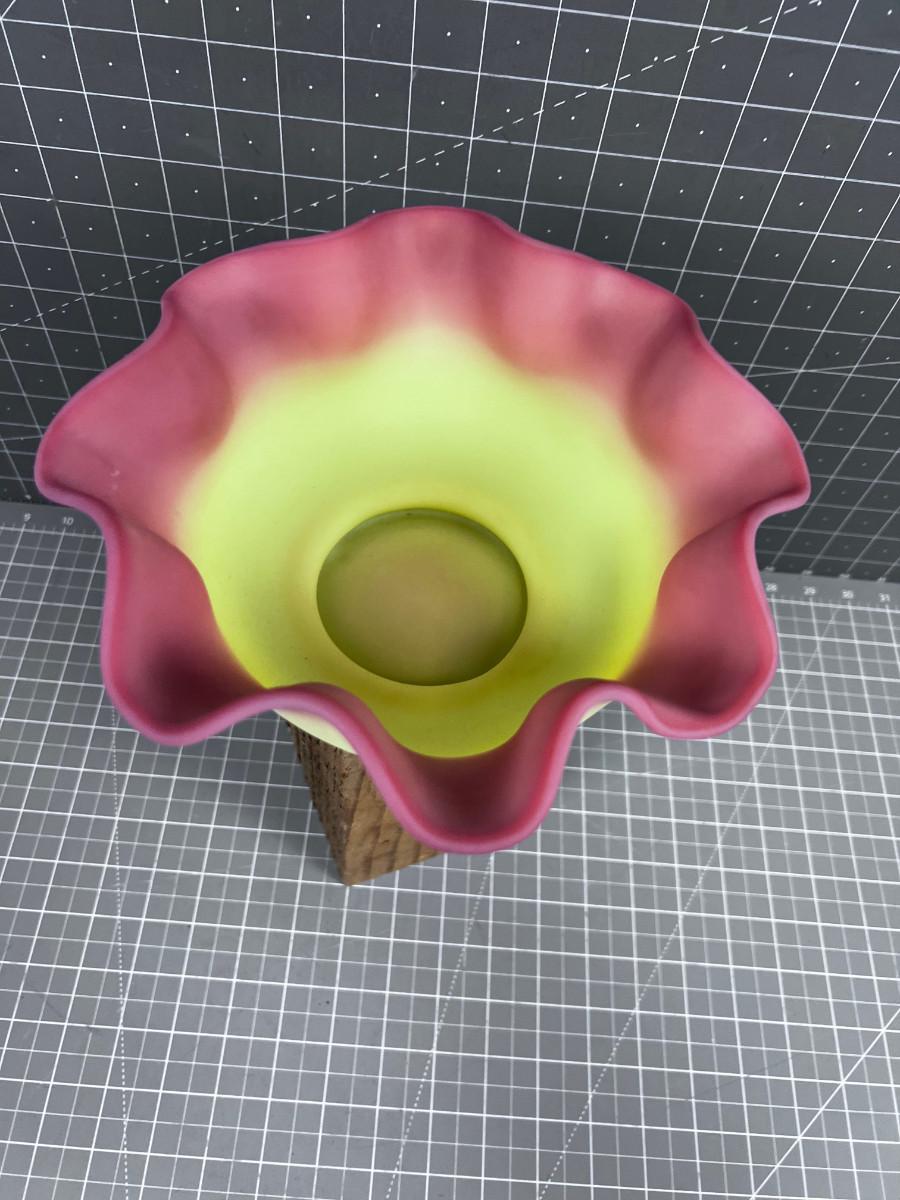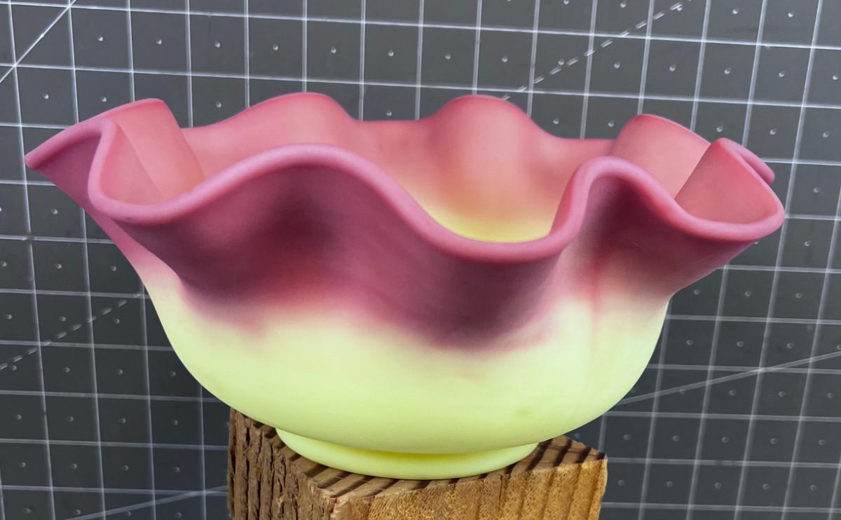 FENTON Burmese Peach Glow Satin Ruffled Edge Bowl