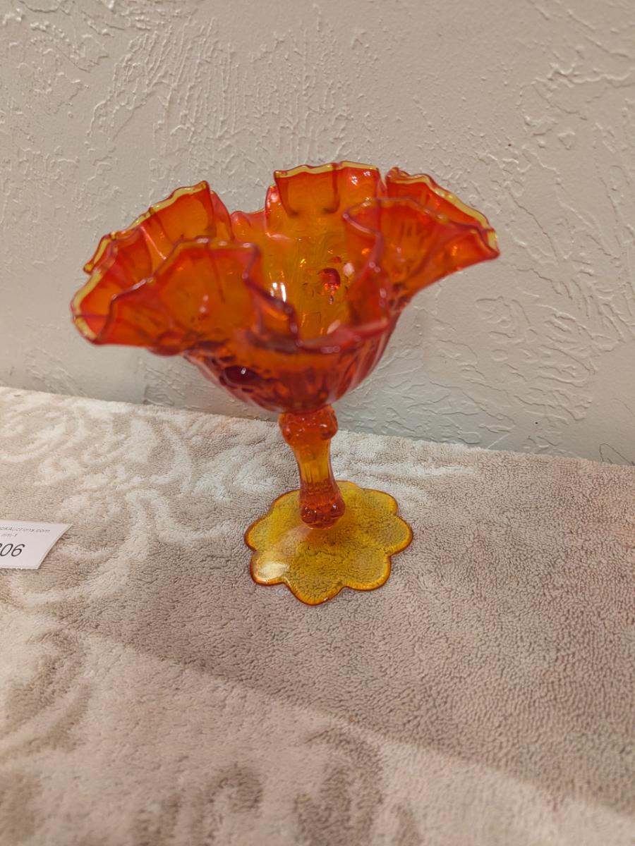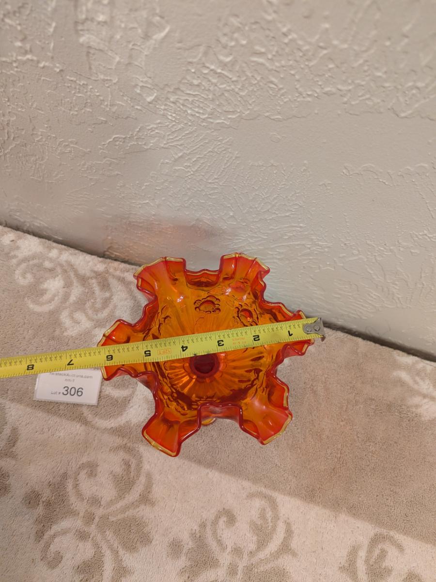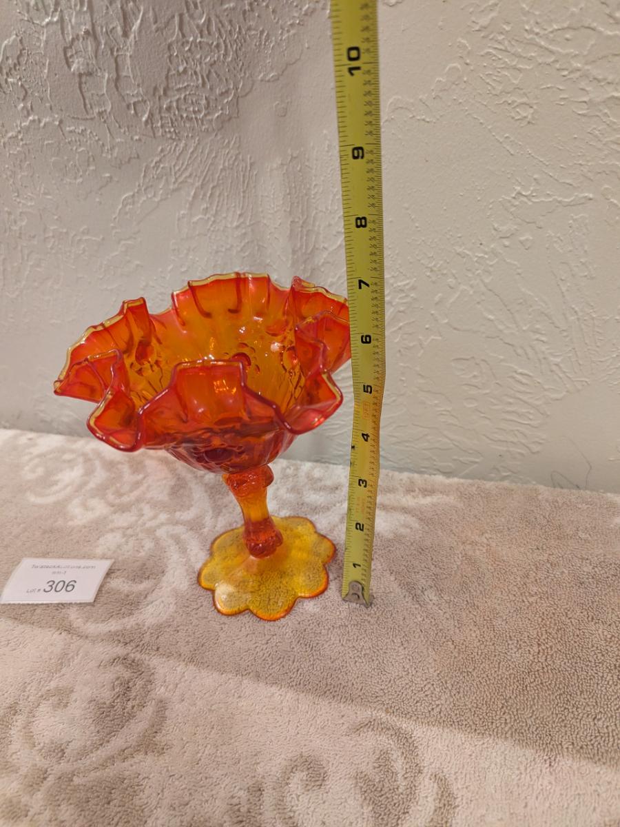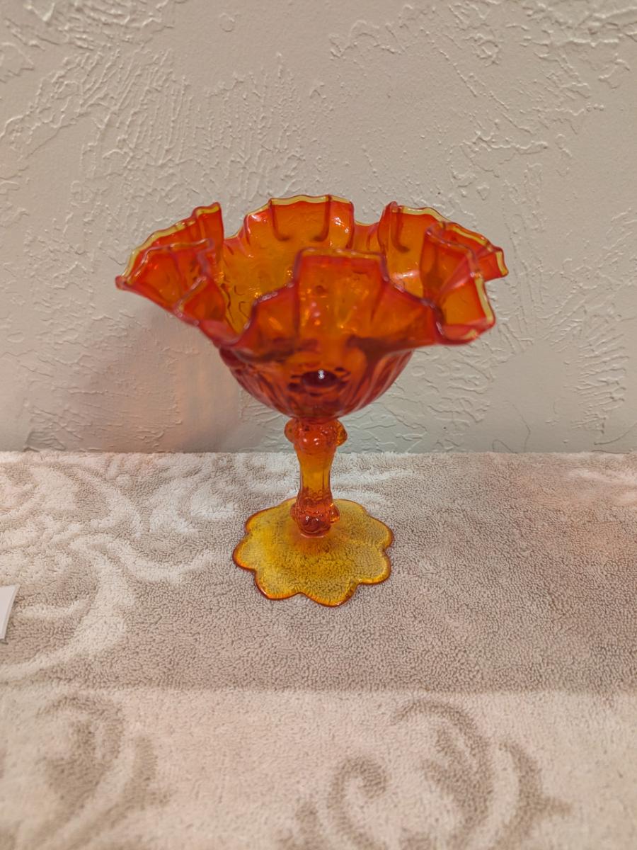Fenton Cabbage Rose style amberina glass ruffled compote candy dish. (did not check with UV light)