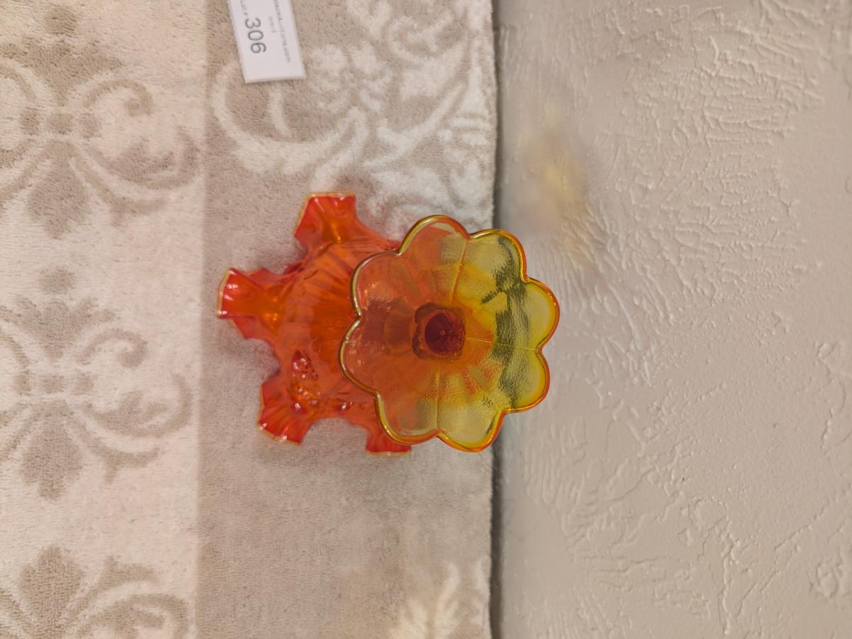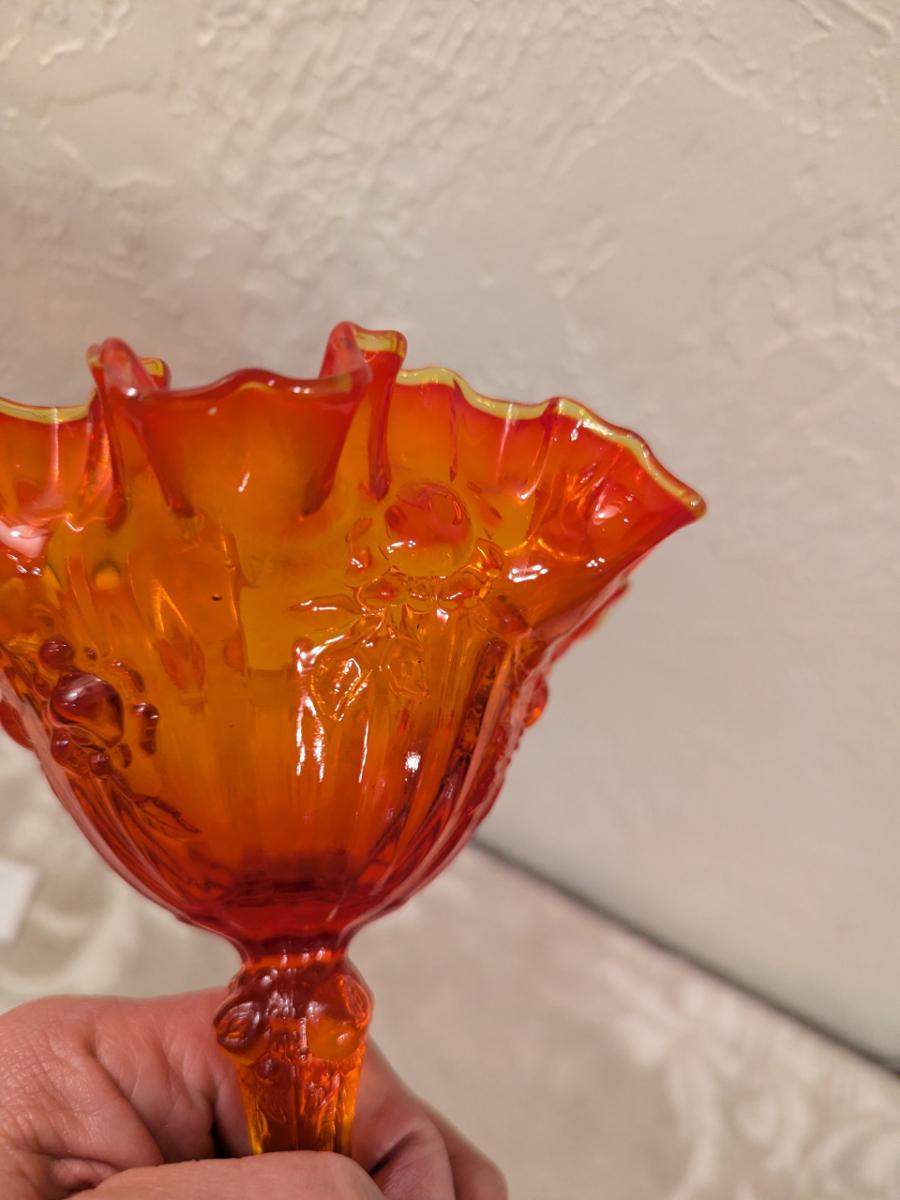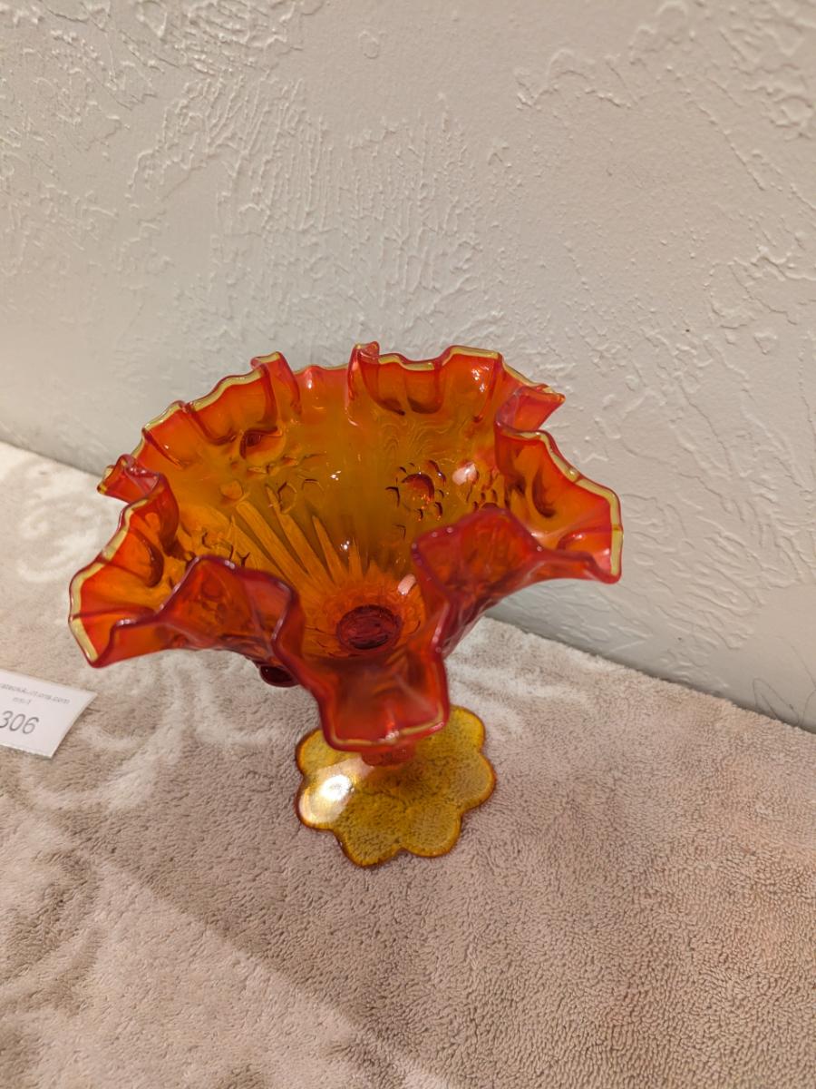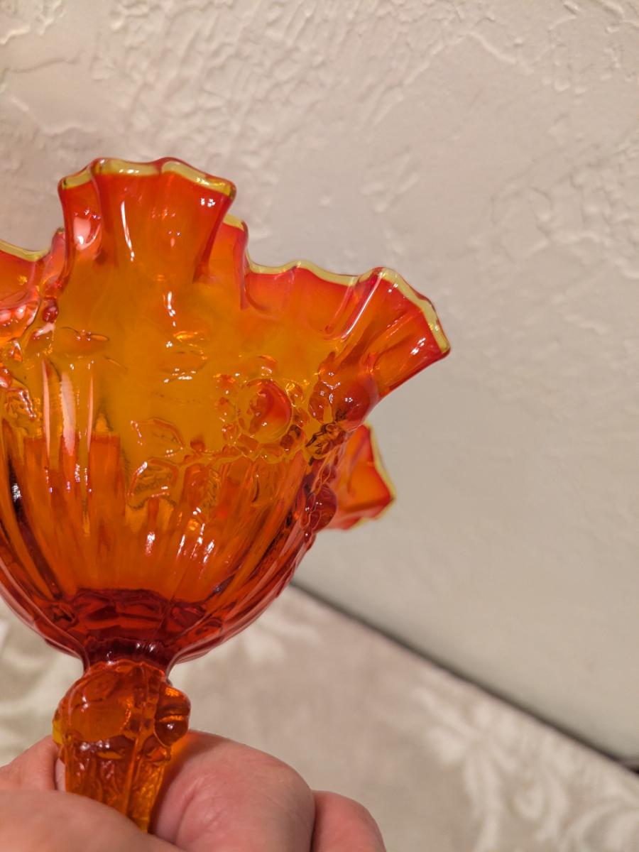 Fenton Cabbage Rose style amberina glass ruffled compote candy dish. (did not check with UV light)