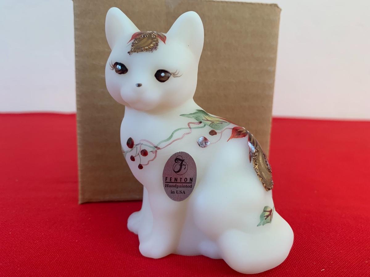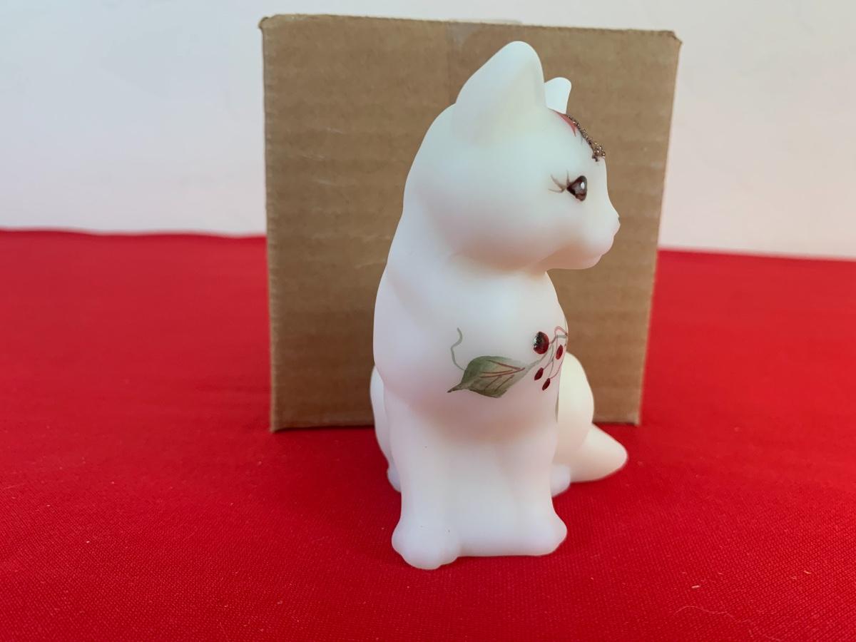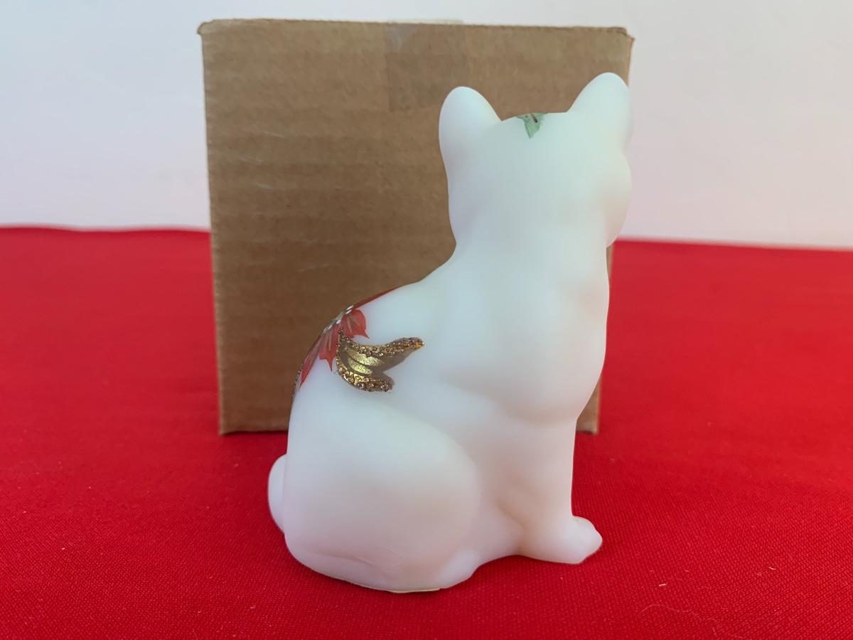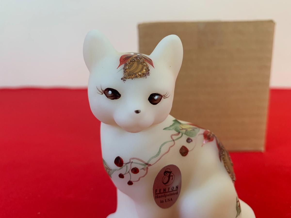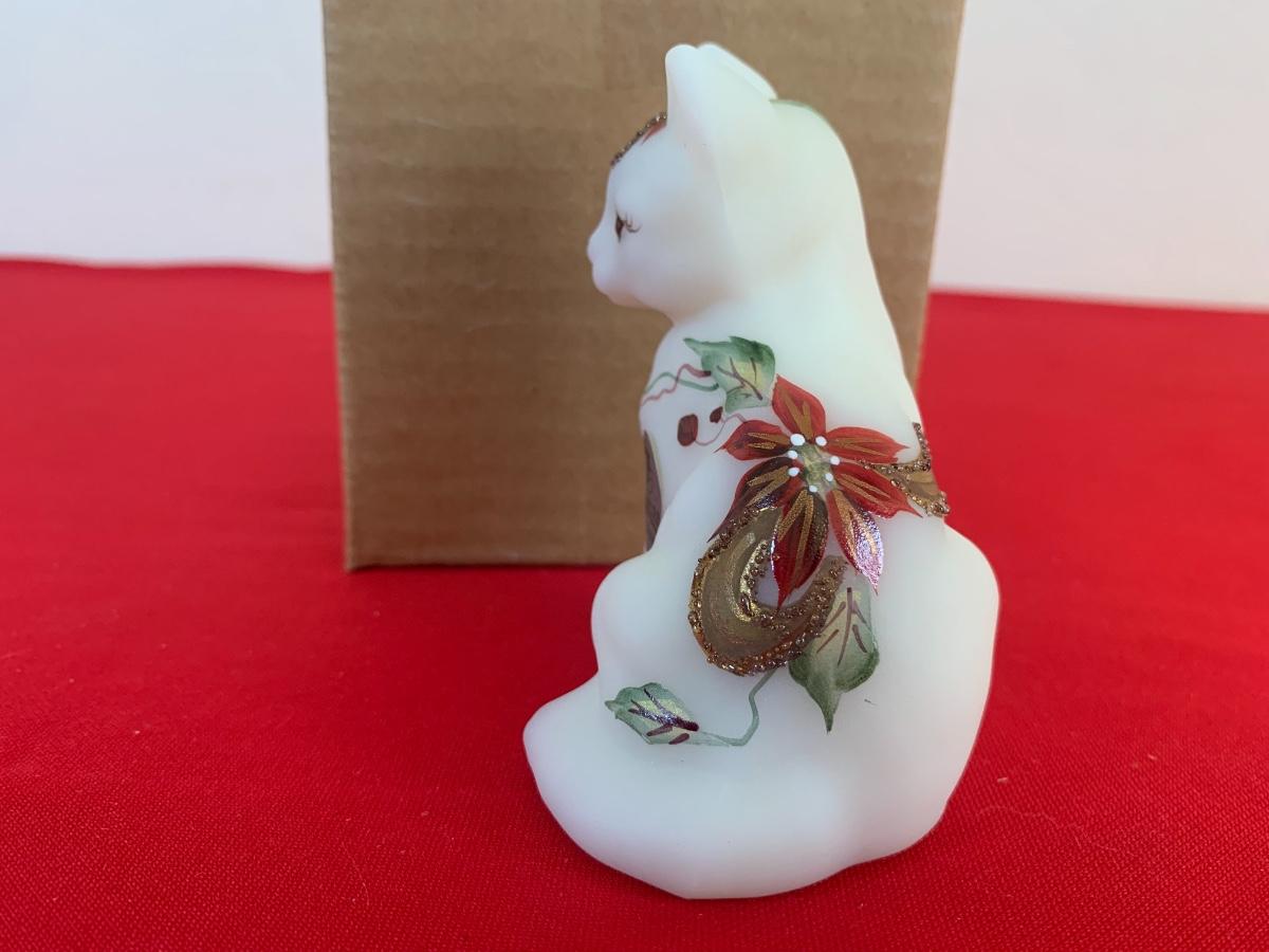 Lot includes a Fenton White Frosted Christmas Cat in very good condition, no issues with paint, has sticker.