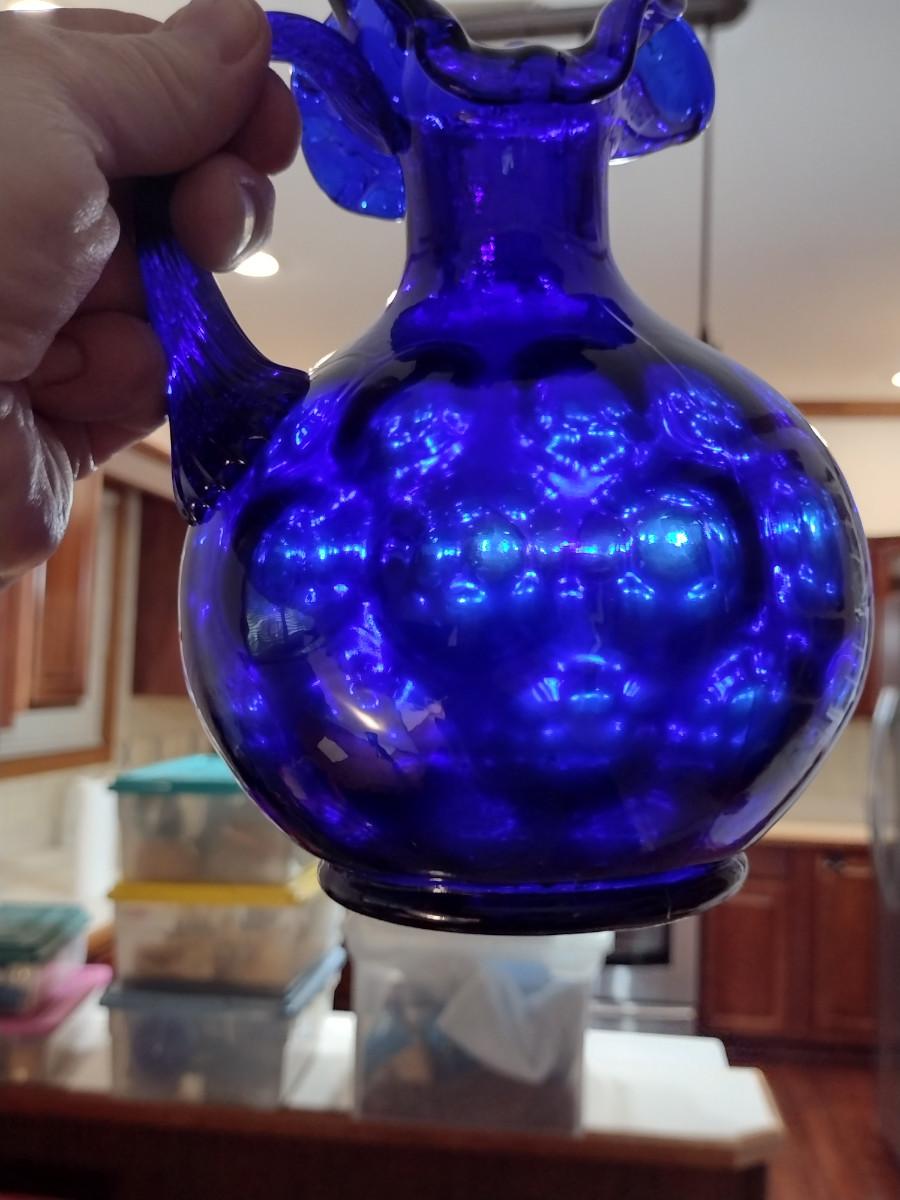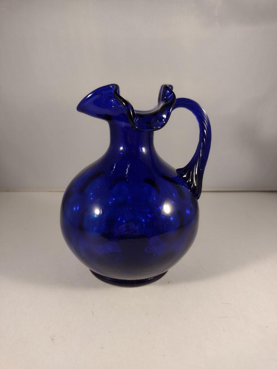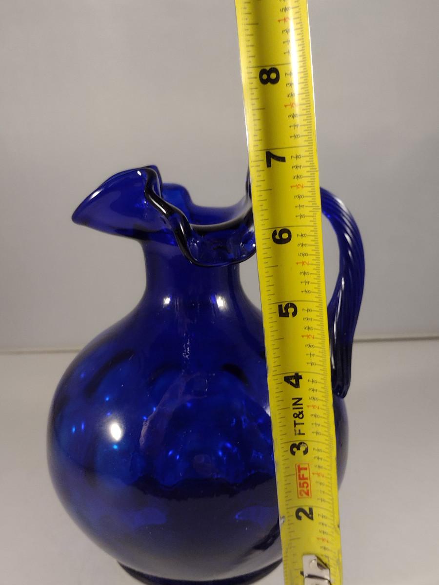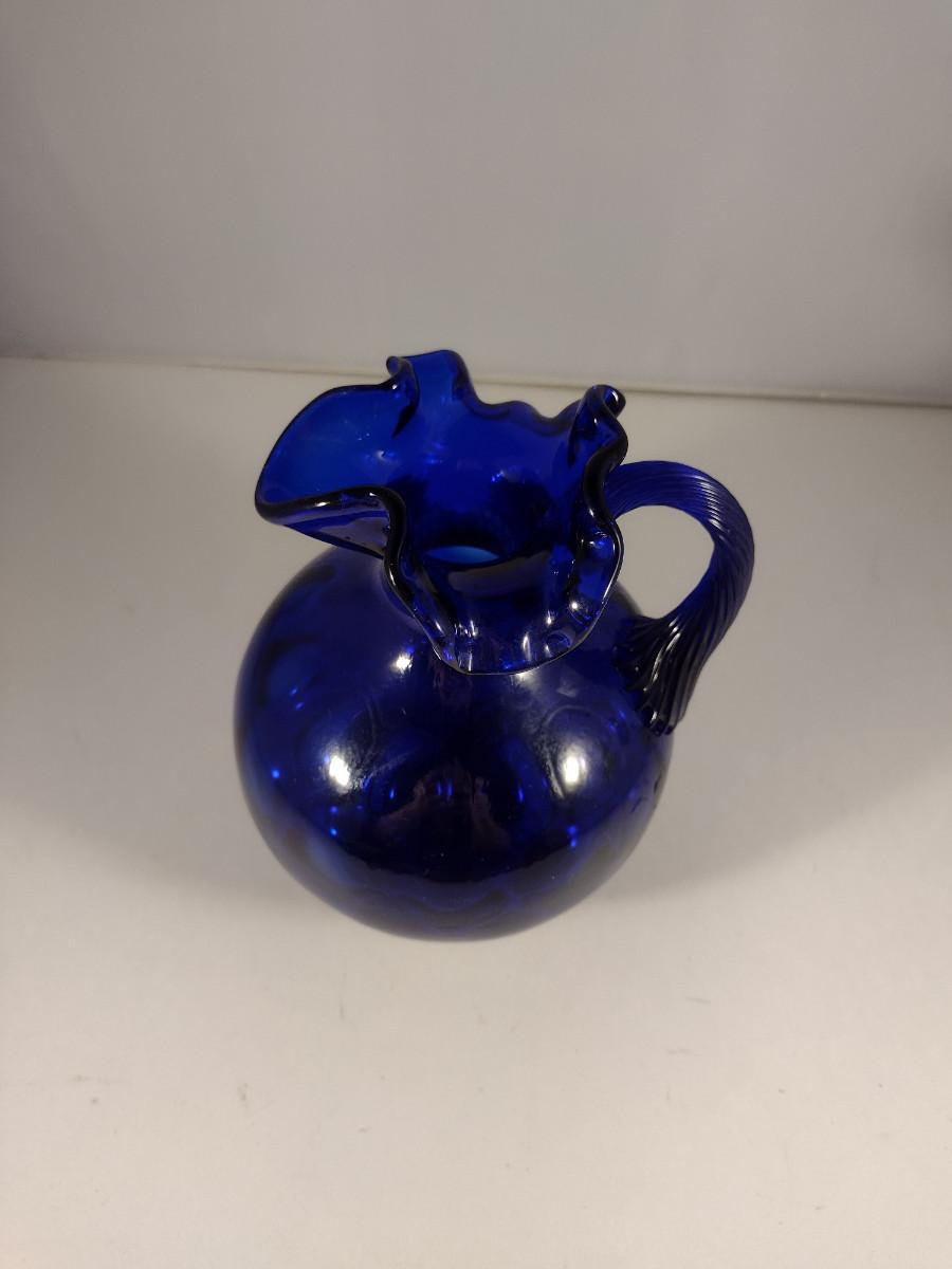 Fenton Cobalt Blue Art Glass Coin Dot Pitcher with Ruffled Top