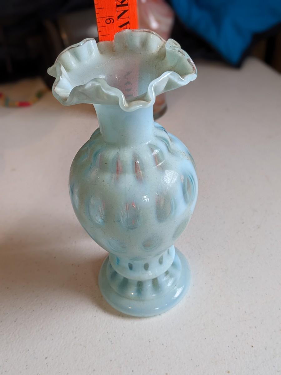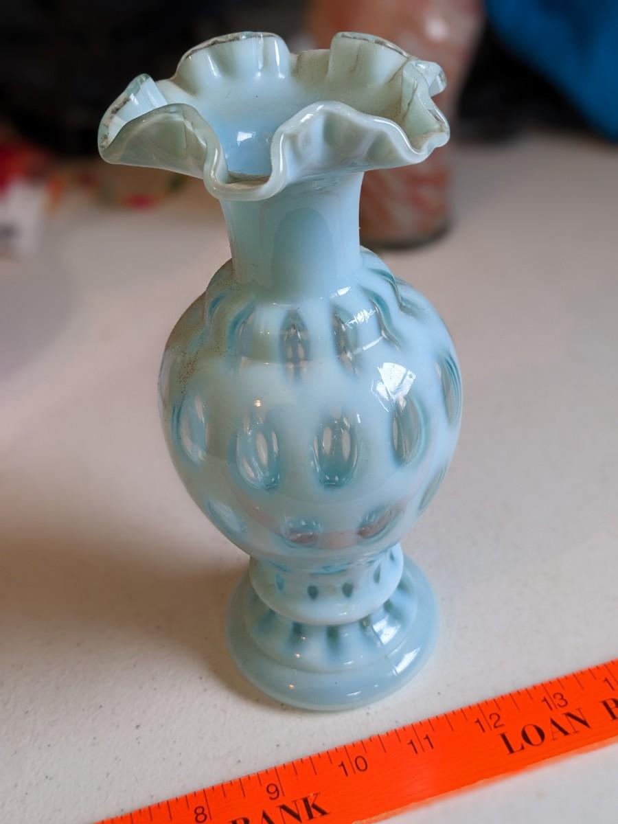 Fenton Coin Dot Blue Opalescent Vase