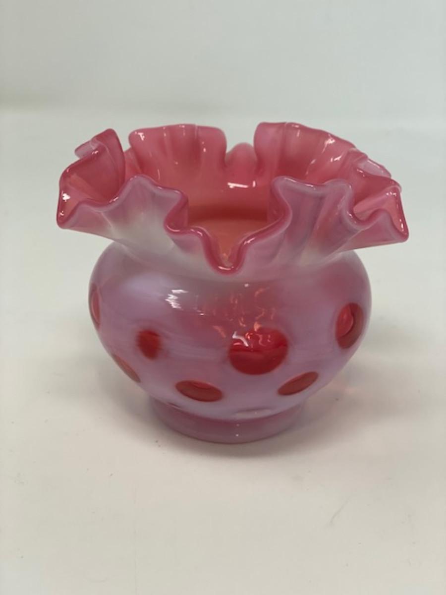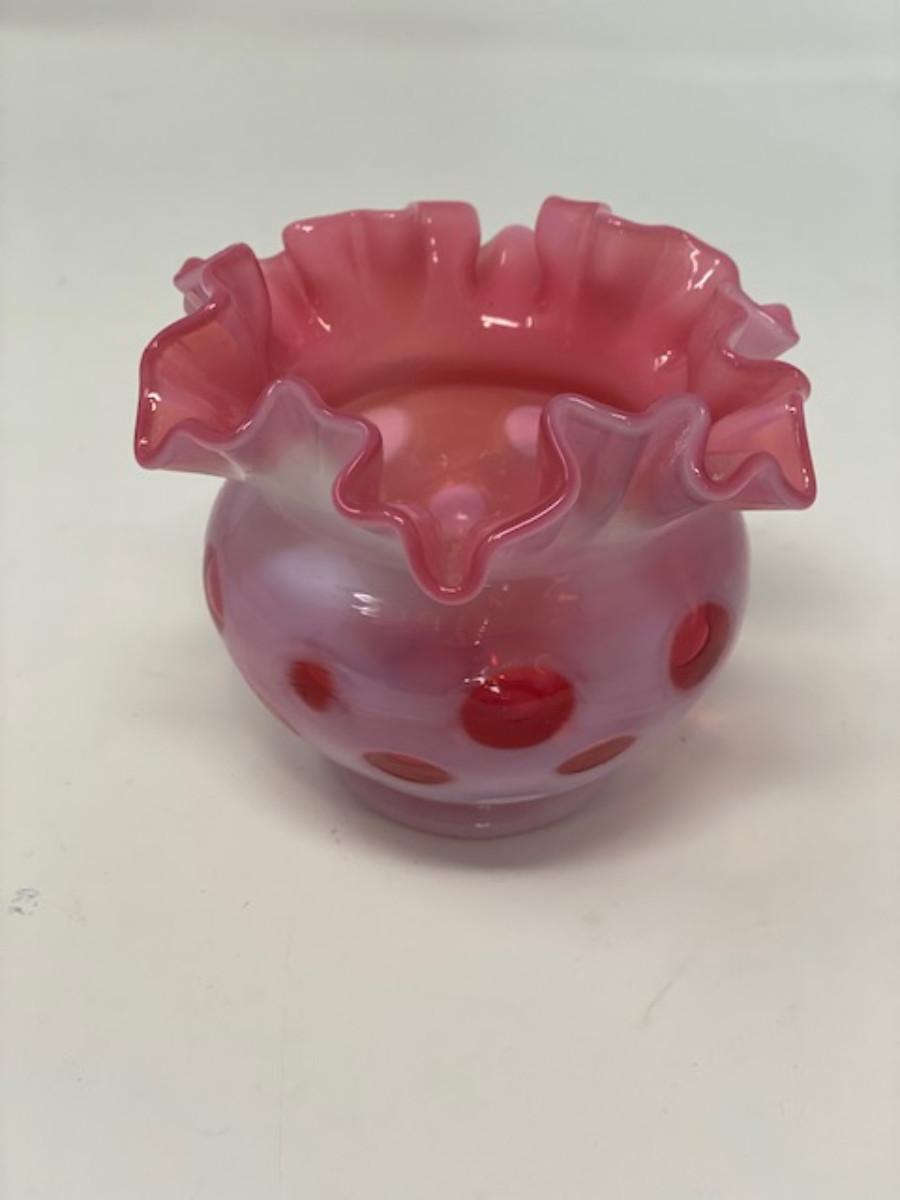 Fenton Coin Dot Cranberry Opalescent Ruffled Vase 3.5"