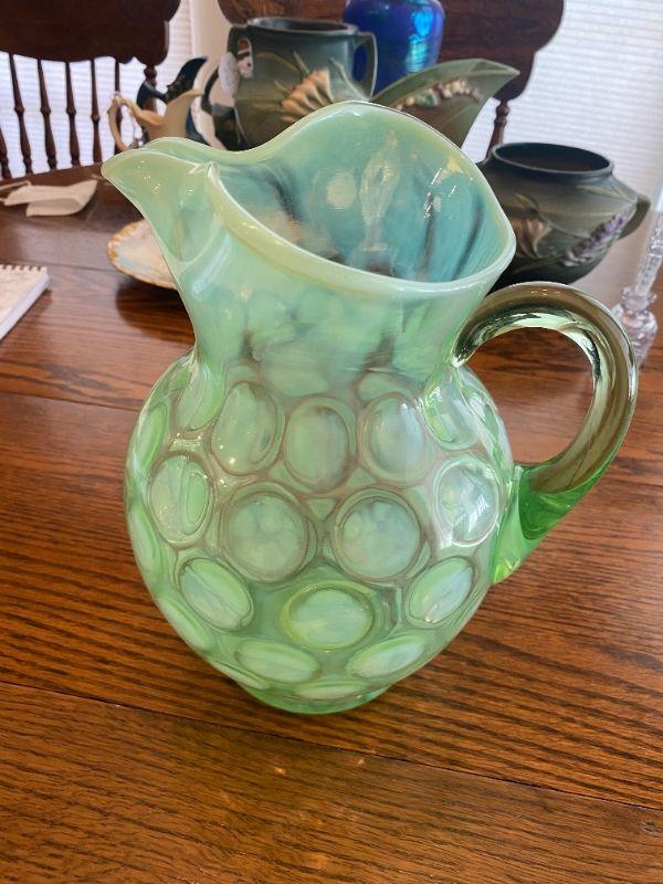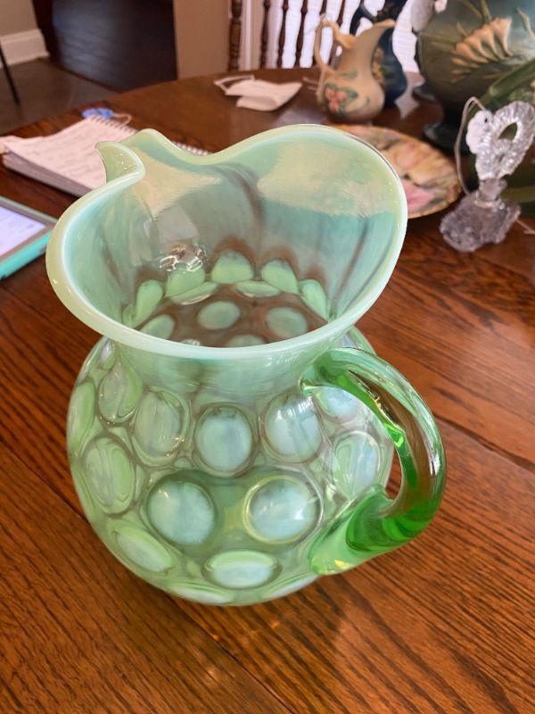 Fenton Coin Dot Pitcher Green