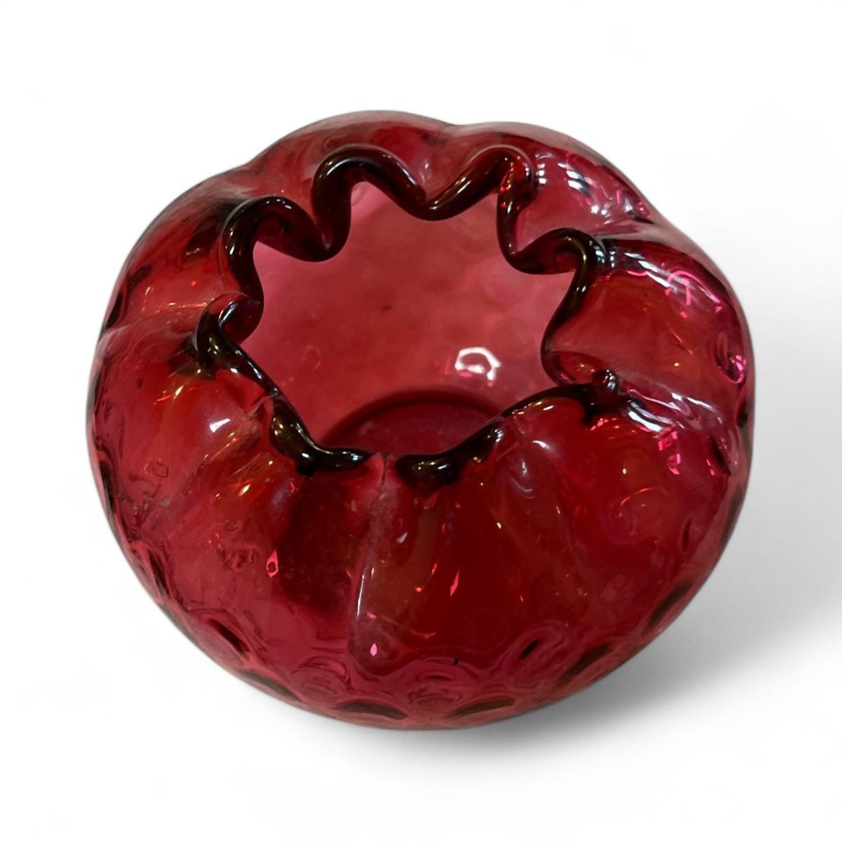 Fenton Cranberry Glass Rose Bowl. No Manufacturing mark