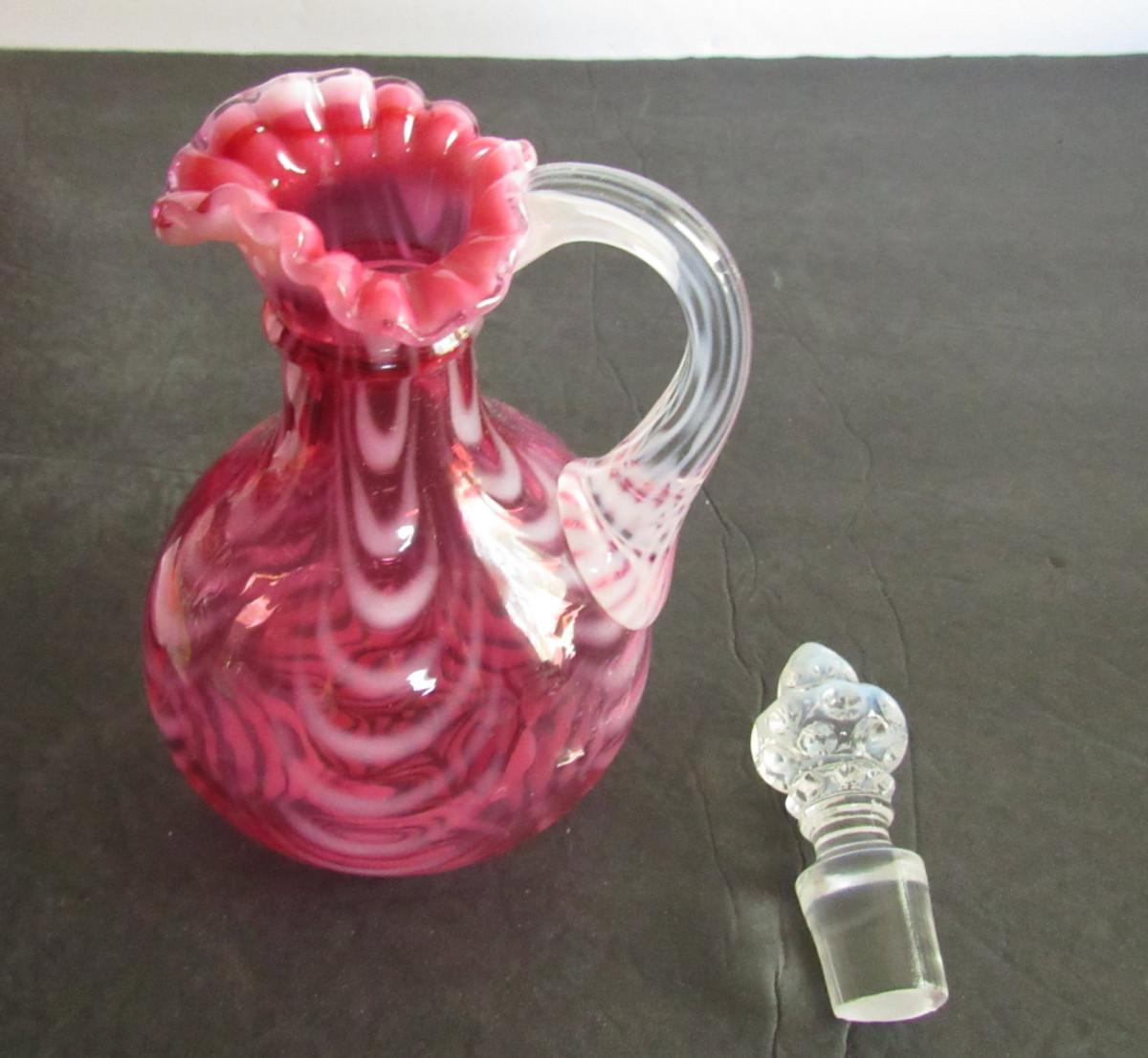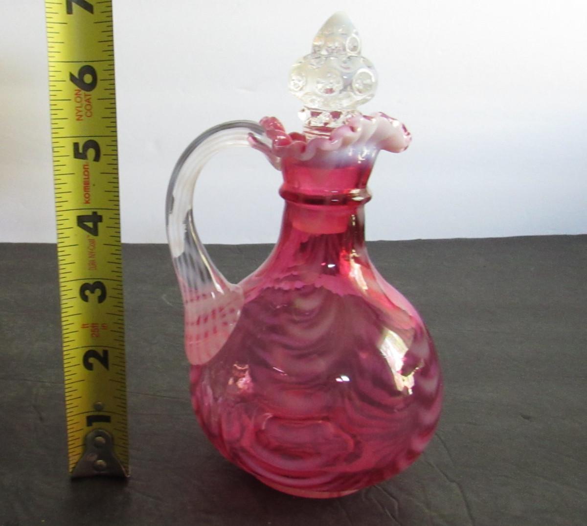 Stopper may not be original. The stopper is also opalescent and appears to be in nice shape. I don't see any damage to the cruet. Shipping is available at actual shipping cost plus $5.00 handling fee per box for supplies/labor. See our terms for details. All sales are final. Condition notes may not be all inclusive, we may miss some issues as most vintage items are not in mint condition and have some degree of wear, paint loss, etc, but we always try to note obvious damage.