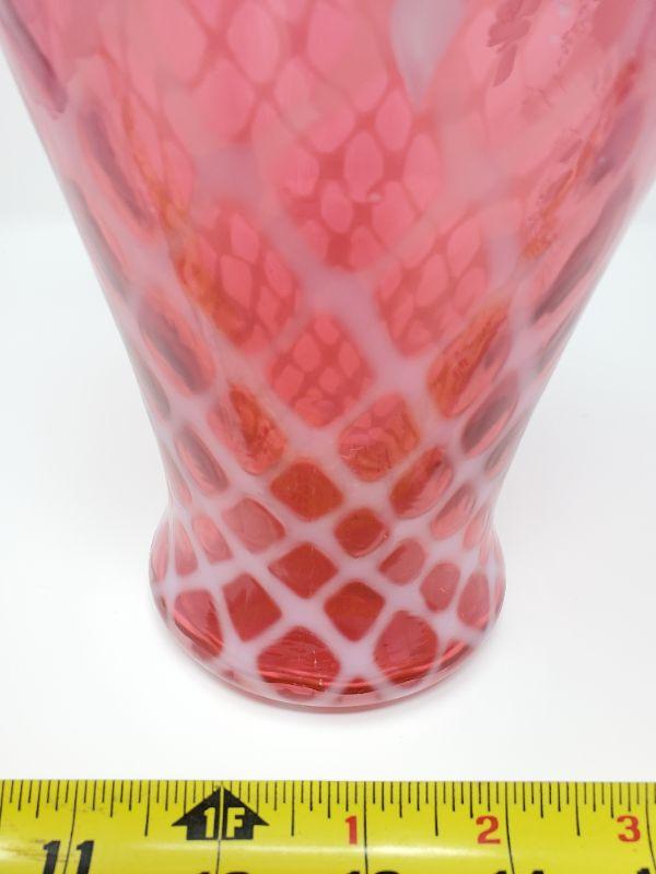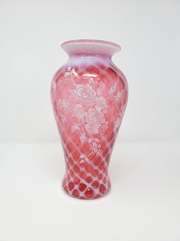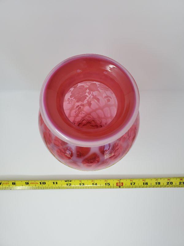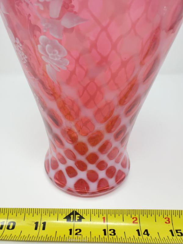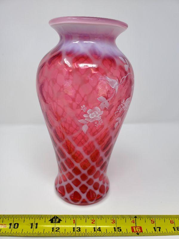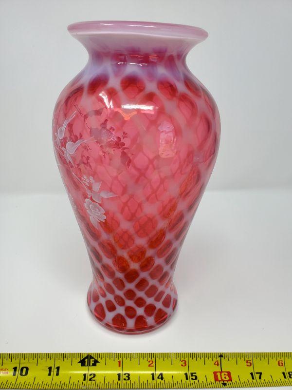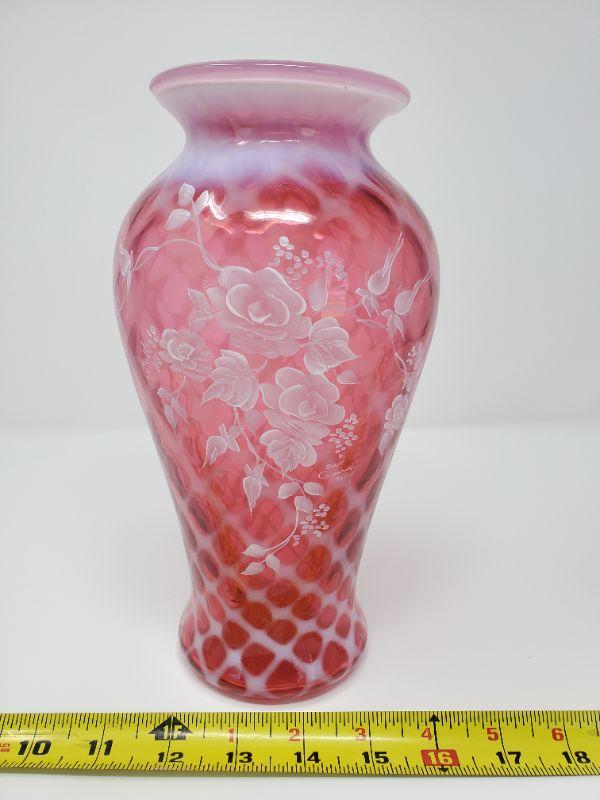 FENTON CRANBERRY OPALESCENT HAND PAINTED VASE