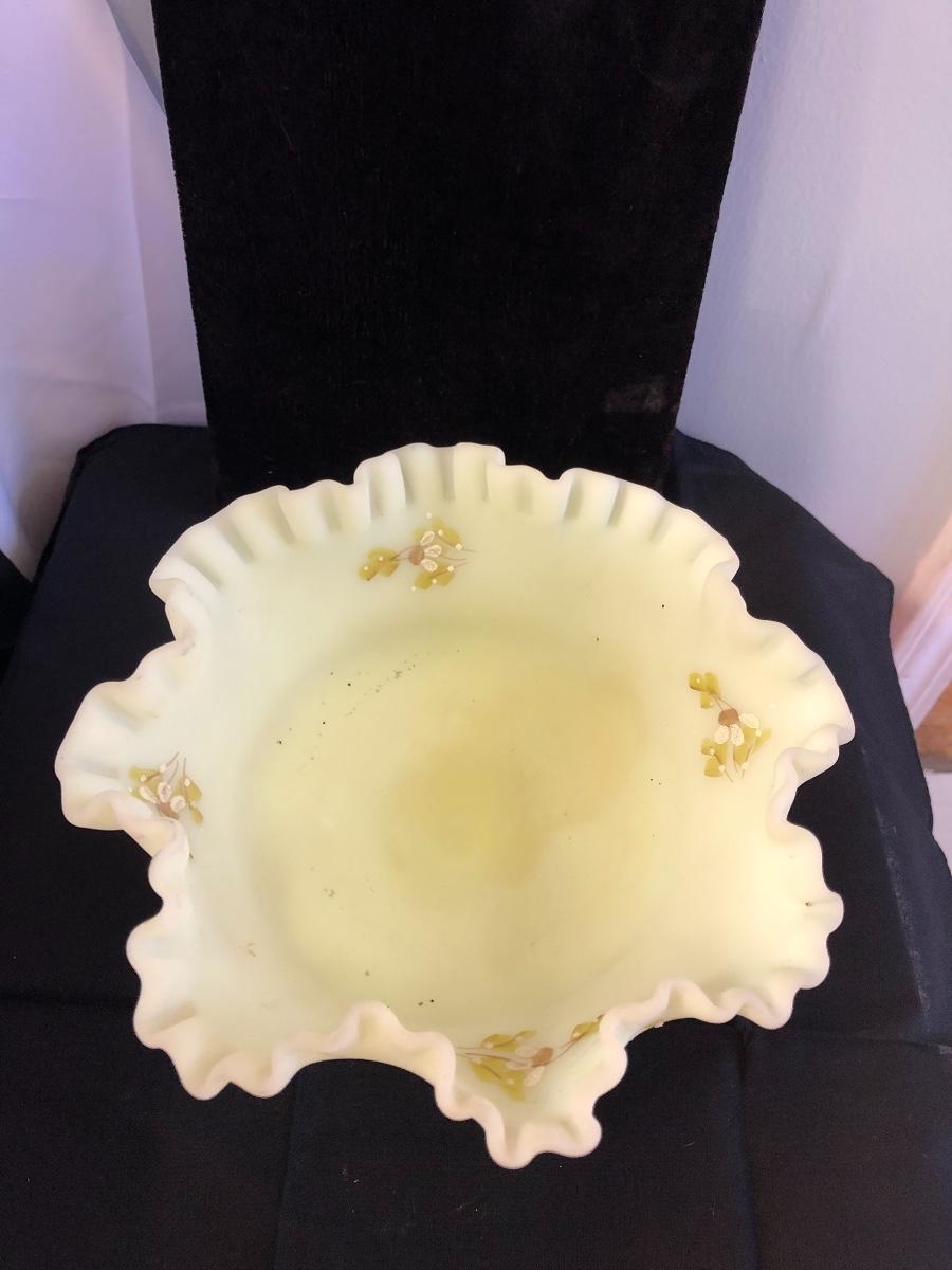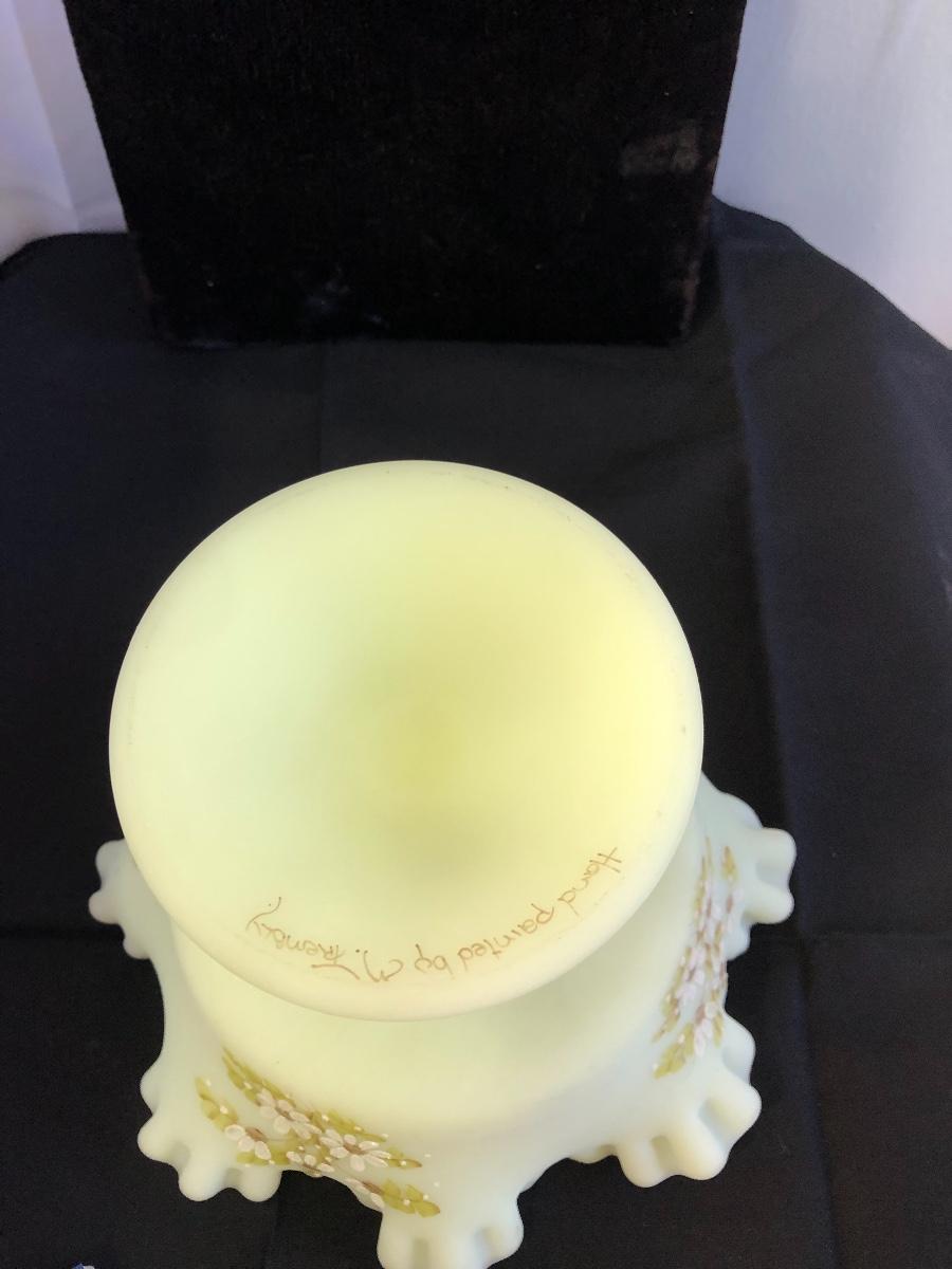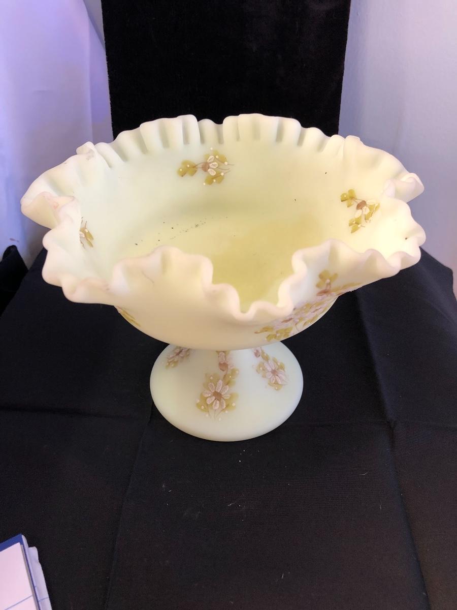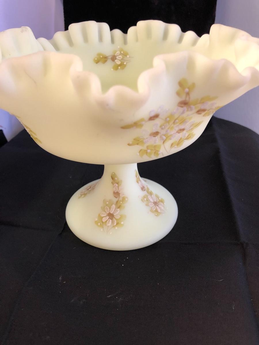 Fenton custard satin glass ruffled compote