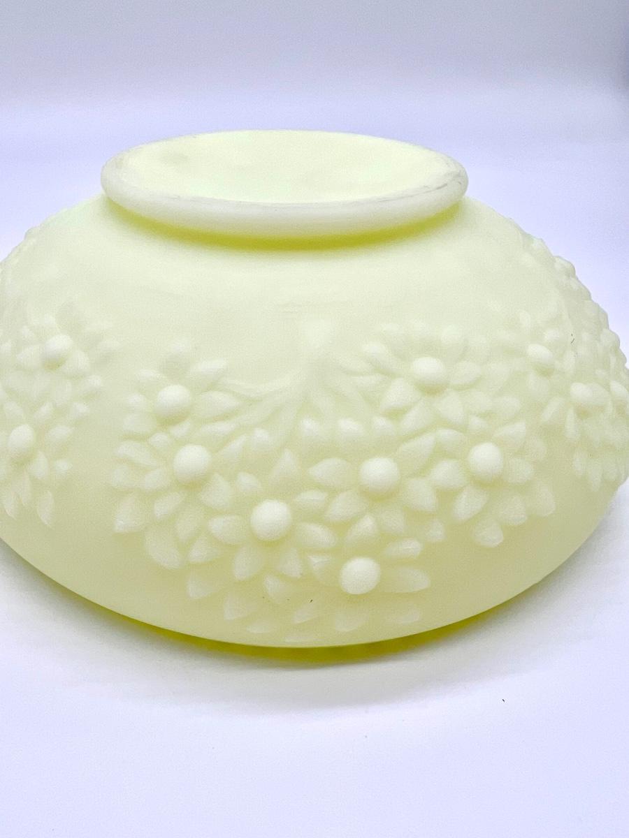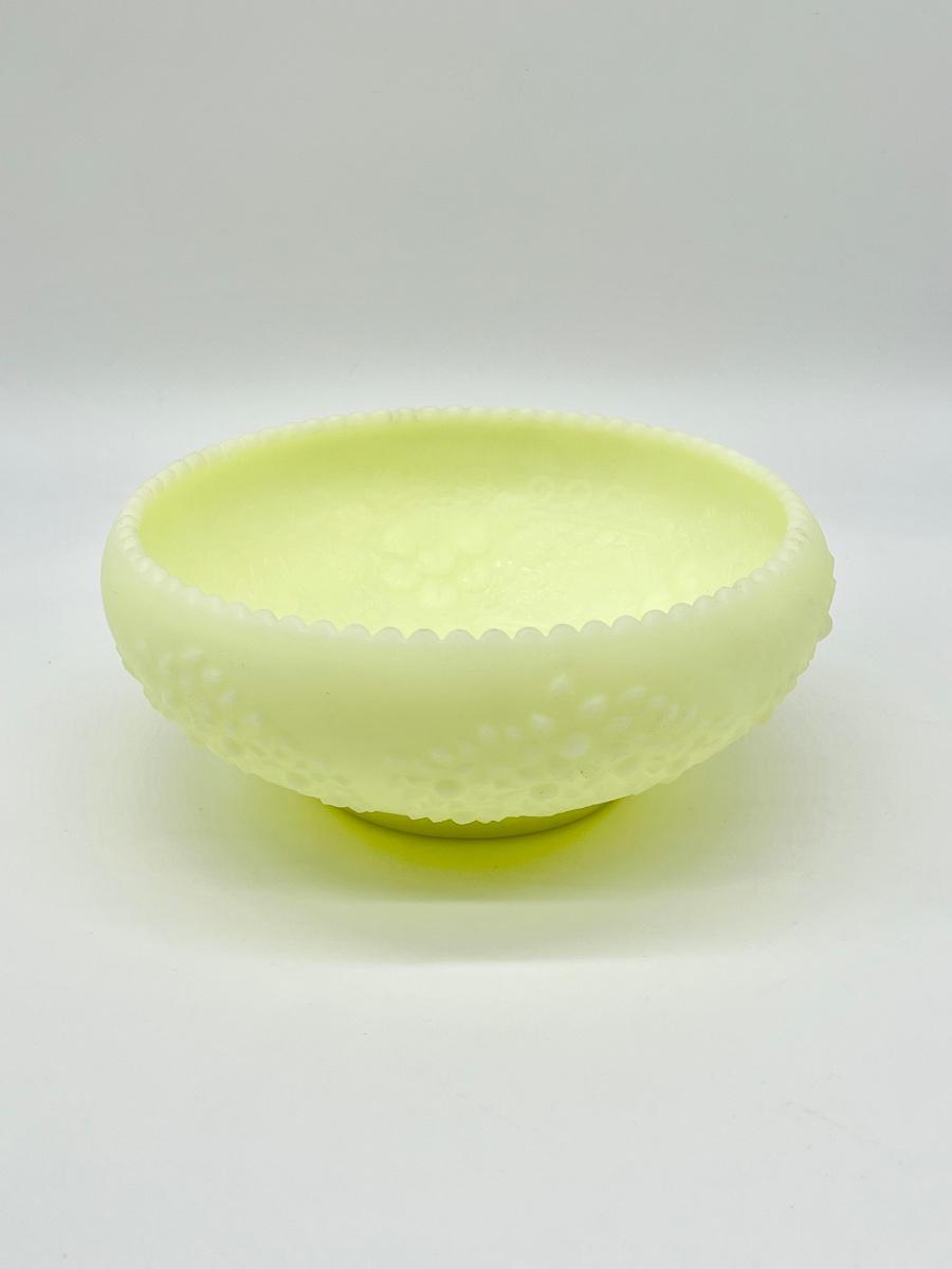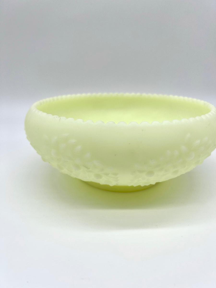 FENTON ~ Custard Satin Uranium Glass Orange / Cherry Tree Pattern Bowl