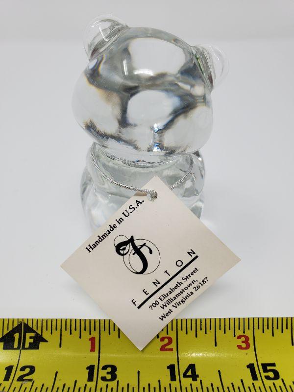 This Fenton bear is in very good condition, card attached, sticker attached on bottom and Fenton can be seen stamped into the glass on back near bottom.