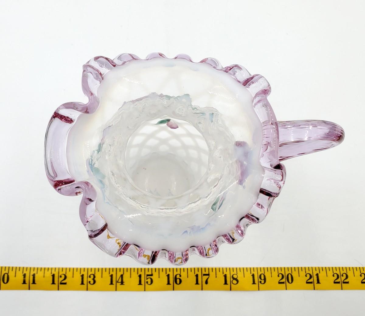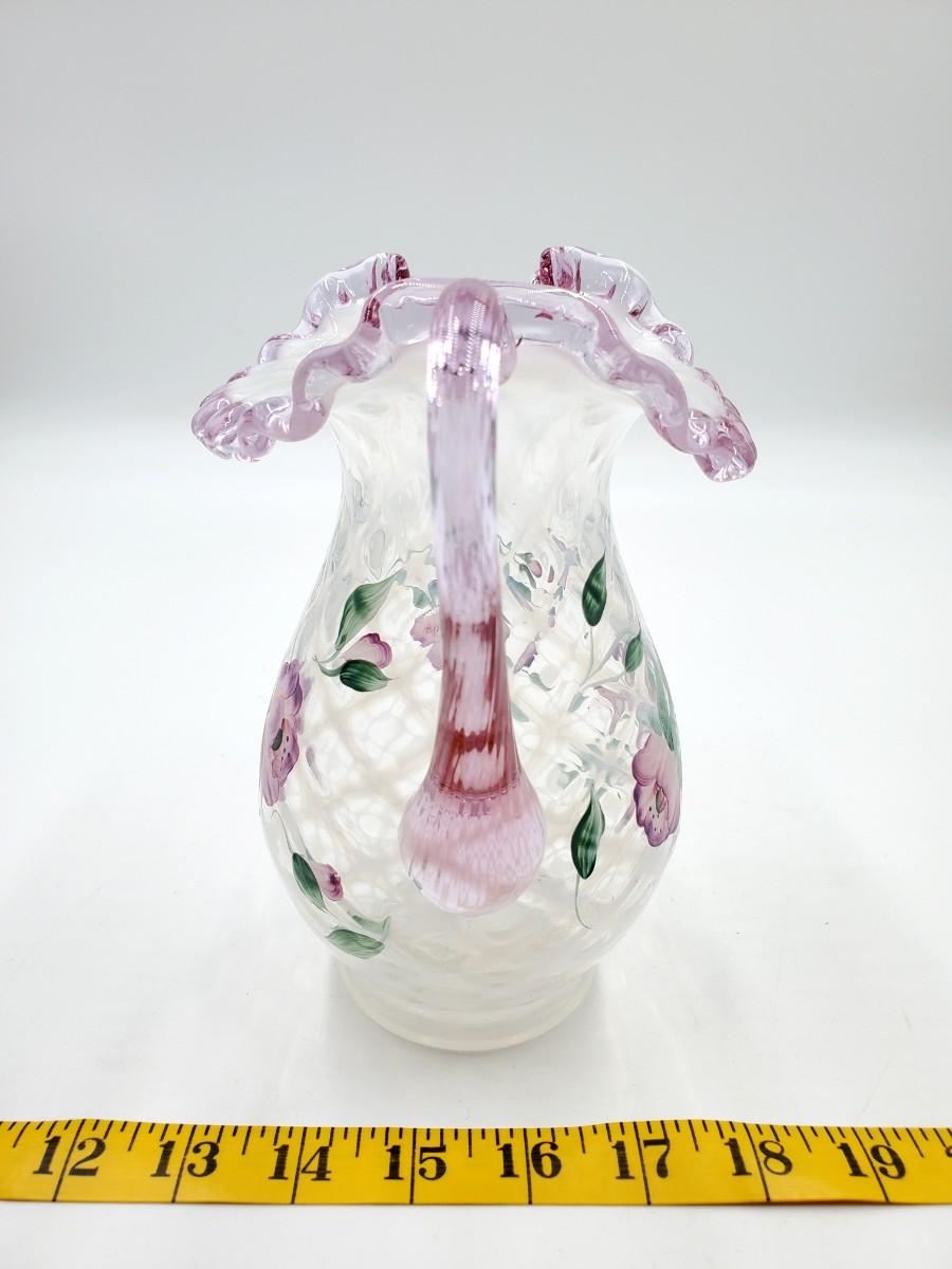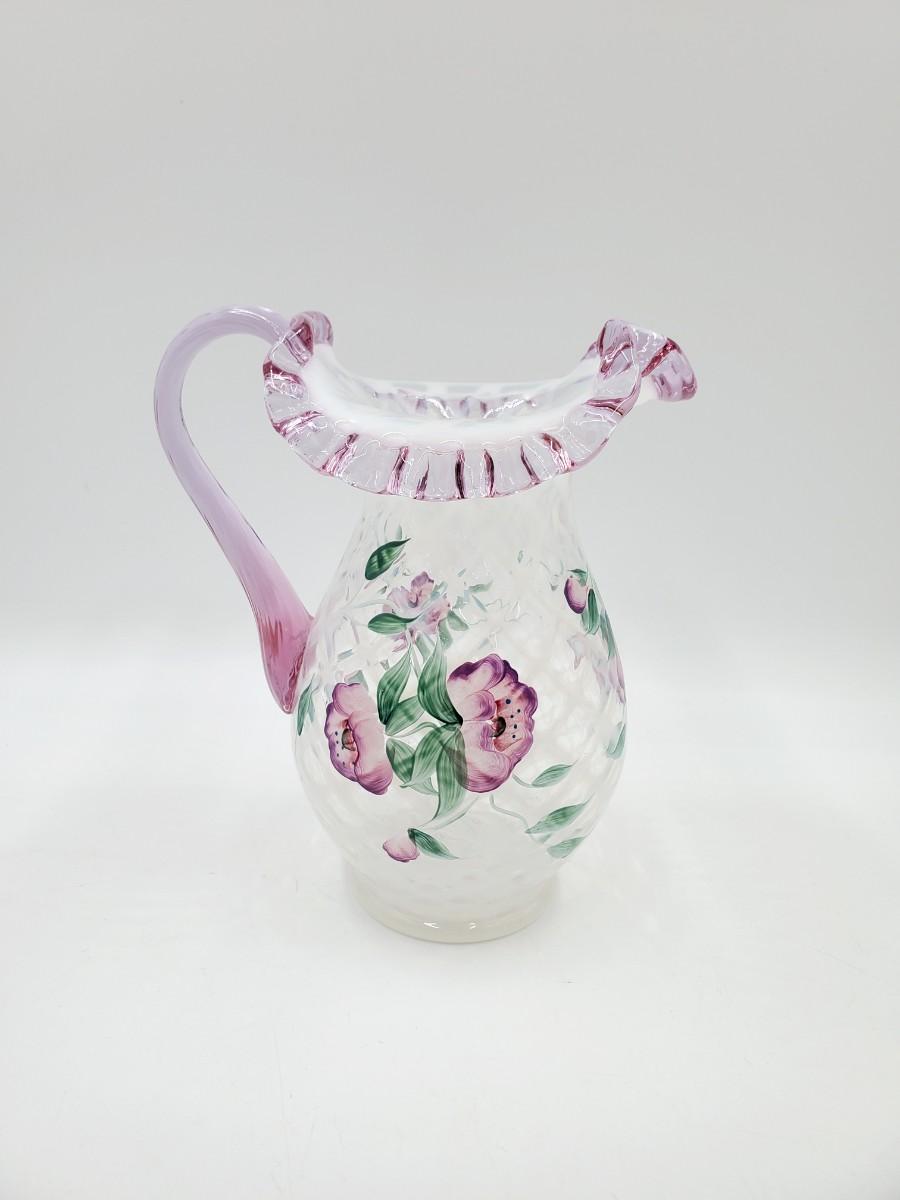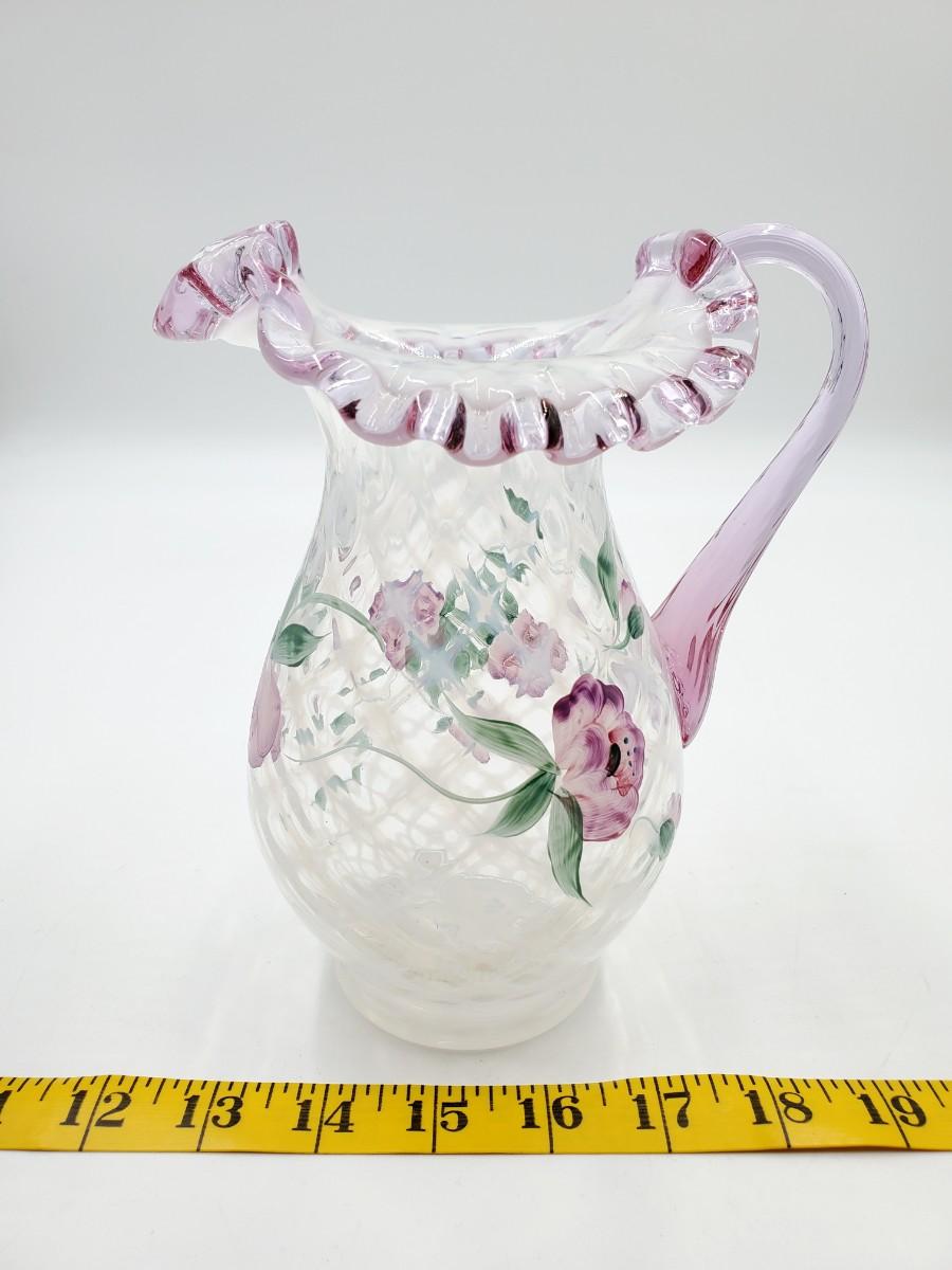 FENTON DIAMOND OPTIC PINK CREST HAND PAINTED PITCHER