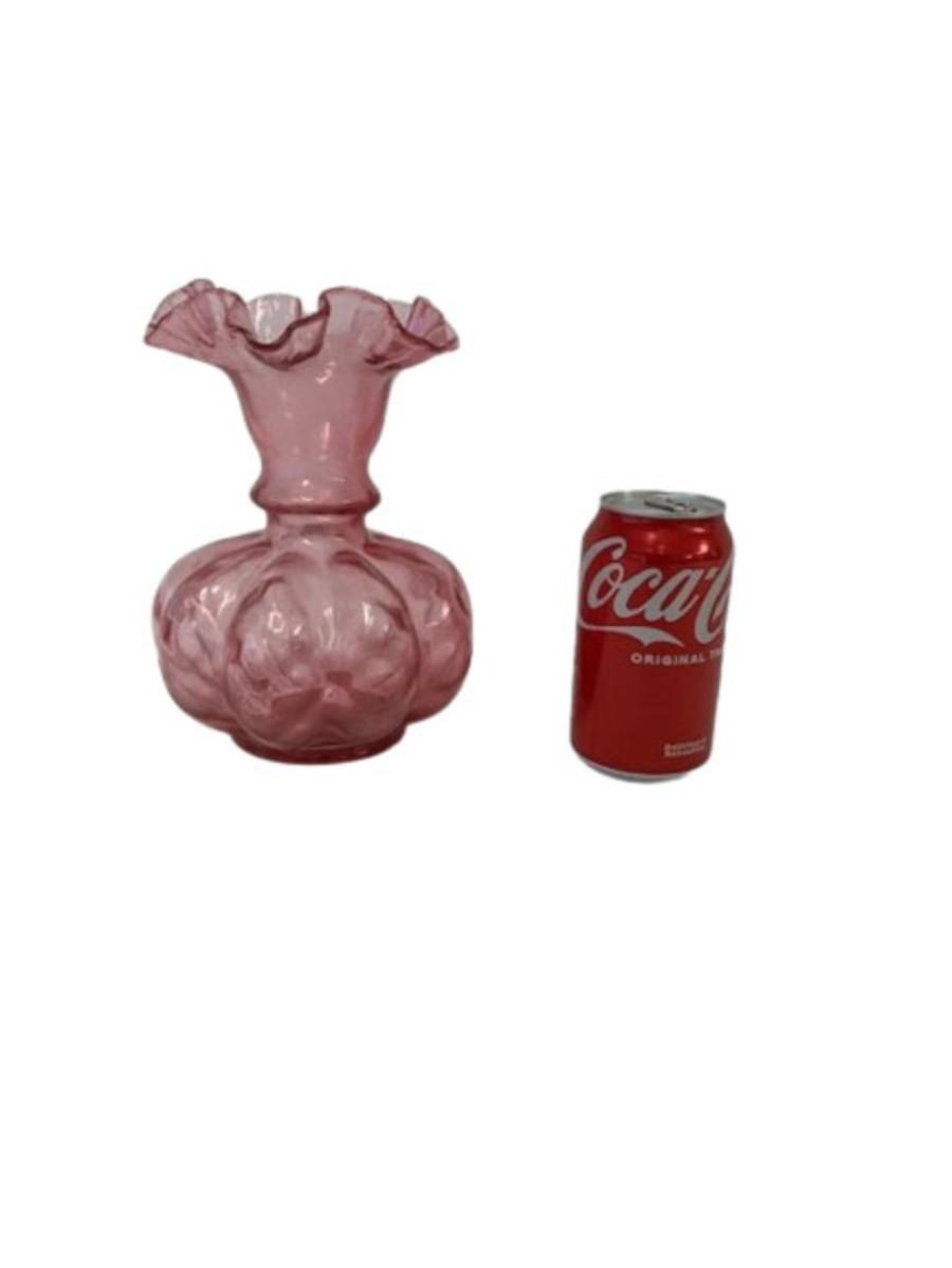 Fenton Diamond Optic Ruby Overlay Melon Vase