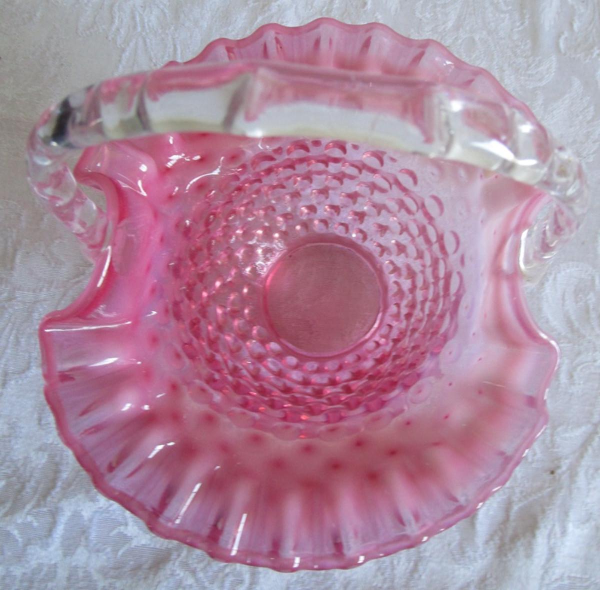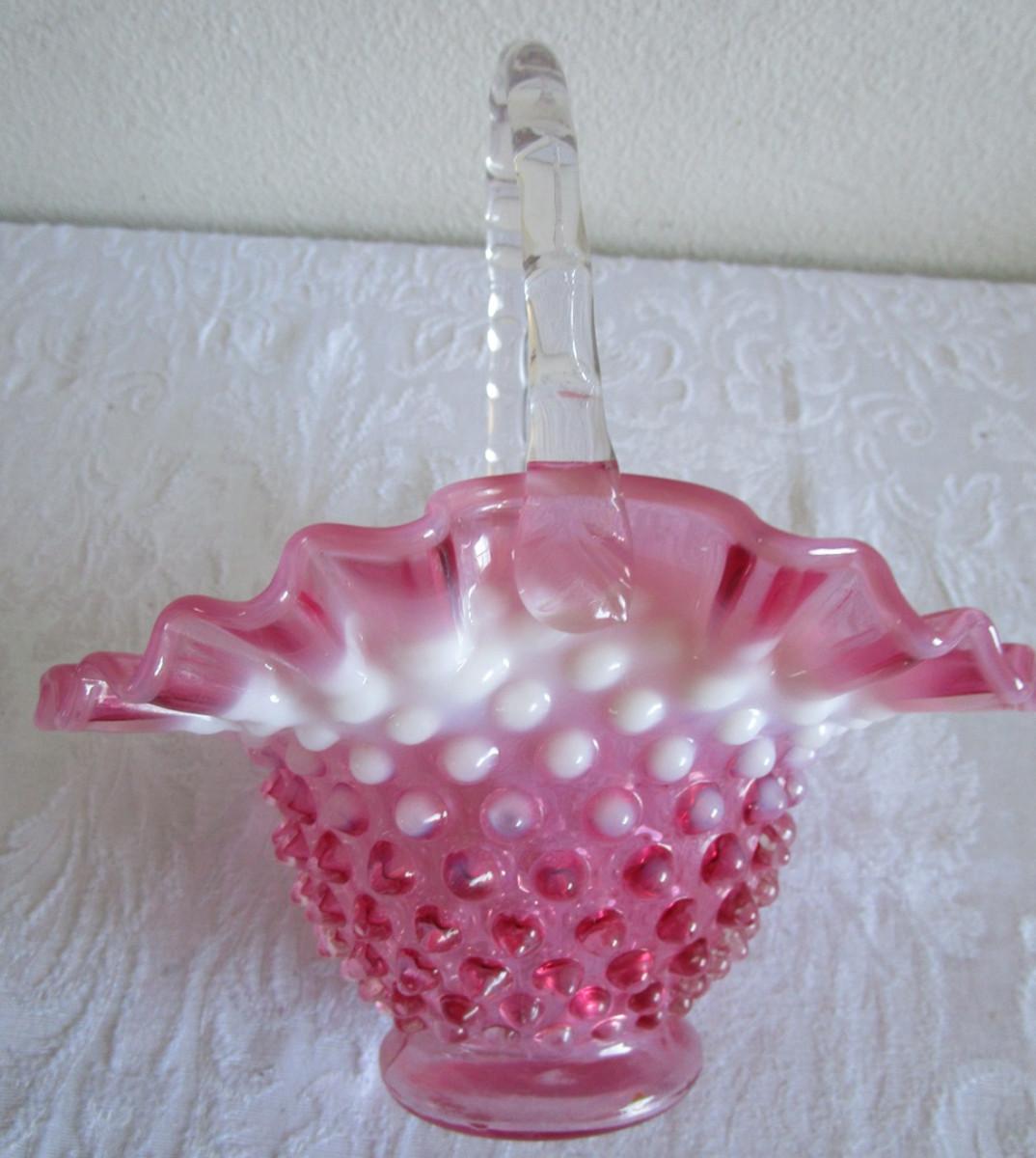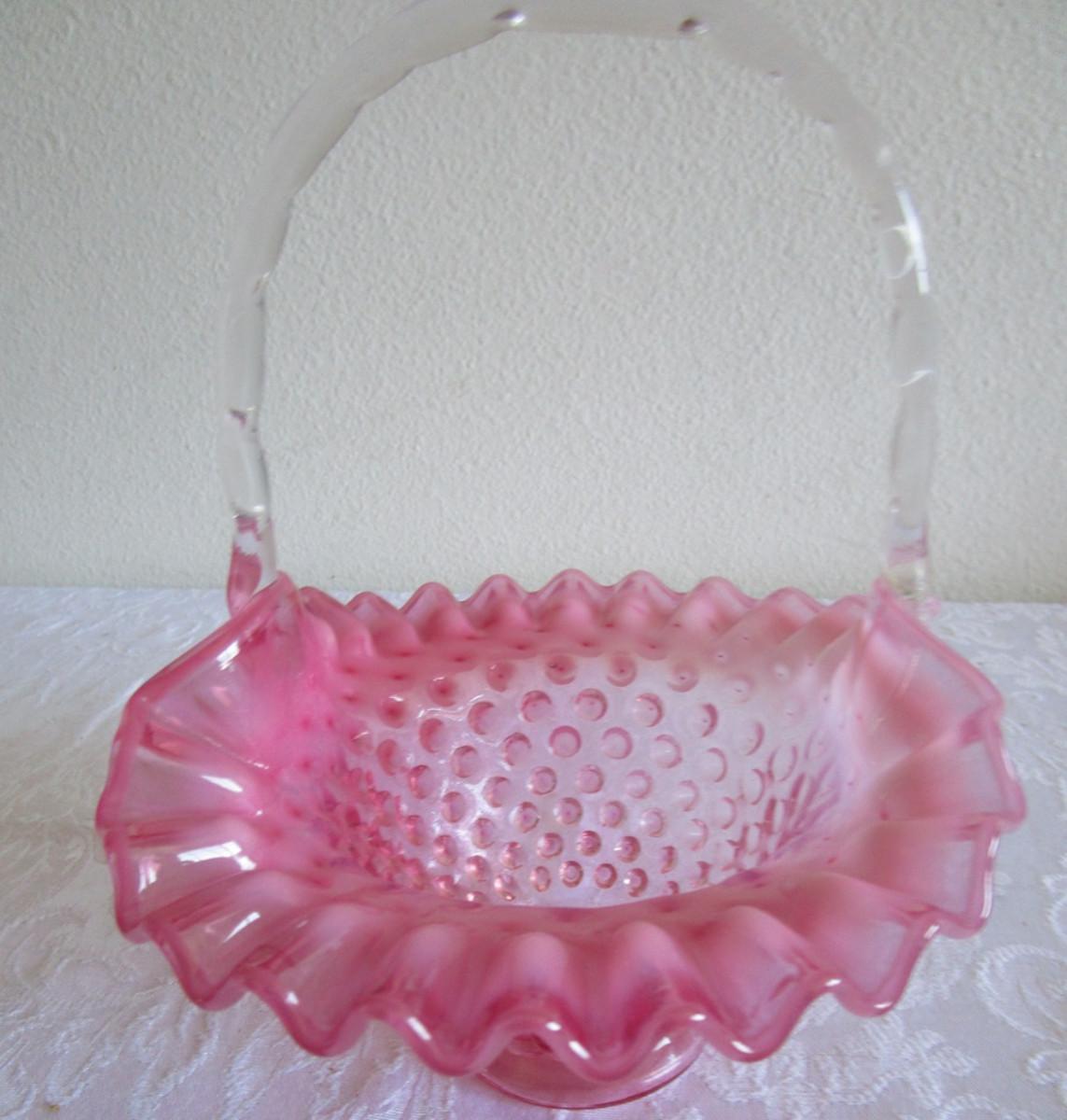 Vintage Fenton Easter cranberry opalescent hobnail basket