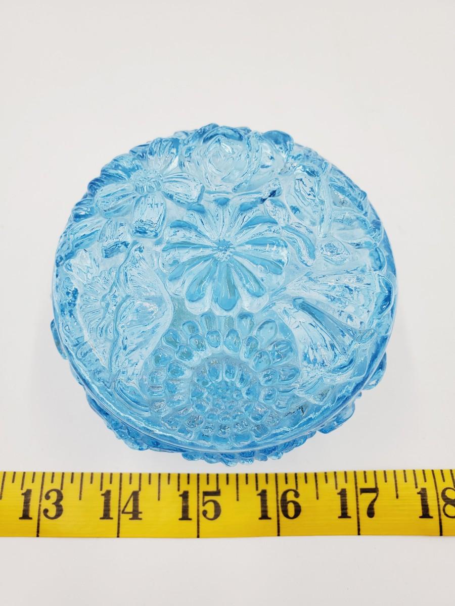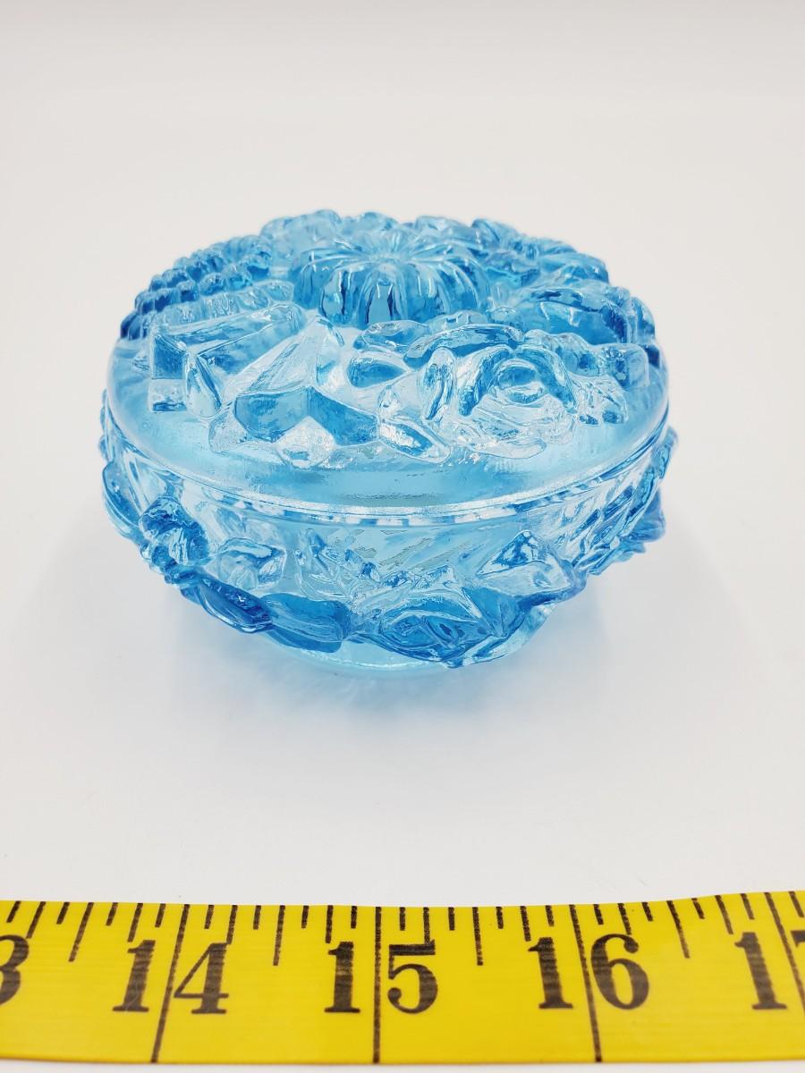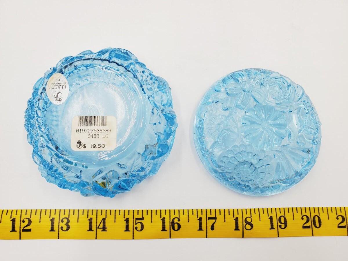 This dainty Fenton dish is adorned with flowers, 9486 LC. Stickers attached to bottom, the Fenton sticker does show signs of wear. Maker's mark on bottom, in very good condition.
