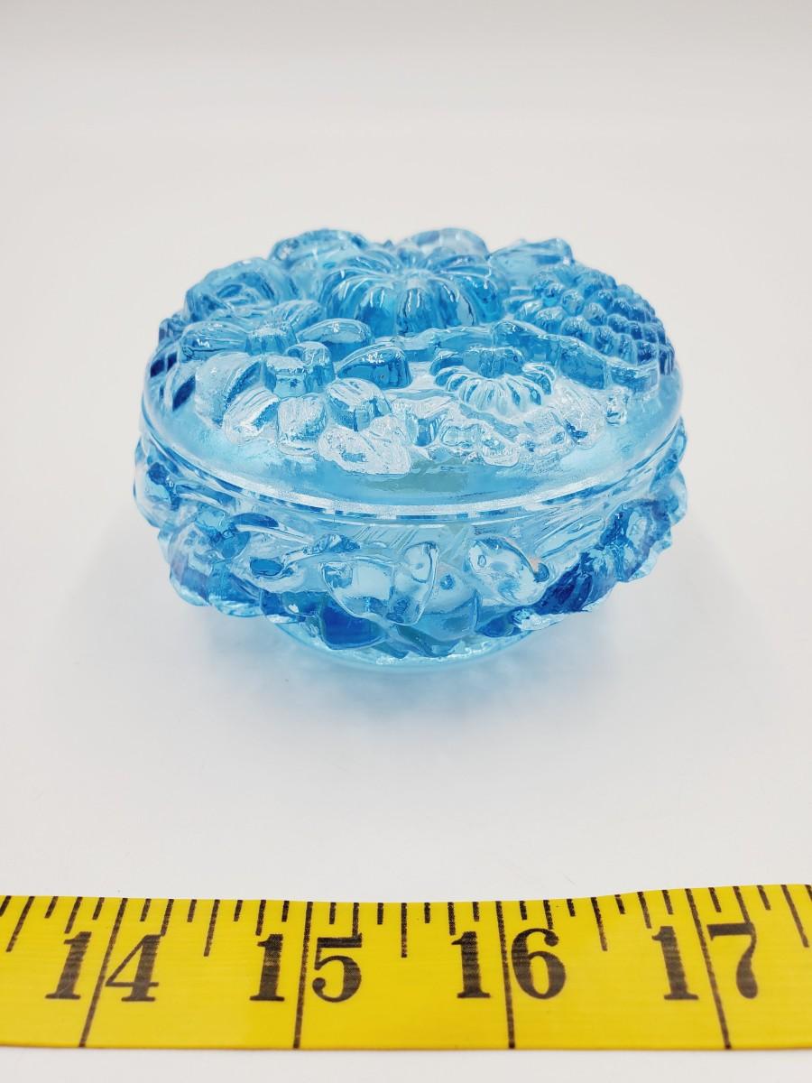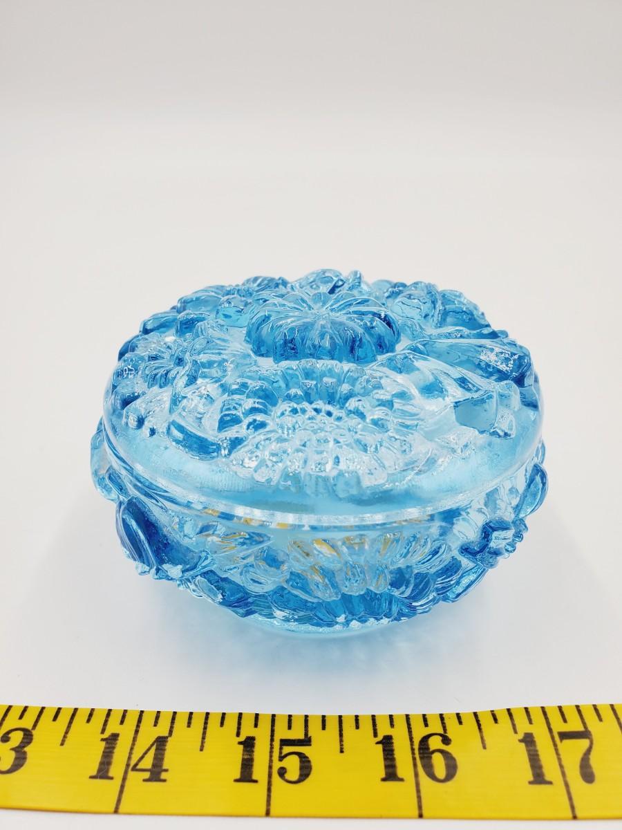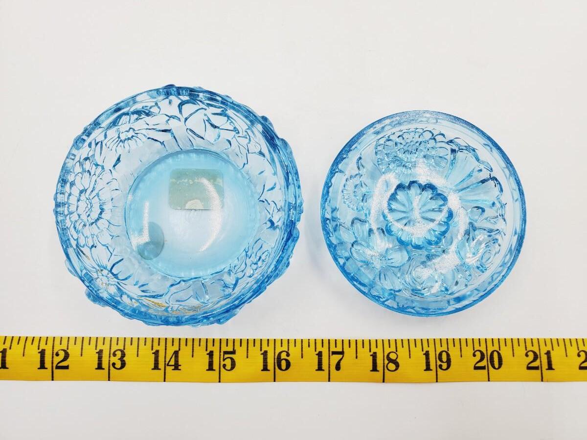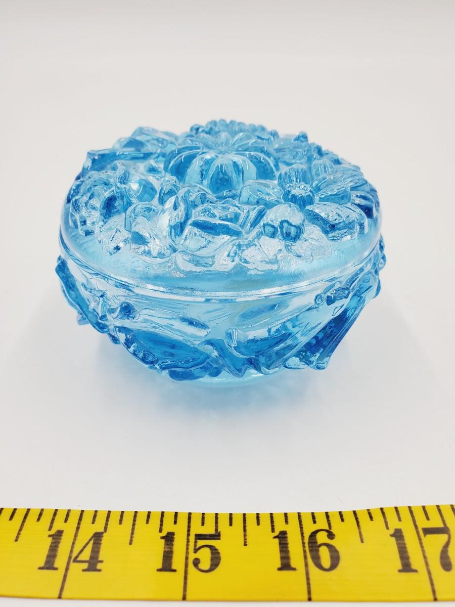 This dainty Fenton dish is adorned with flowers, 9486 LC. Stickers attached to bottom, the Fenton sticker does show signs of wear. Maker's mark on bottom, in very good condition.