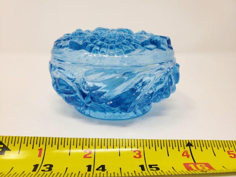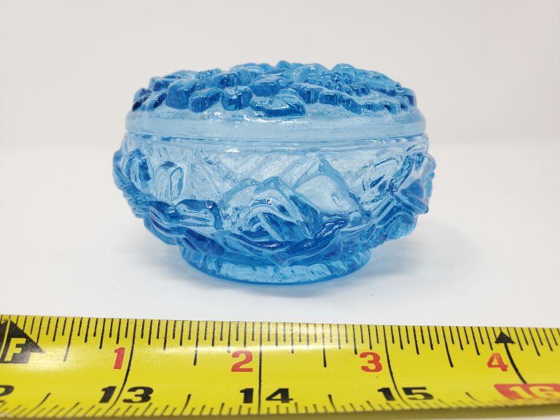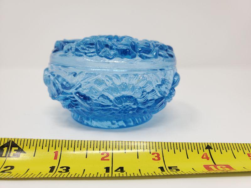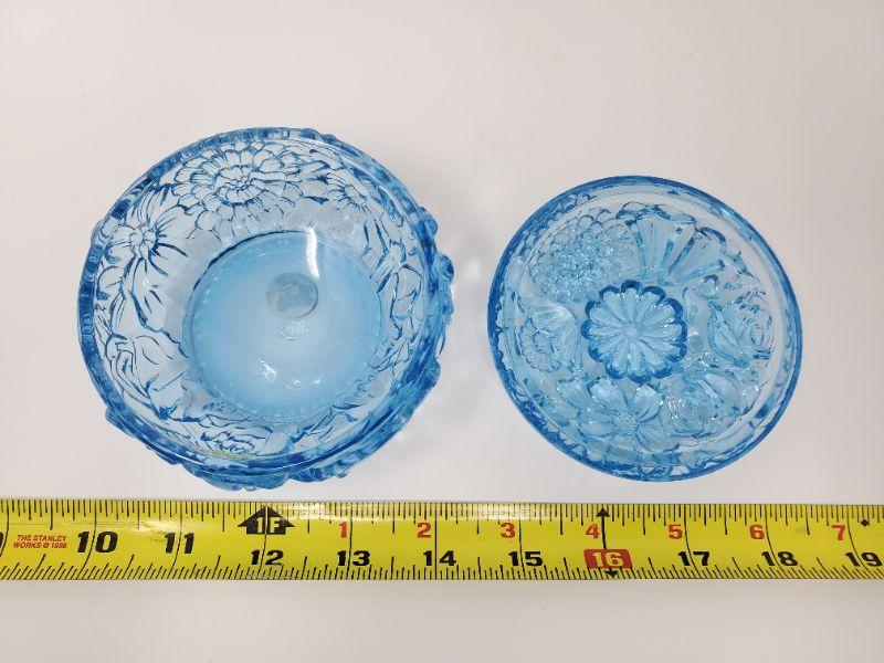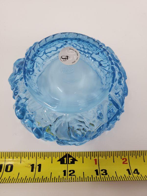This Fenton piece is adorned with many different flowers, very good condition. Special Fenton sticker attached, Fenton Art Glass 1905-2000. Fenton stamped into bottom of dish and the underneath side of lid.
