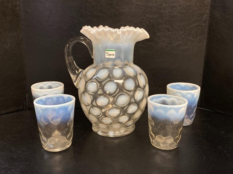 Fenton French Opalescent Coin Dot 5 Piece Beverage Set