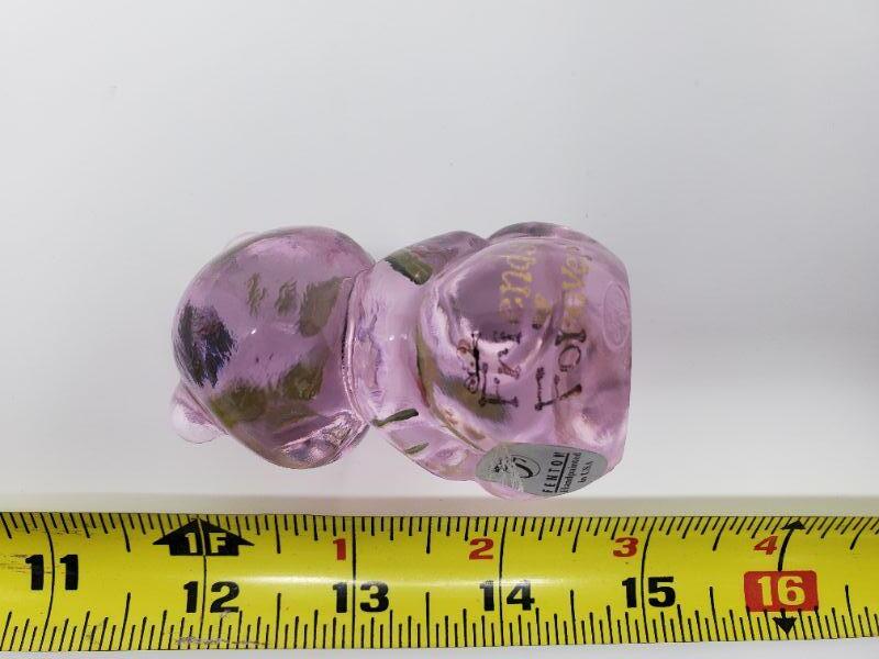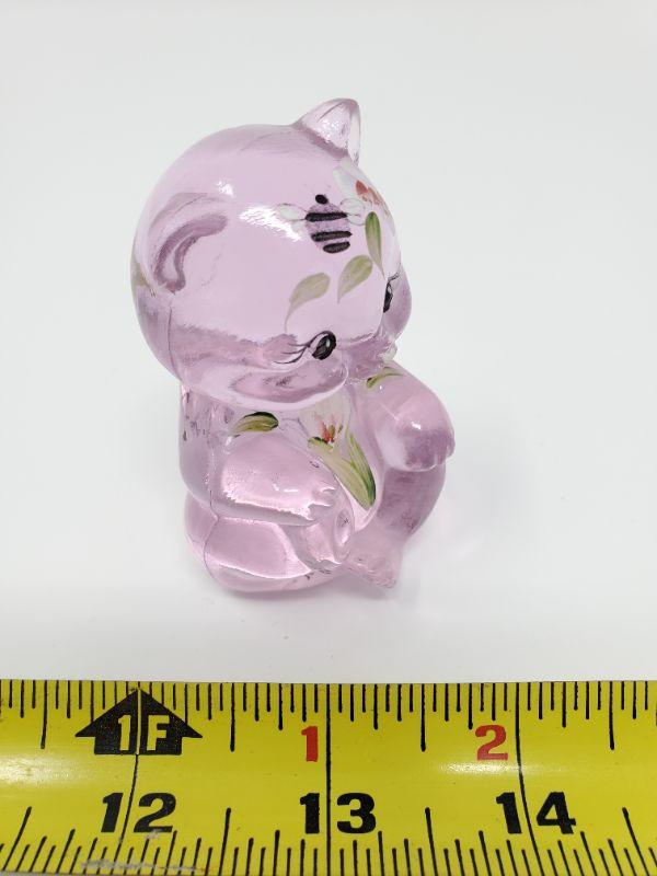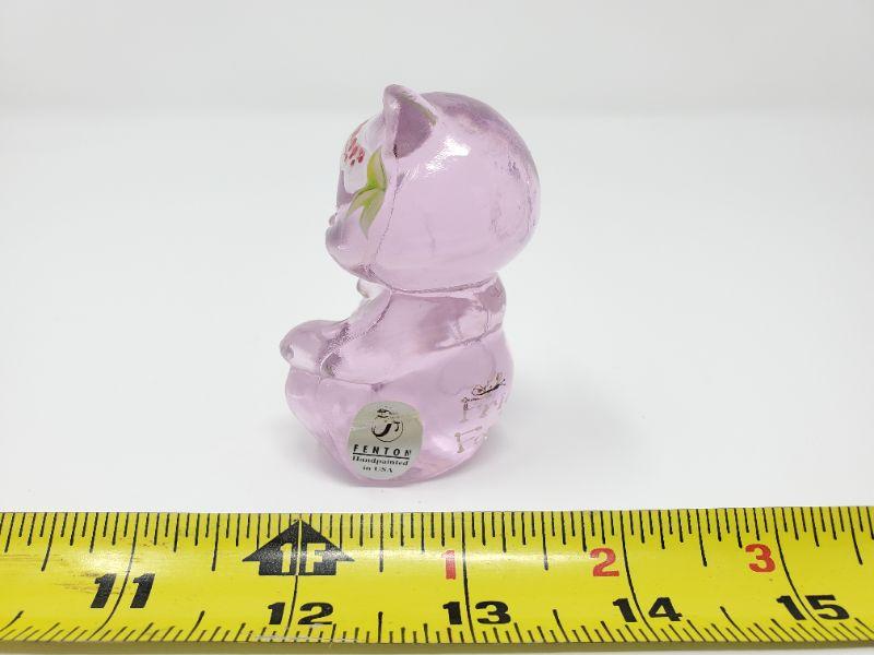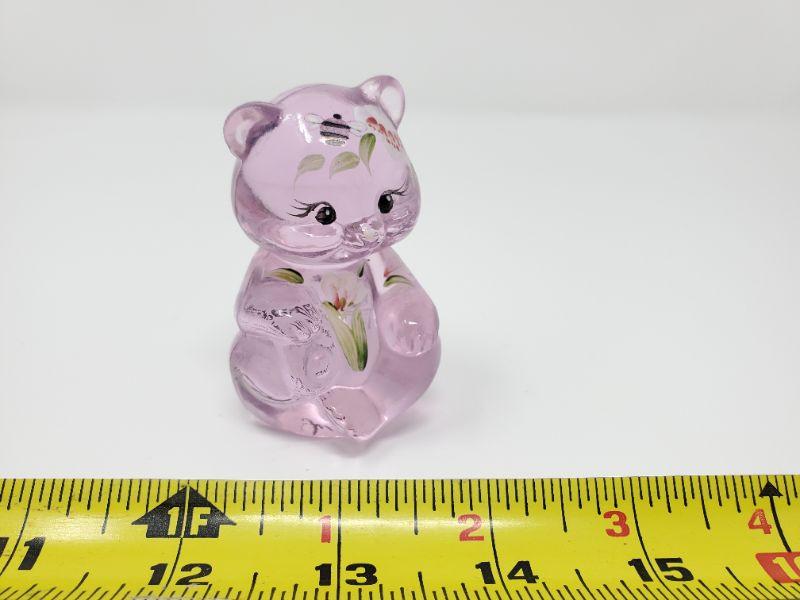 This adorable Fenton bear is hand painted and signed. Fenton is stamped into the glass with sticker attached. Sticker has begun to pull away but still attached, bear is good condition!!