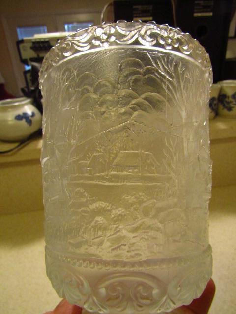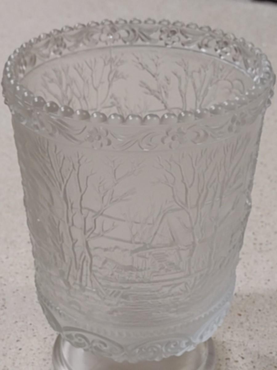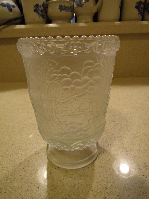 Fenton Frosted Glass Vase- Winter Country Scene