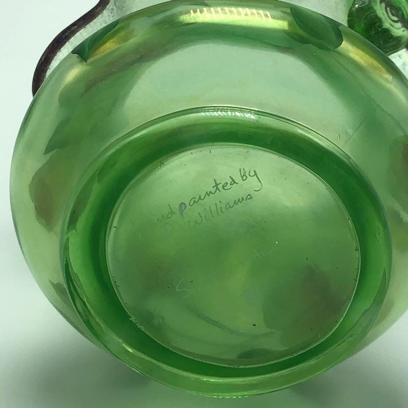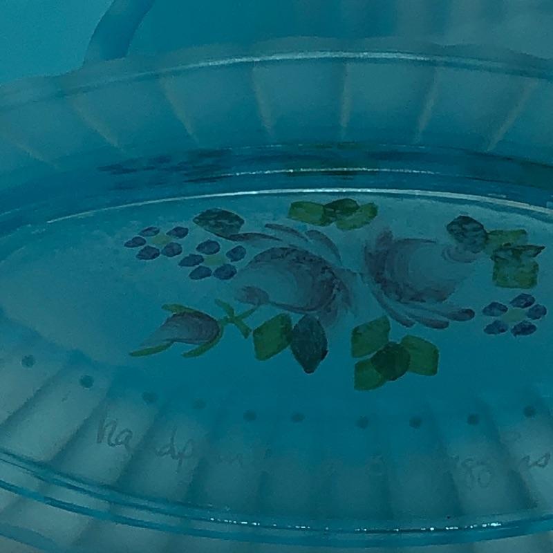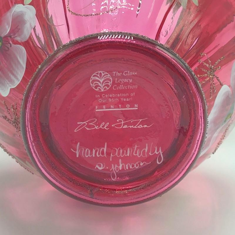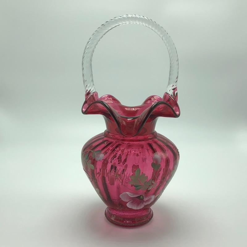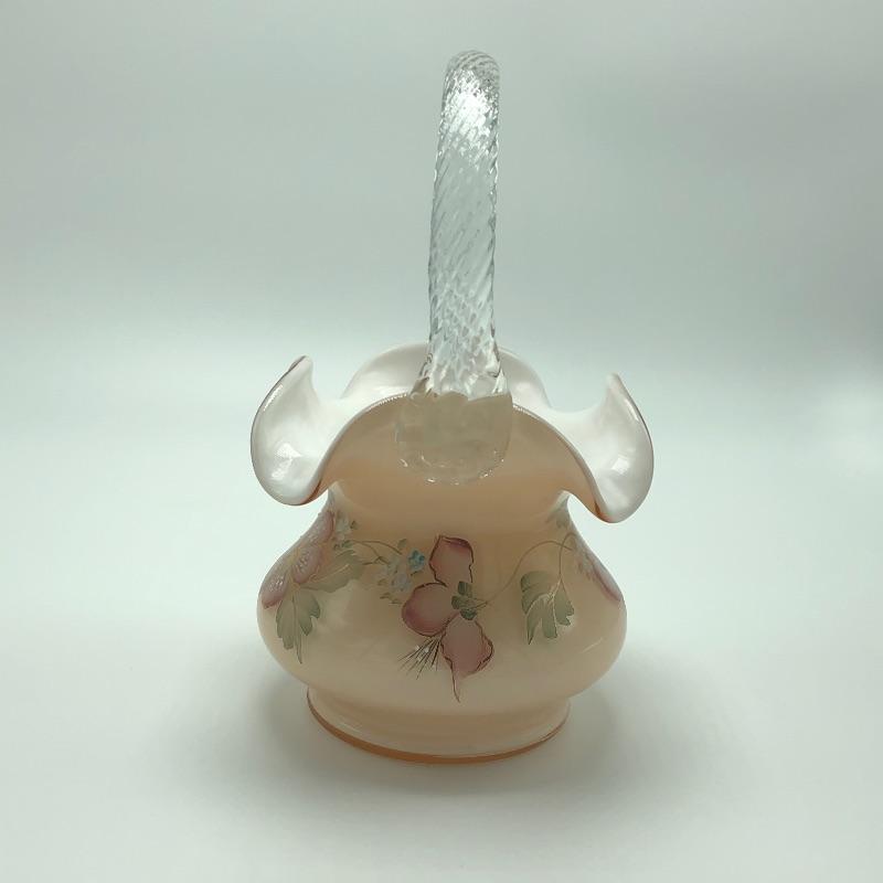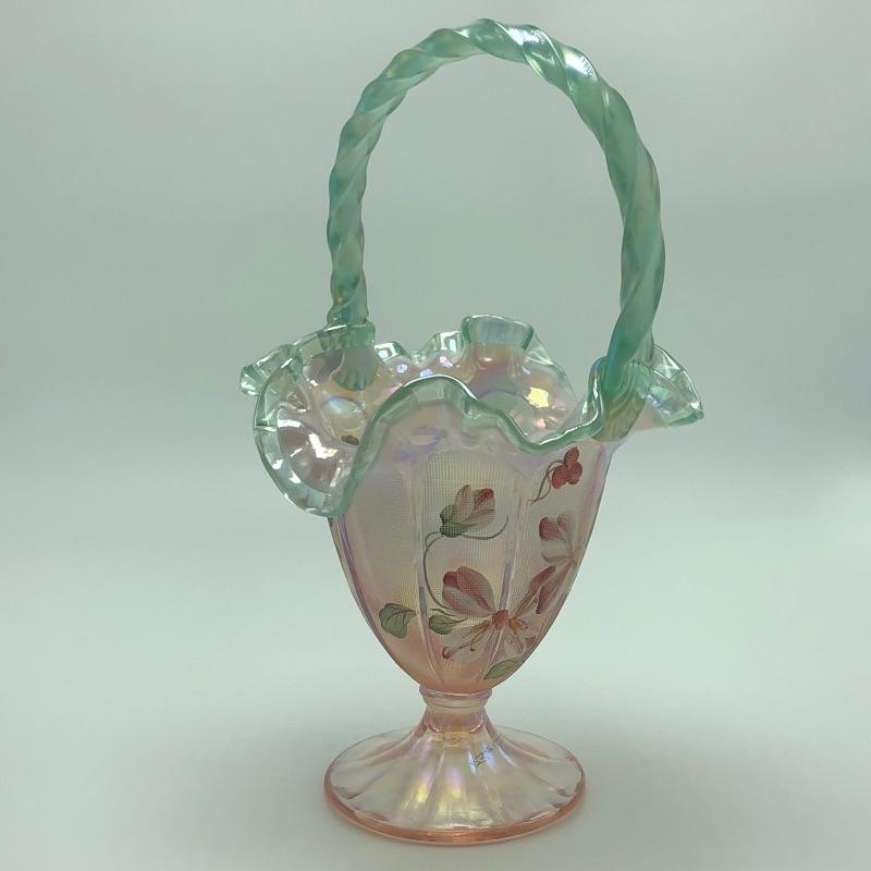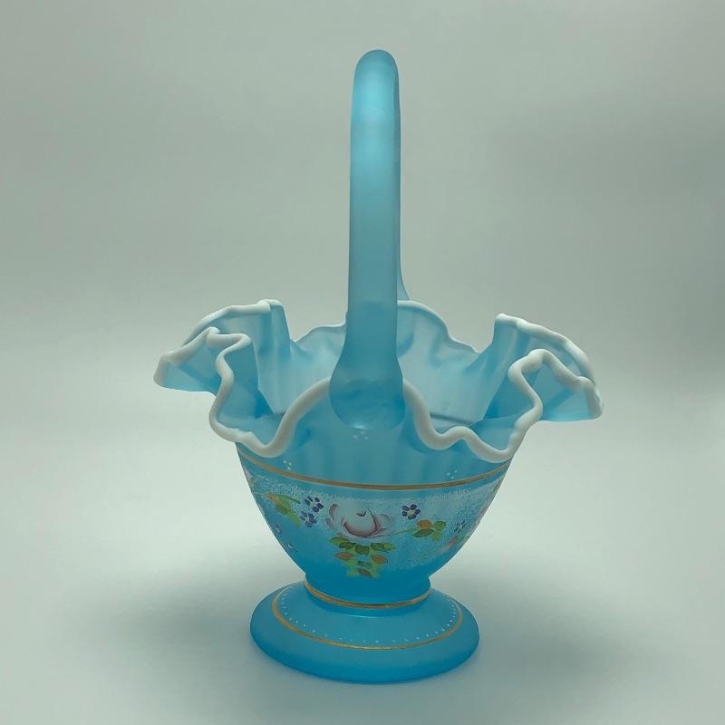 Beautiful assortment of Fenton hand painted glass baskets and a small oval dish with removable hand painted cover. Please note that no Fenton name or symbol was located on the oval dish.