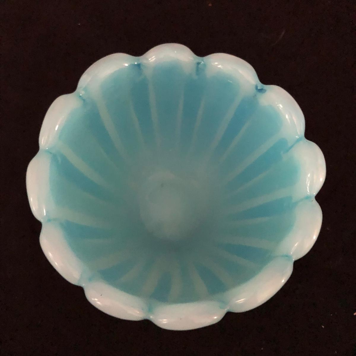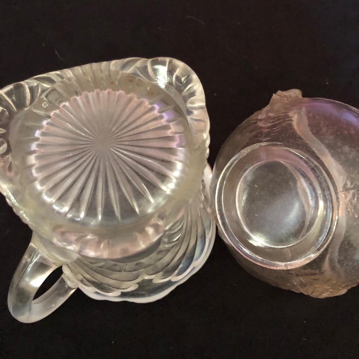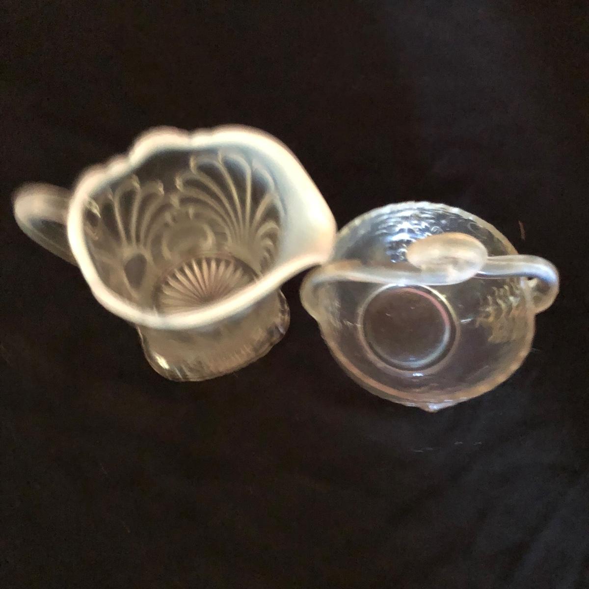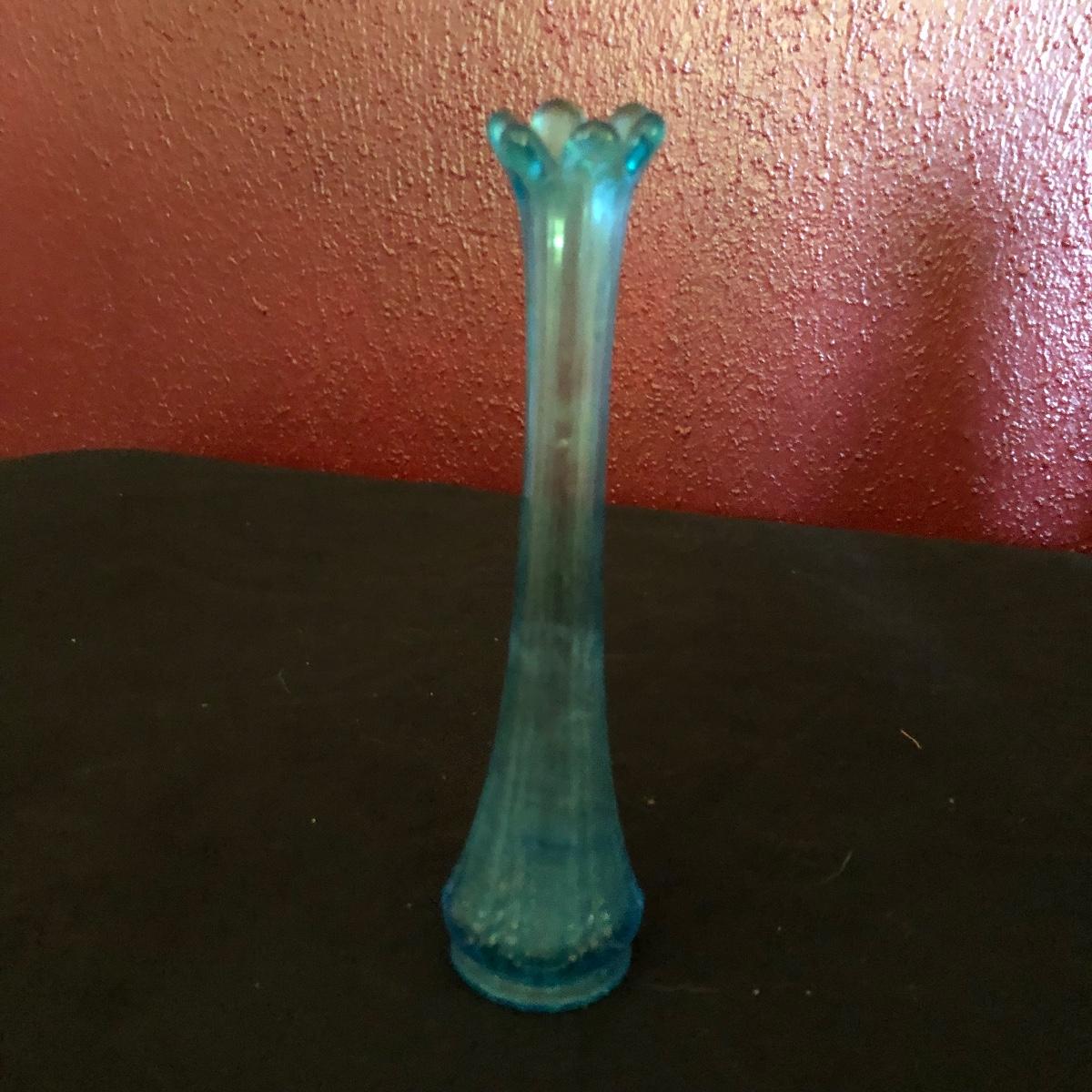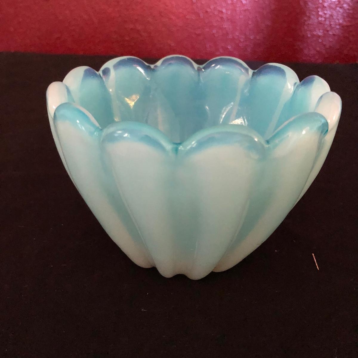 Lot includes Fenton green lattice custard bowl, two footed vases, bowl, lattice dish, footed bowl, pitcher and dish with handle and a vase. Tallest vase measures 4”D x 12” tall.