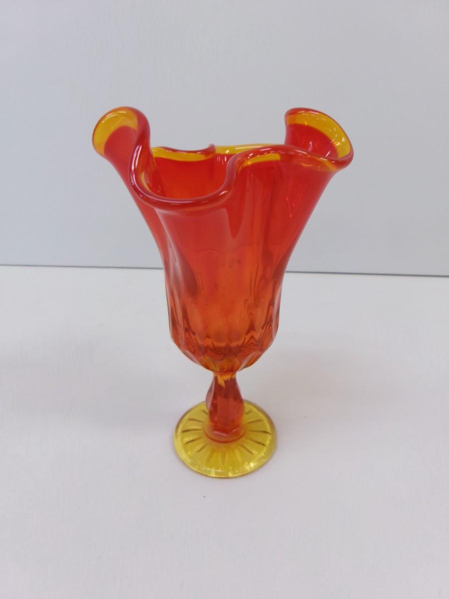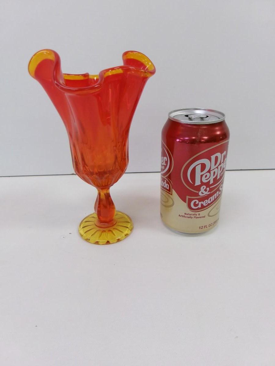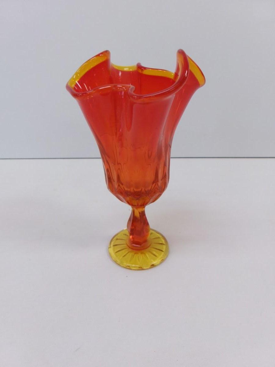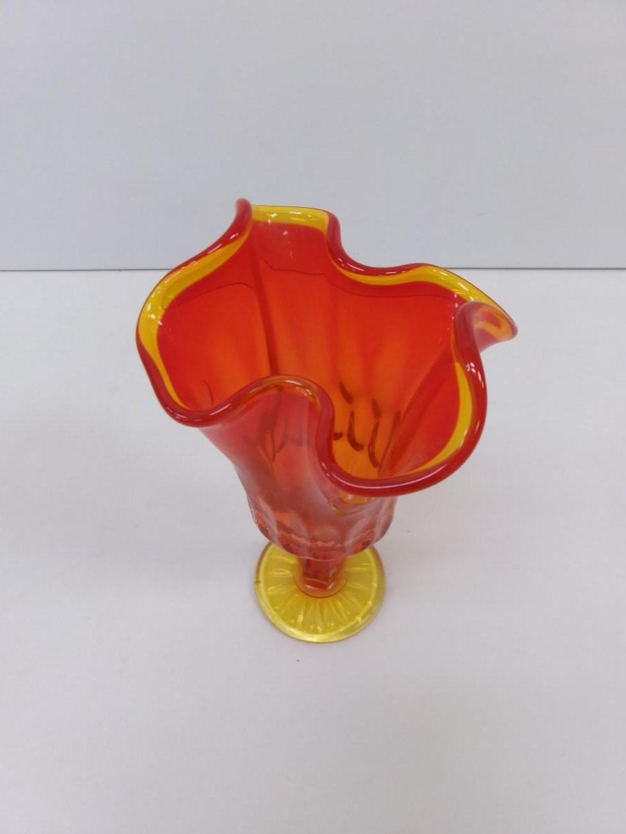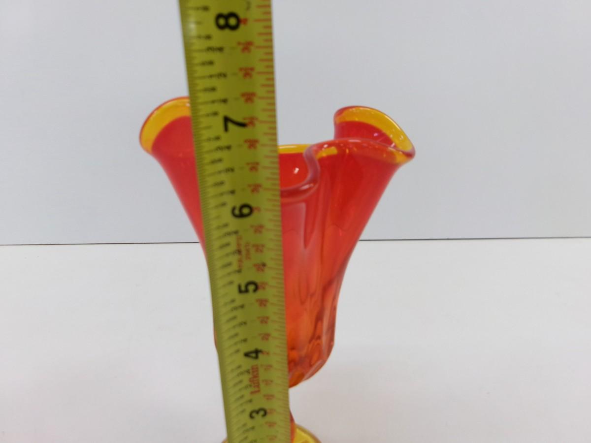 Fenton Glass Orange Amber Handkerchief Glass Vase Approx 7" Tall #35