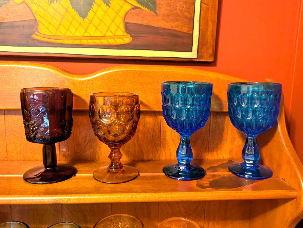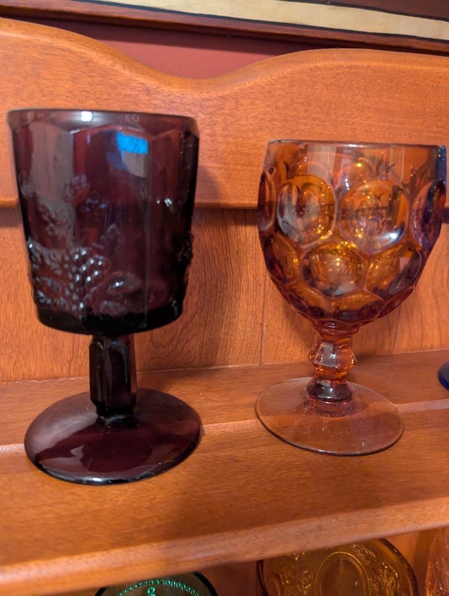 Fenton Glass Thumbprint Water Glasses Imperial Glass L G Wright Panel Grape Amethyst Goblet (DD)