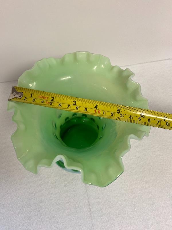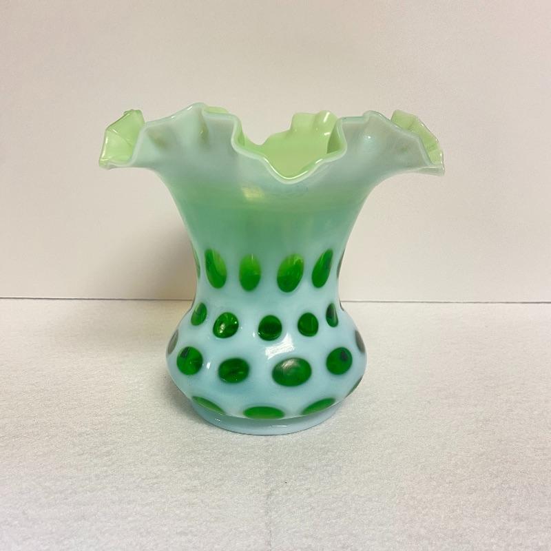 Fenton Green Opalescent Coin Dot Vase