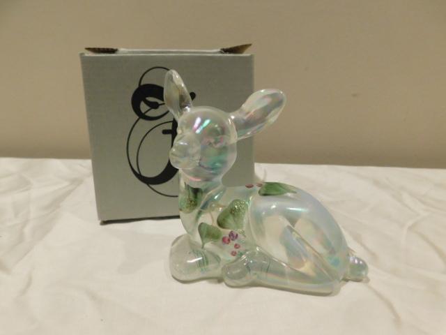 Fenton Hand Painted Deer by Sheela Miller with Box