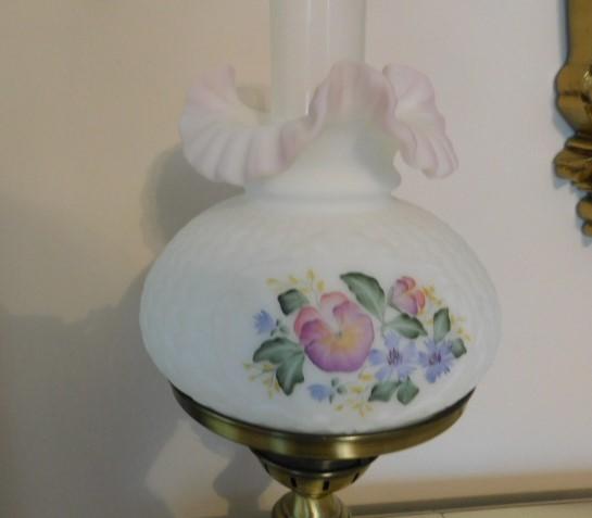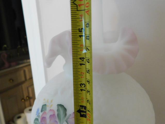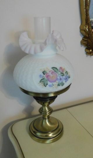 Fenton Hand Painted Milk Glass Shade Table Lamp 15"