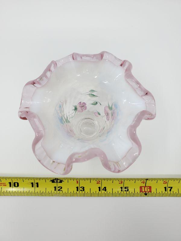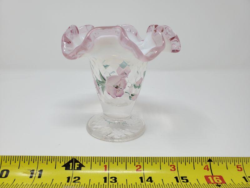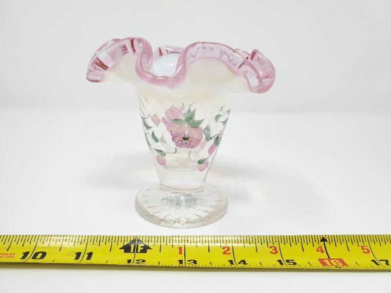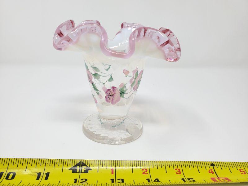 FENTON HAND PAINTED RUFFLED EDGE BUD VASE