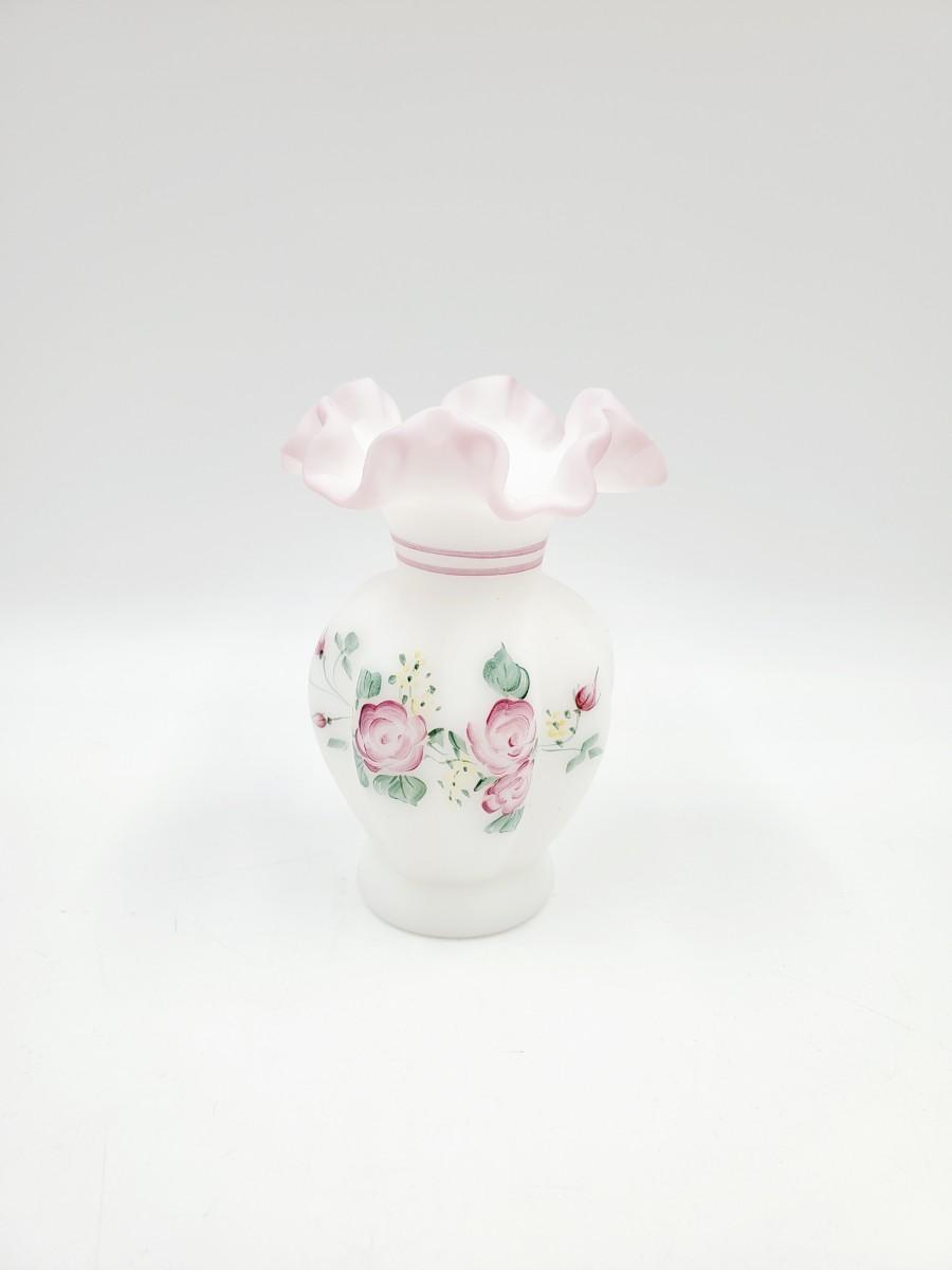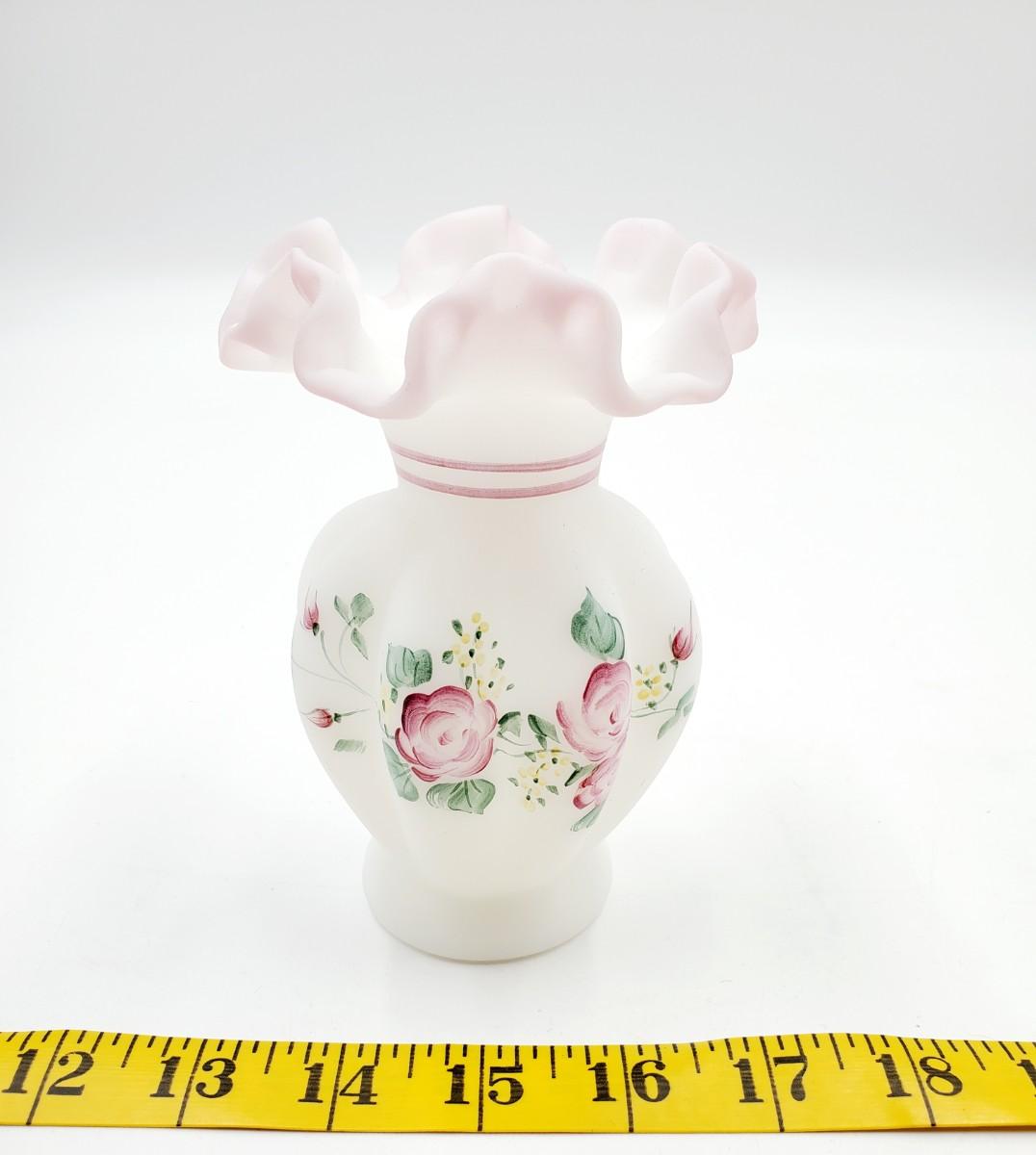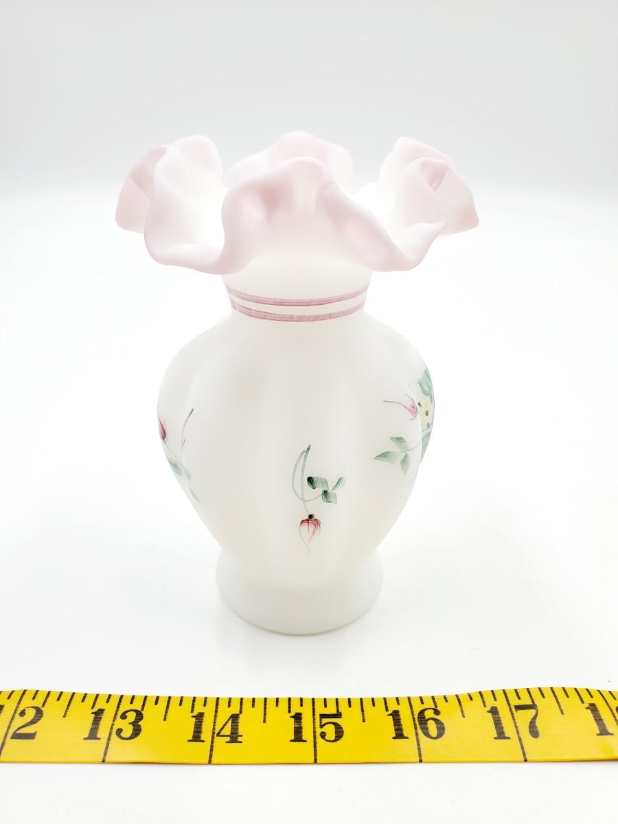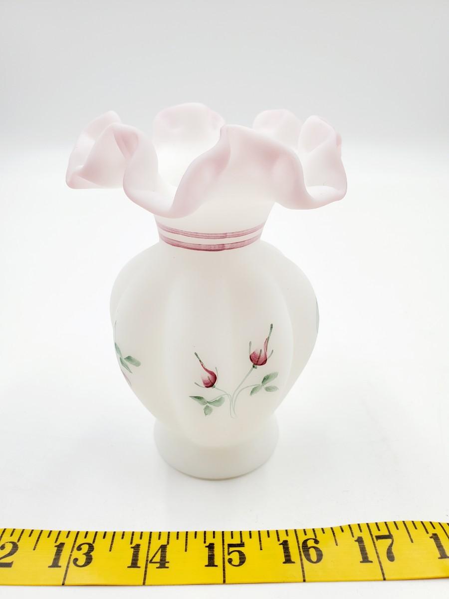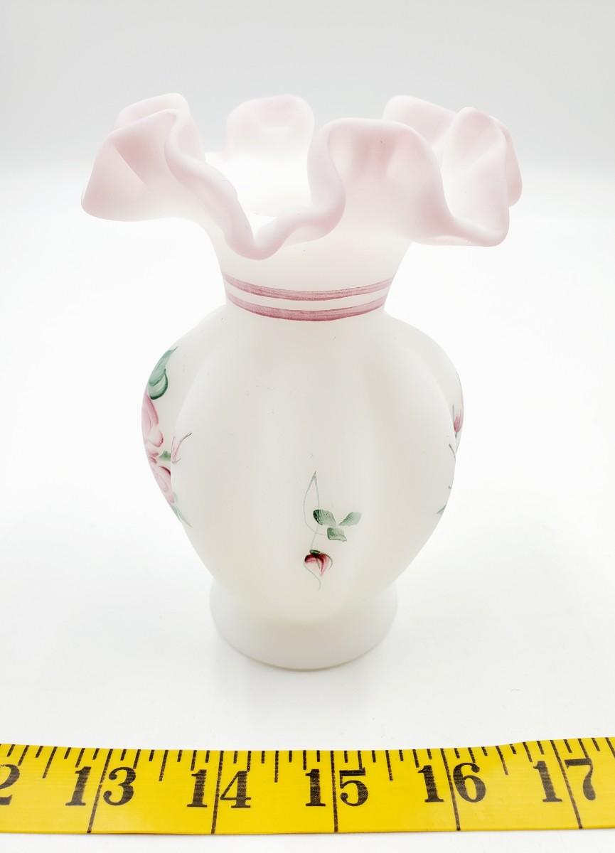 FENTON HAND PAINTED RUFFLED MELON VASE