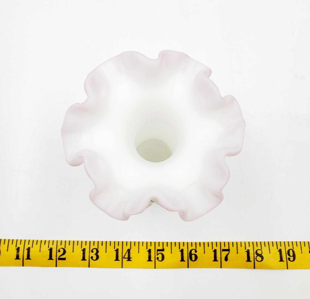 Dainty and adorable....Fenton melon ruffled vase, hand painted and signed. Very good condition