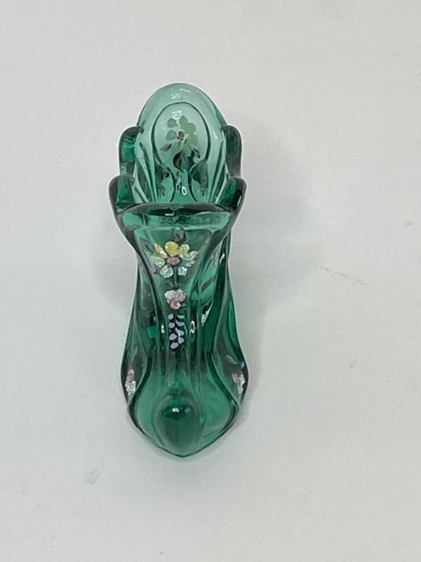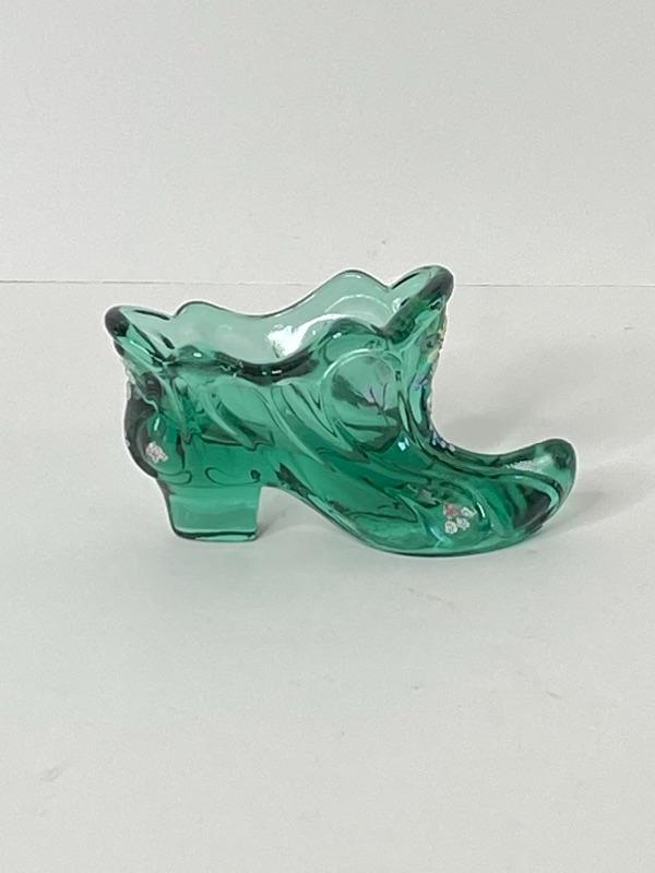 Fenton Hand Painted Green Shoe (Signed)