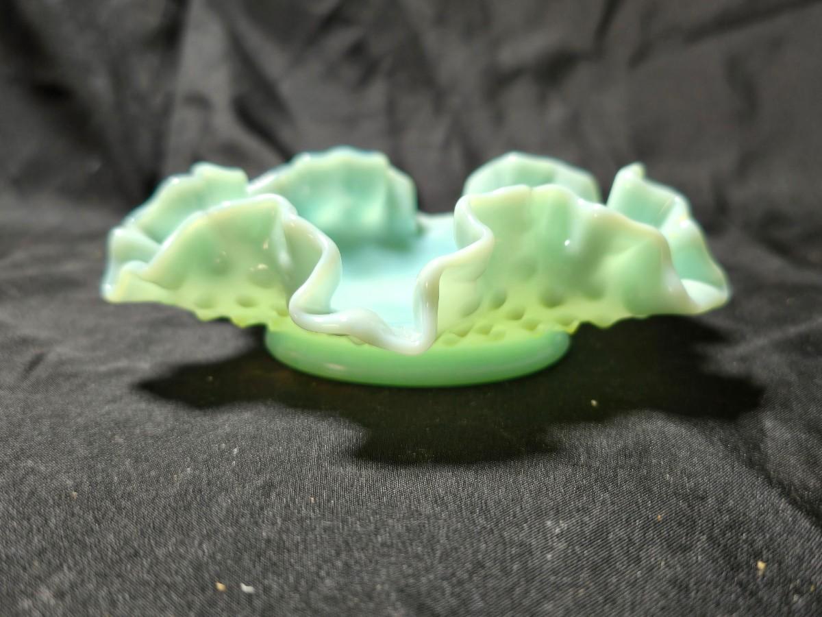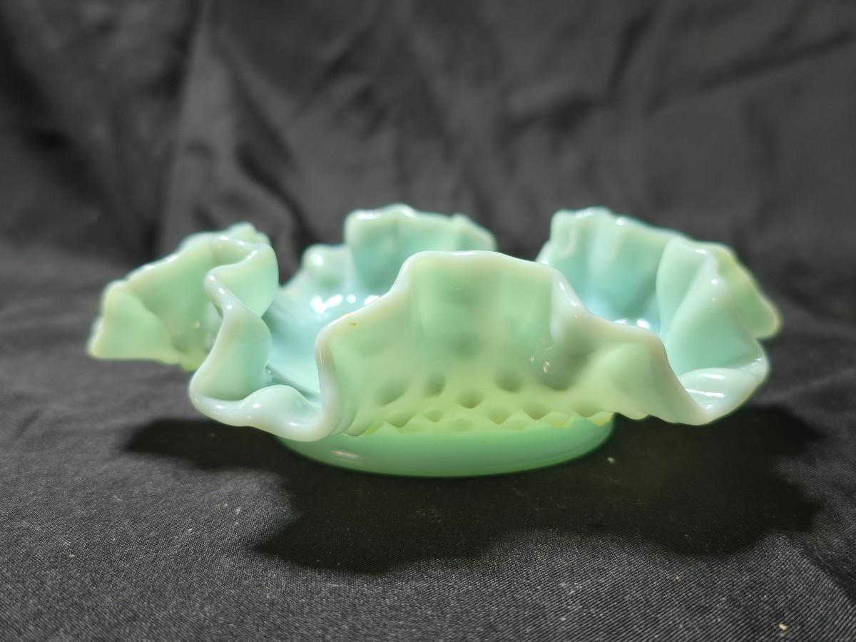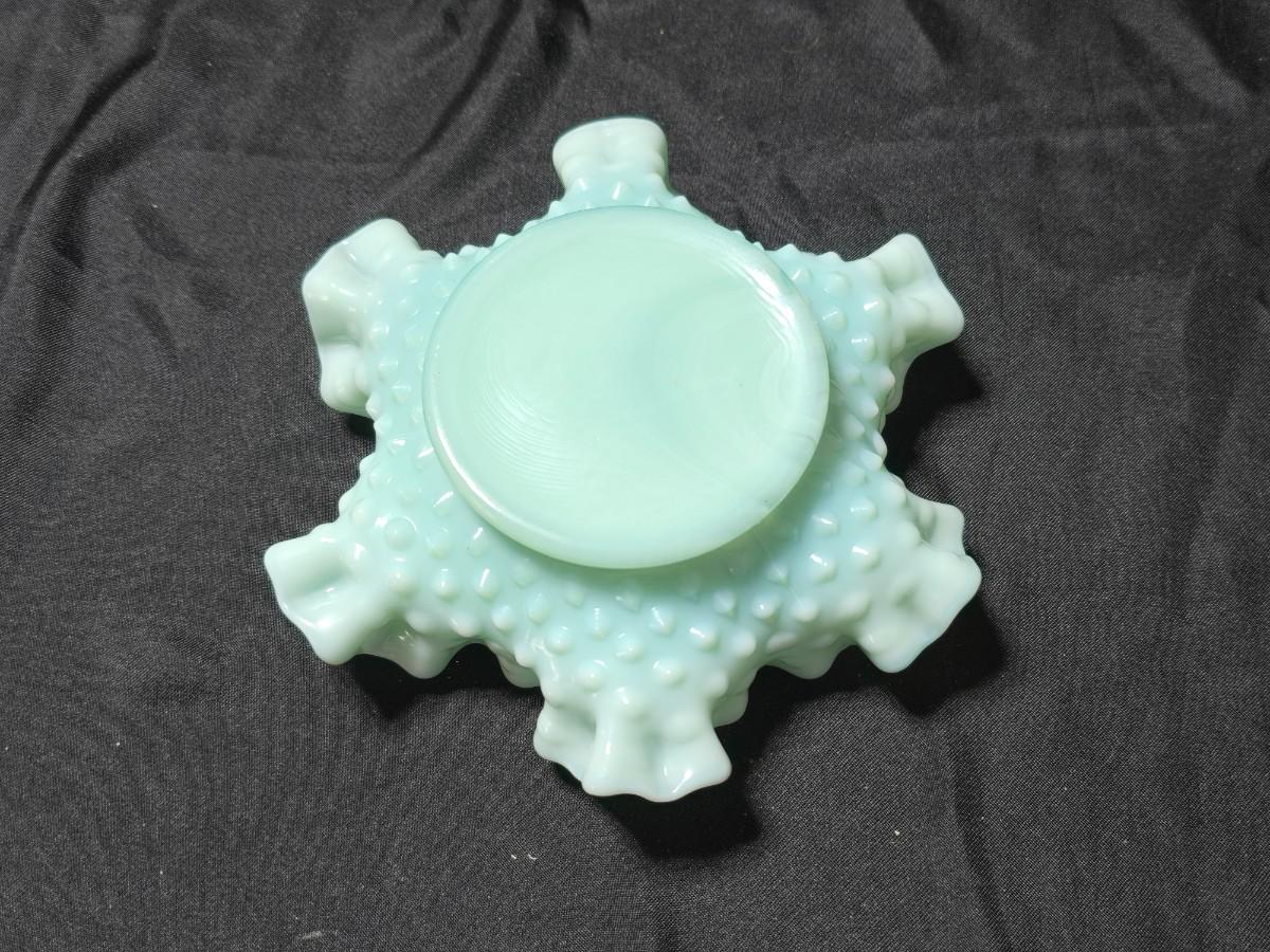 Fenton hobnail bonbon or candy dish in a turquoise, aqua, or pastel green milk glass color