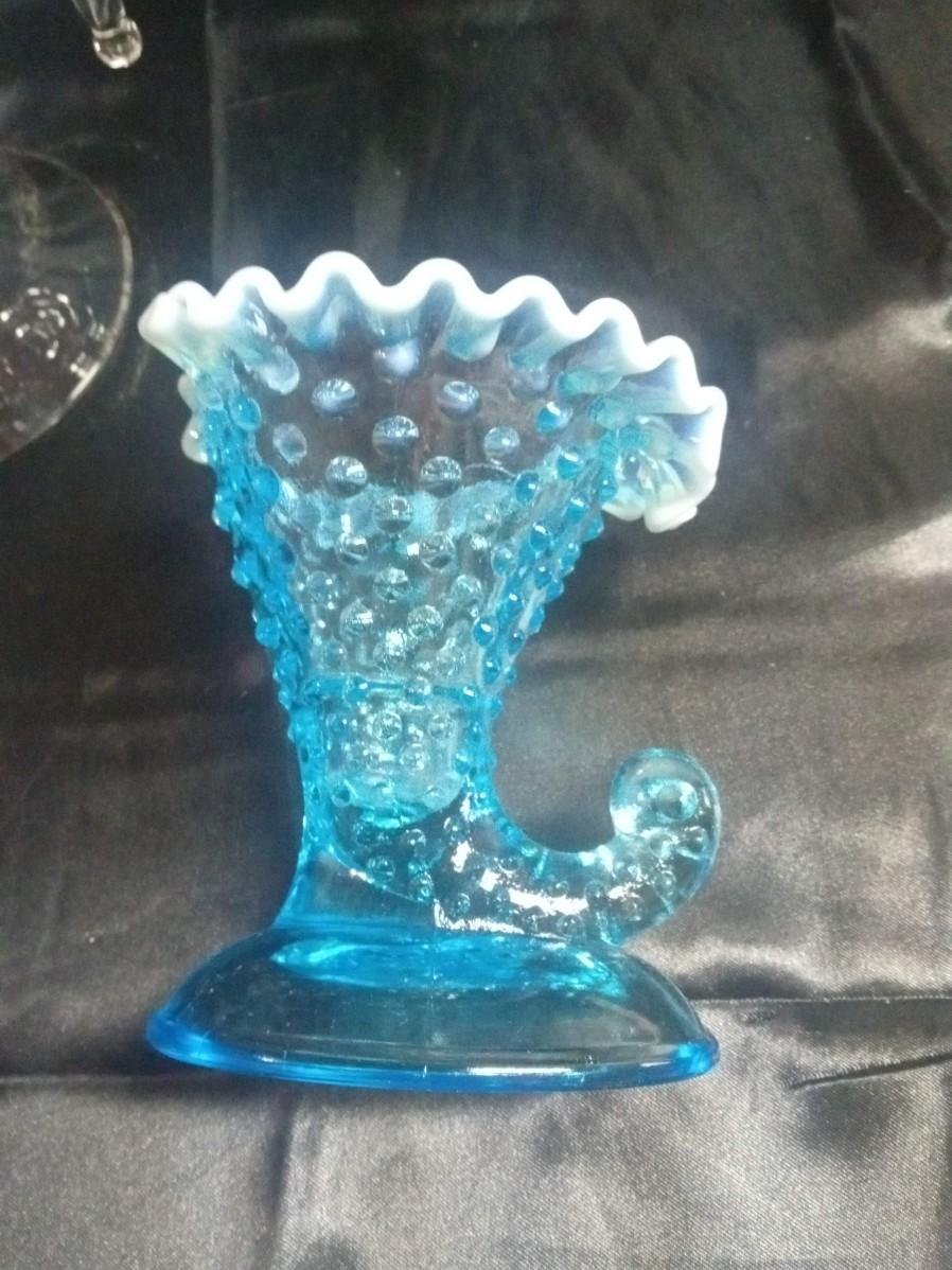 FENTON HOBNAIL CORNUCOPIAS AND A CANDLE HOLDER CENTER PIECE