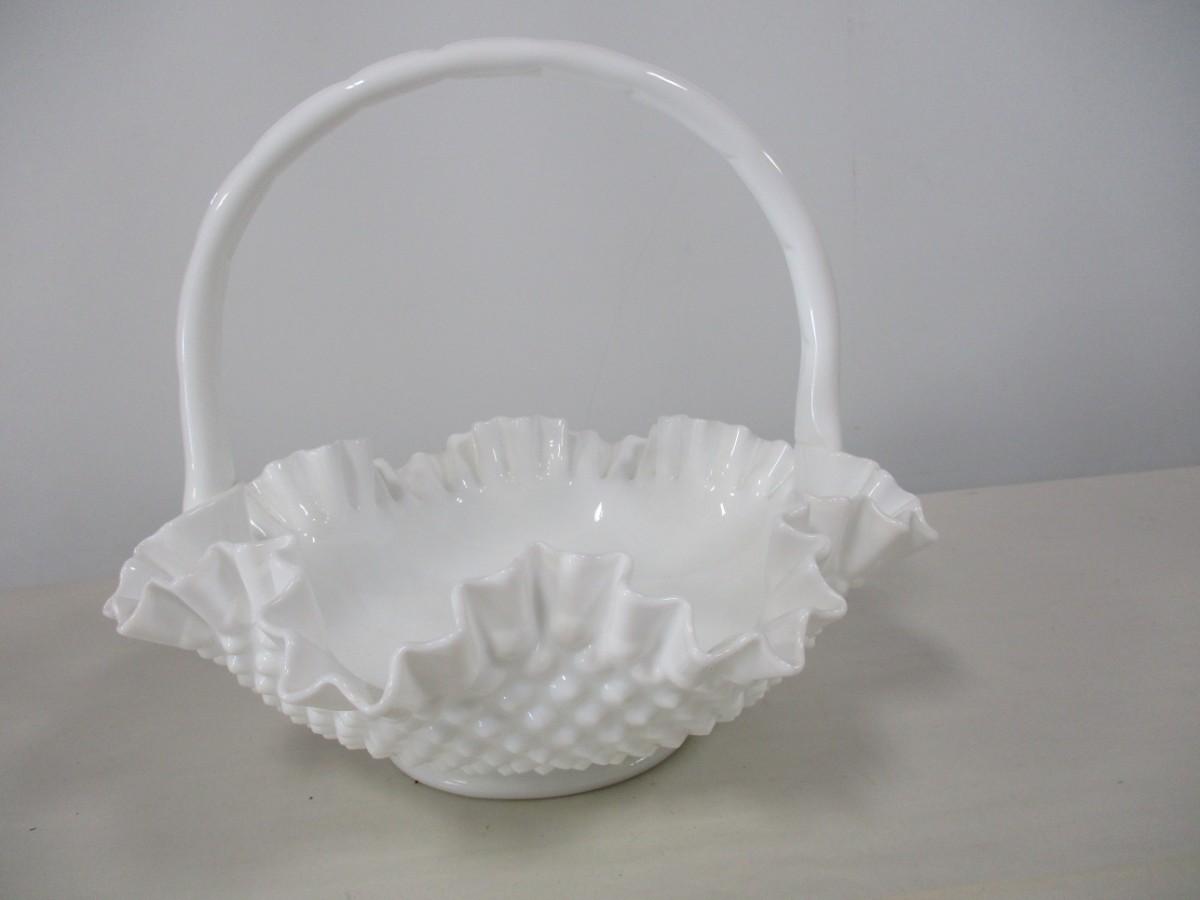 Fenton Hobnail Milk Glass Basket