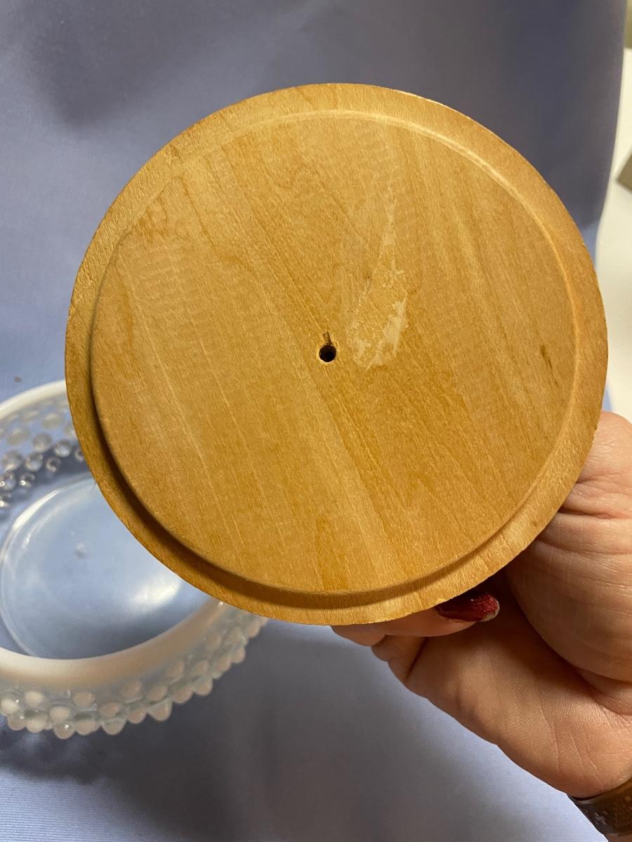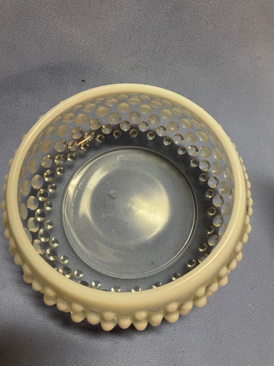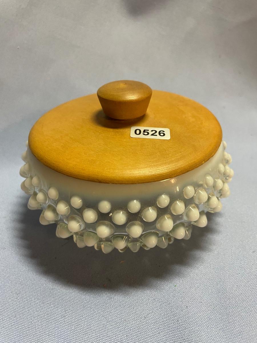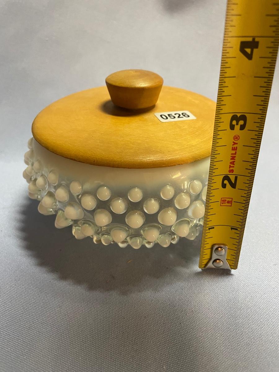 Fenton hobnail opalescent powder duster jar w/ wooden lids