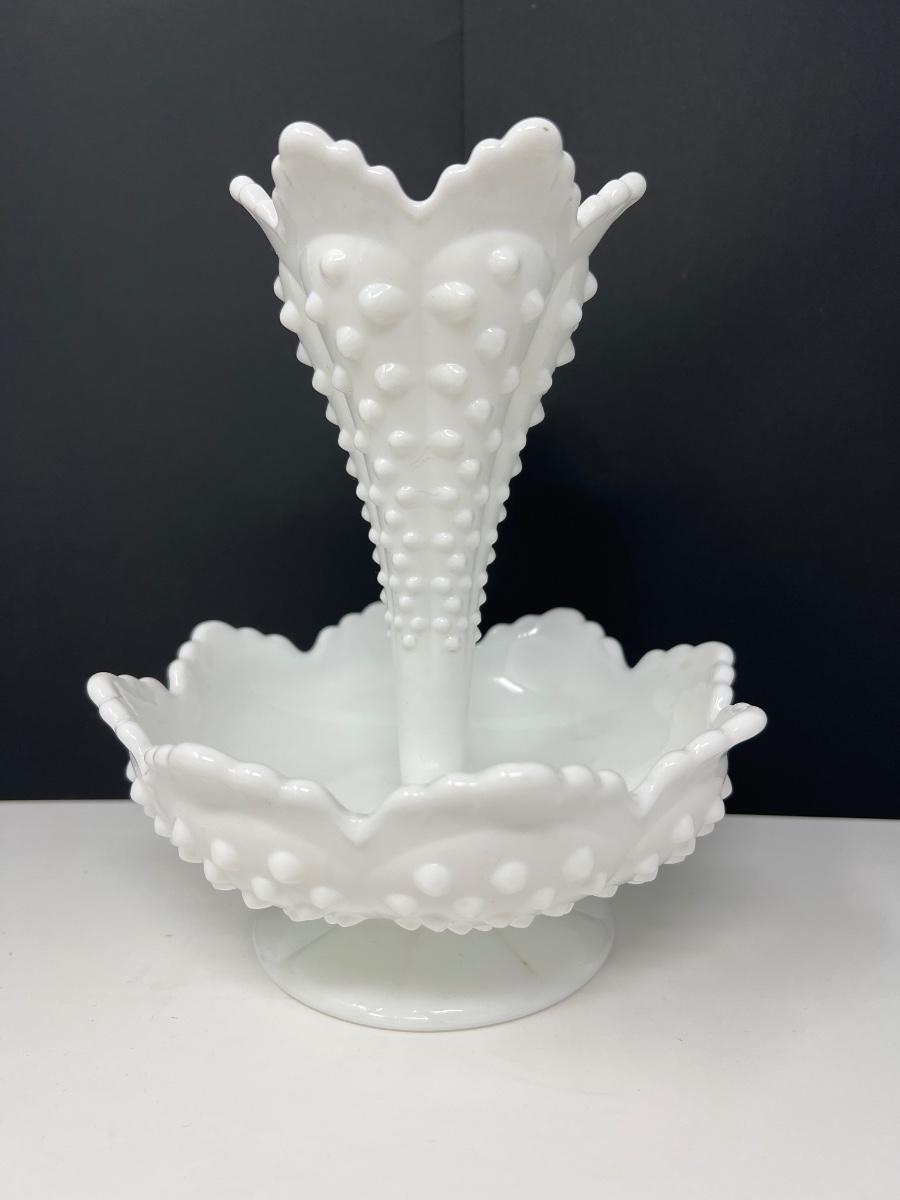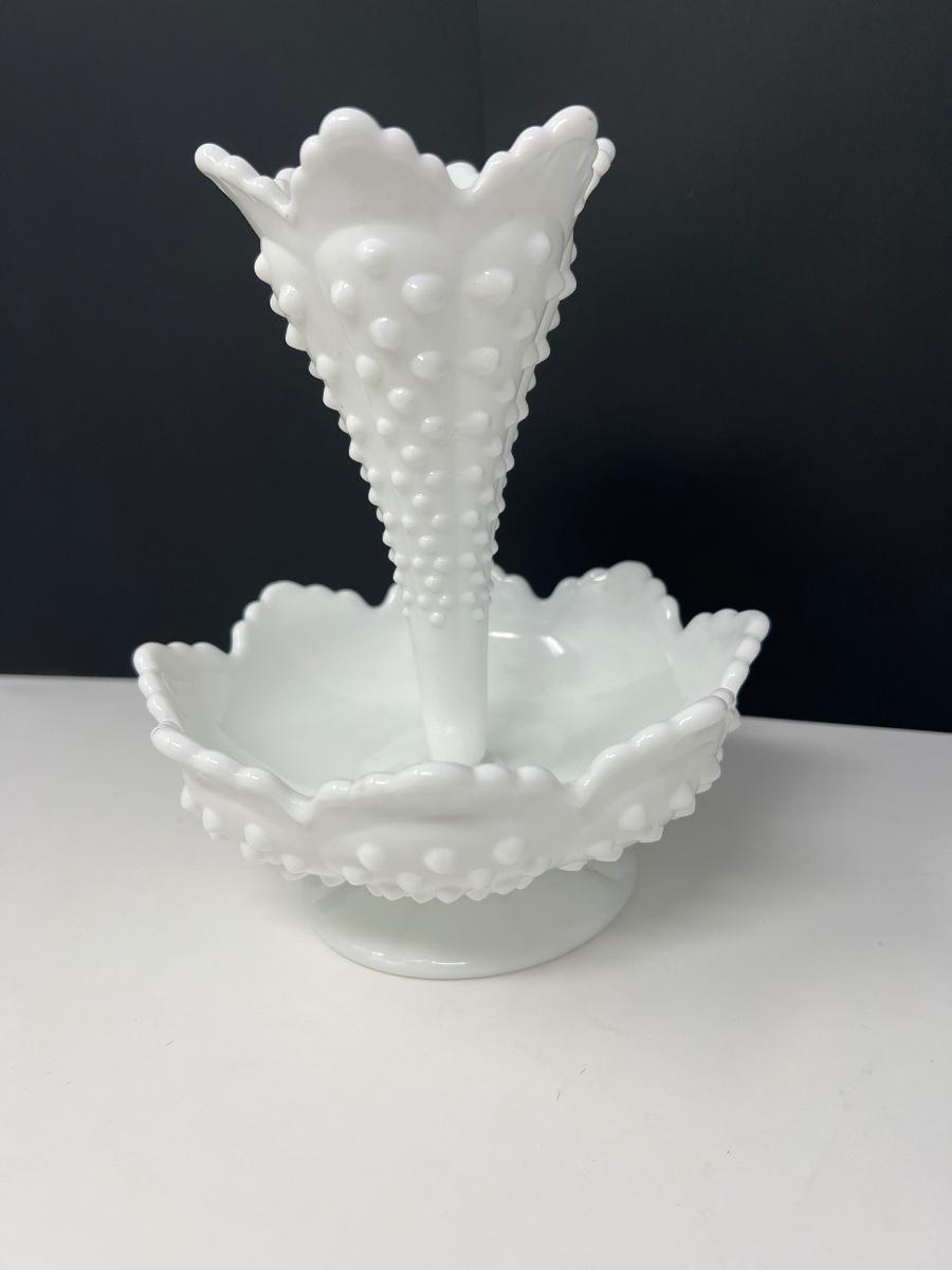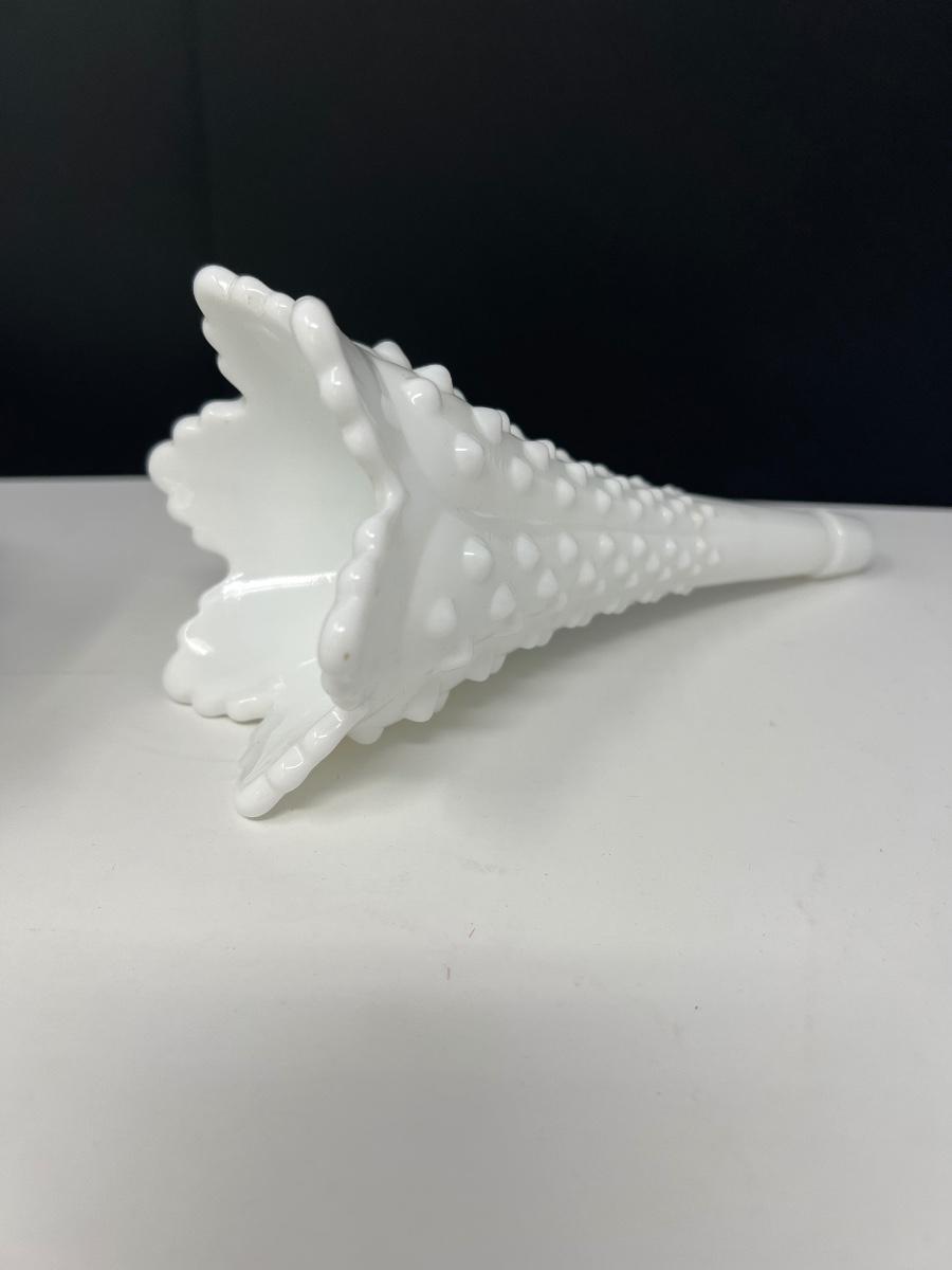 Fenton Hobnail White Milk Glass Single Horn Epergne