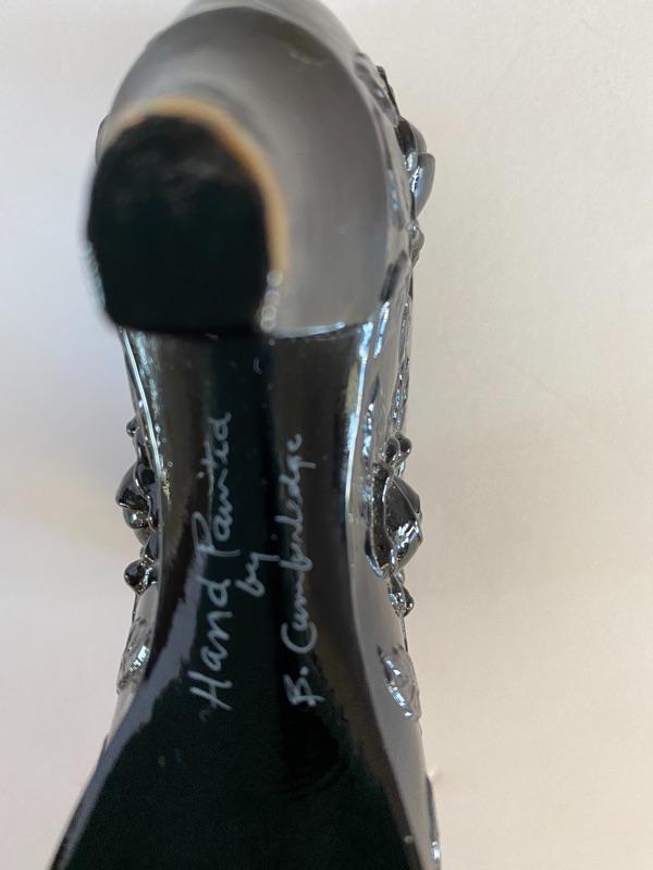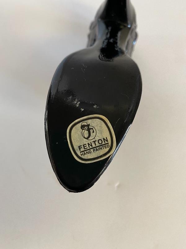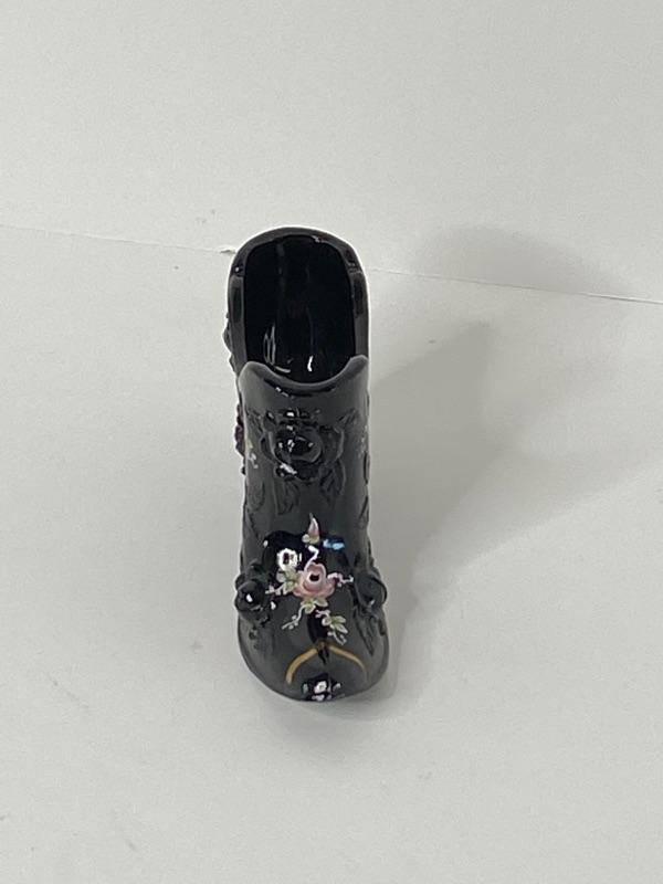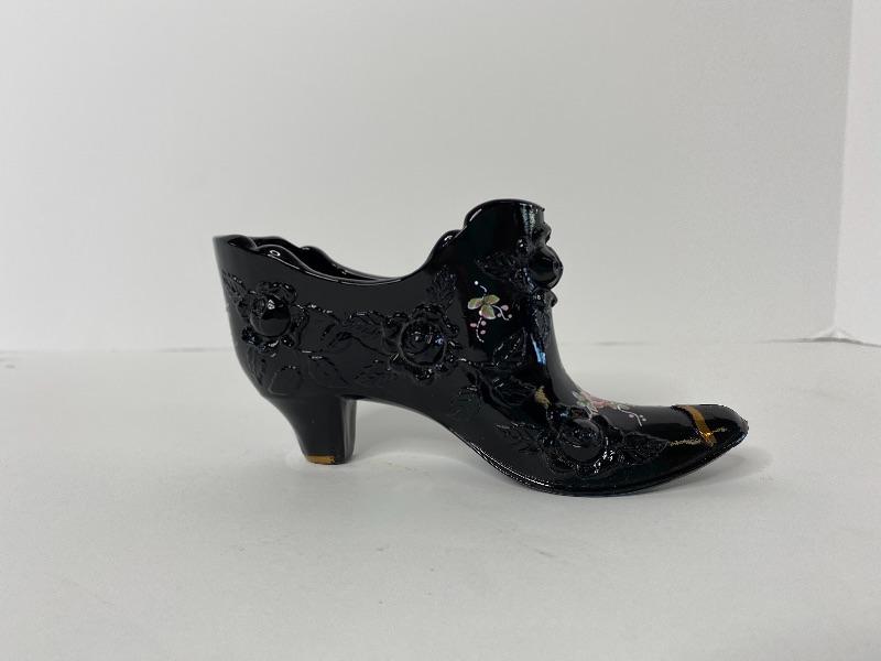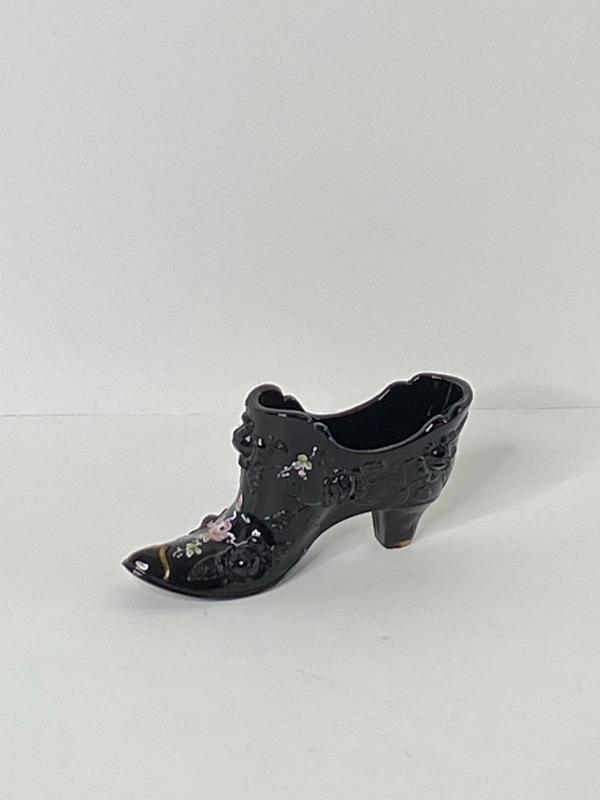 Fenton H/P Black Victorian Rose Slipper (Signed)