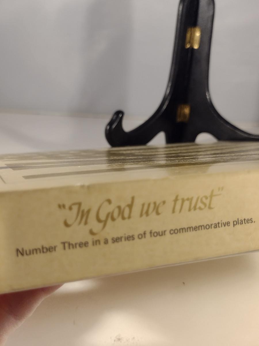 Fenton 'In God We Trust' Commemorative Plate in Antique Powder Blue- Approx 8" in Diameter. Item with box.