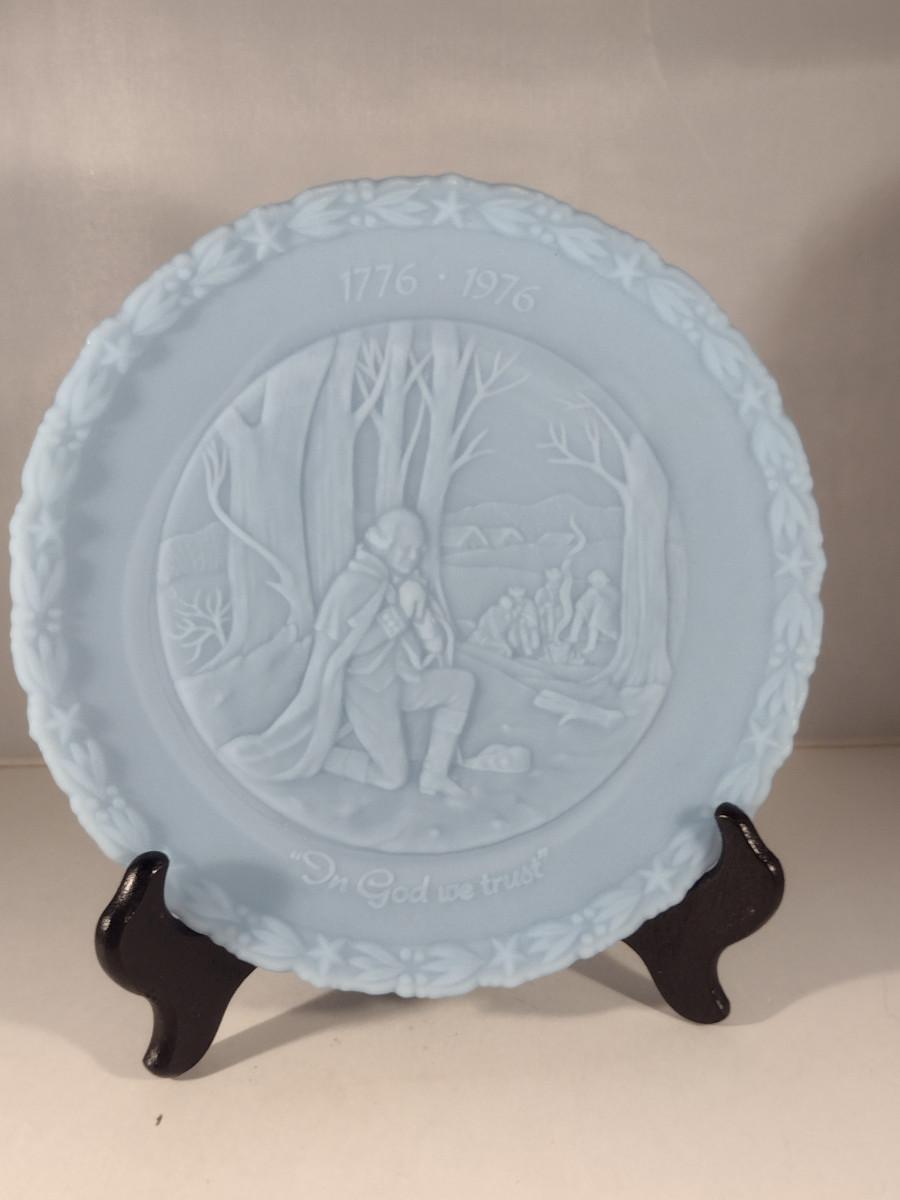 Fenton 'In God We Trust' Commemorative Plate in Antique Powder Blue- Approx 8" in Diameter