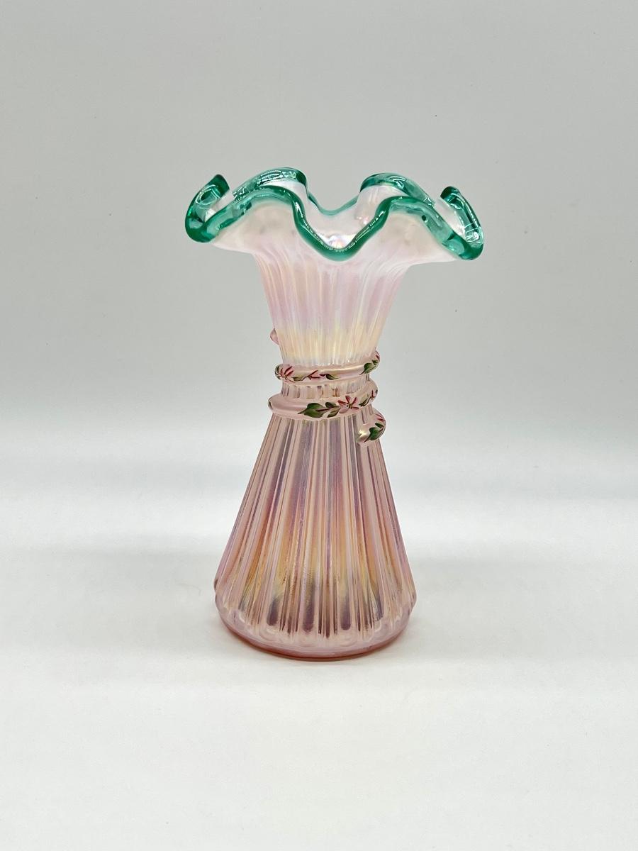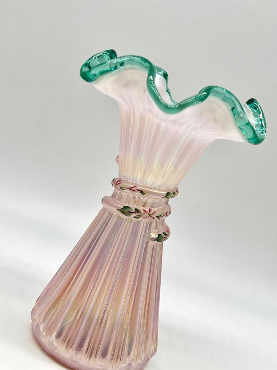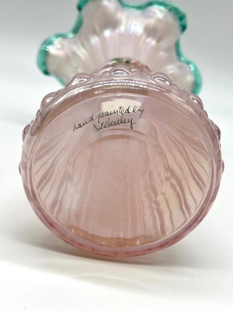 FENTON ~ Iridescent Floral Vase ~ Hand Painted & Signed
