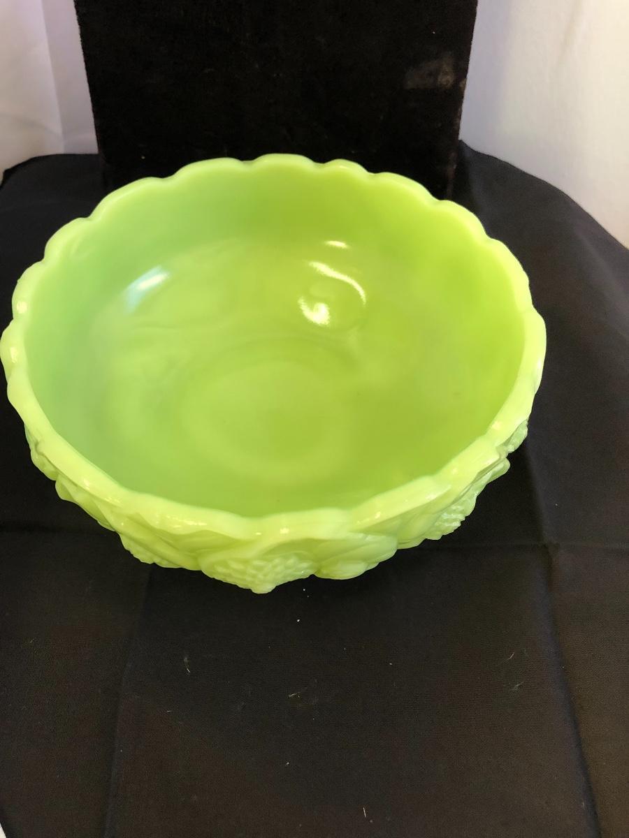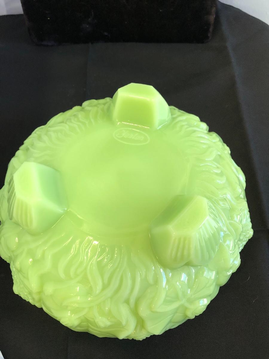 This piece has 3 feet on bottom and is in the floral pattern. Measures 7” across